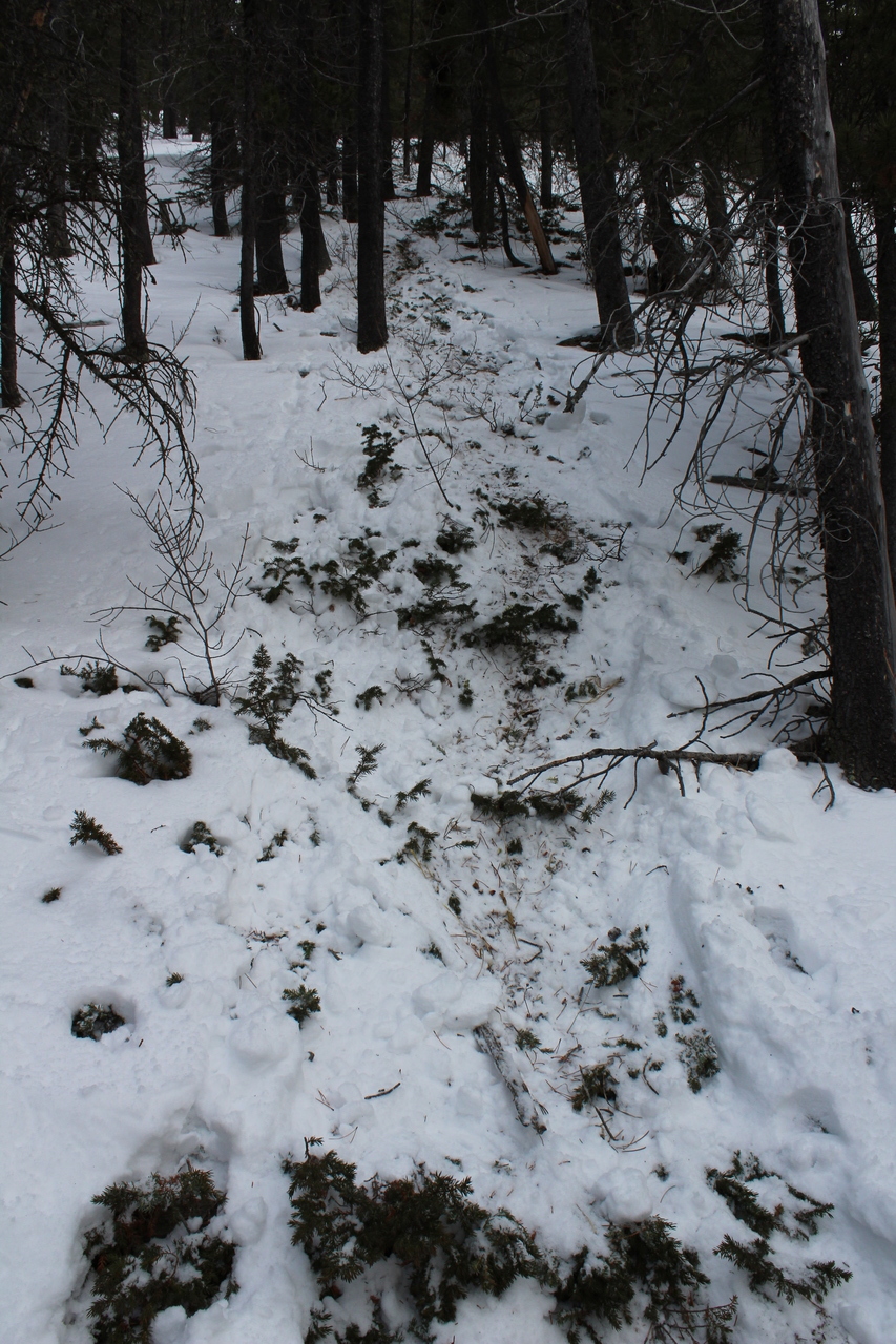 The final bit of scree, before plunging back into the deep snow of the sheltered forest! At least there's a trail now! ;)