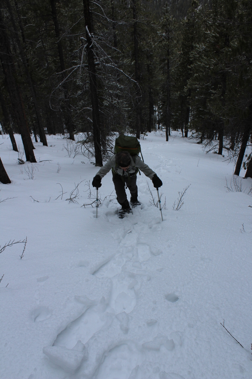 I looked back at the hard-packed Baldy Pass trail longingly, as after just a few steps up the drainage it immediately became apparent that we had a long, brutal trail-break ahead of us!