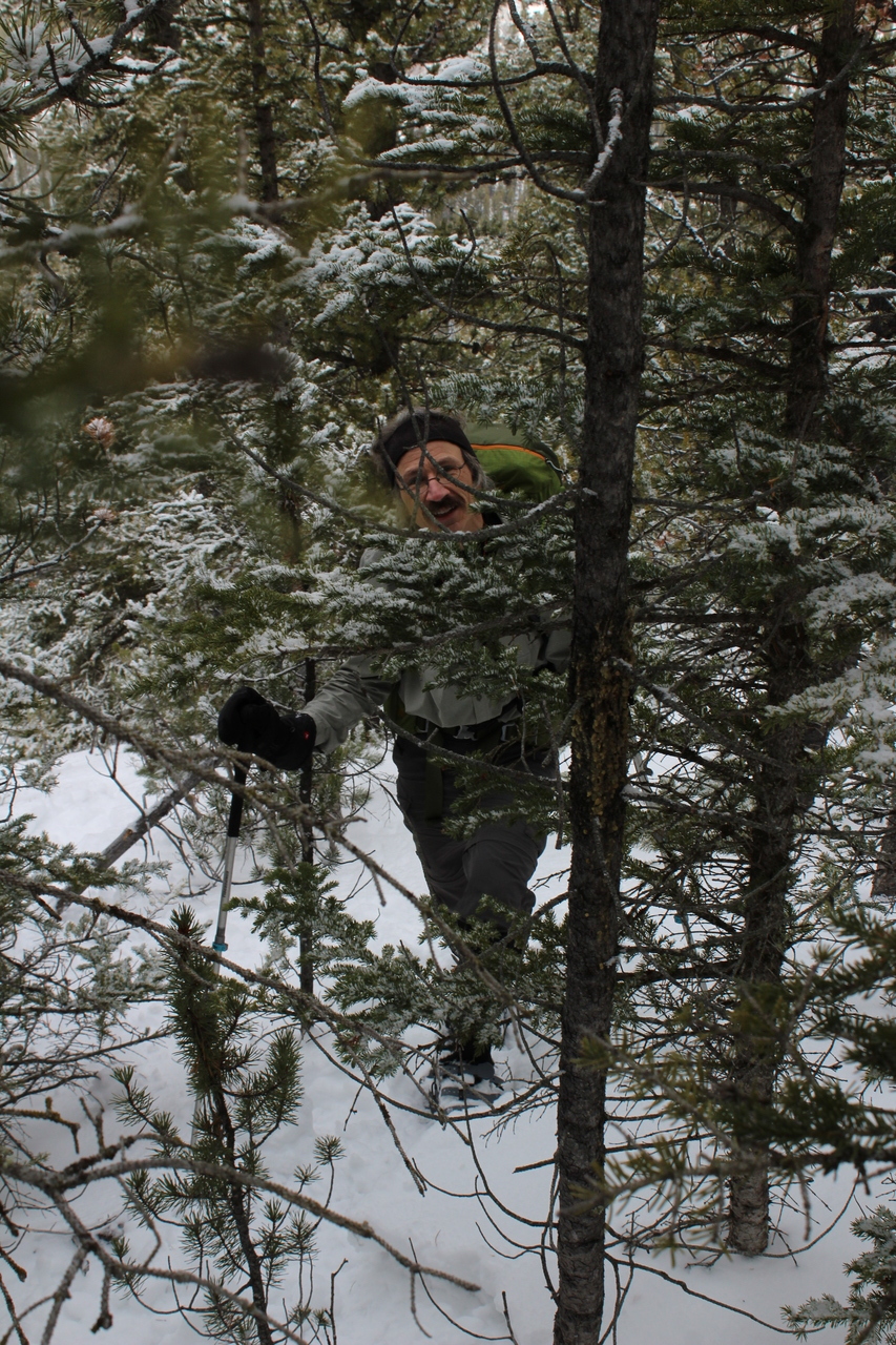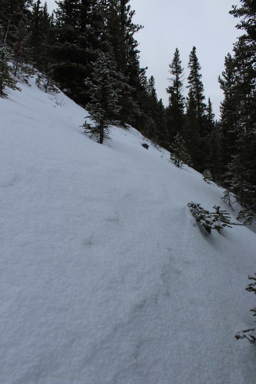 Well...it was fun while it lasted! As we got closer to gaining the treed, north ridge, our progress was slowed significantly by this deep snow. Unfortunately there was no escaping it this time :(.