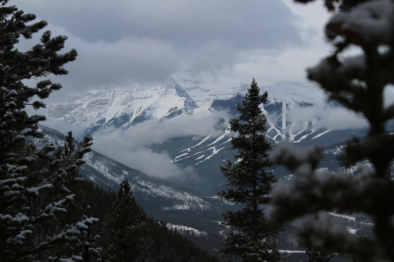Boundary Peak (no, not the Boundary Peak of the Icefields) rises distant-center, amidst low cloud.