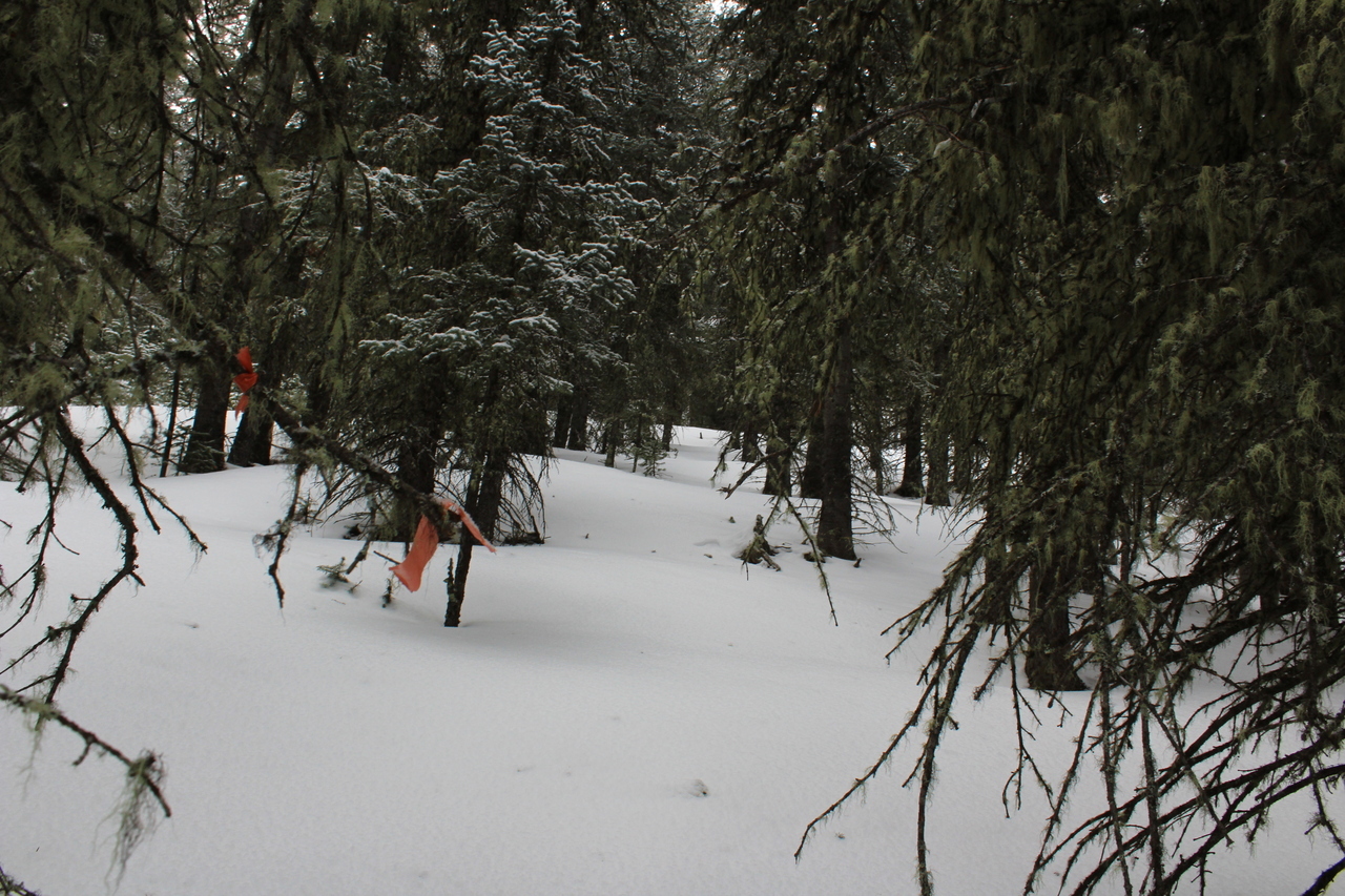 Finally on the broad gentle ridge, heading south. Ah yes, a random ribbon...I guess we're on track! LOL.