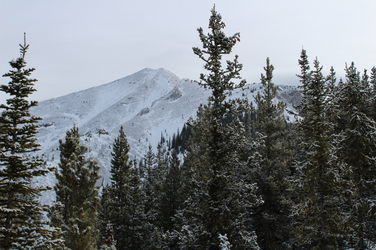 Old Baldy rises sharply center, with Mount McDougall to the left, and The Wedge (distant) peeking out to the right!