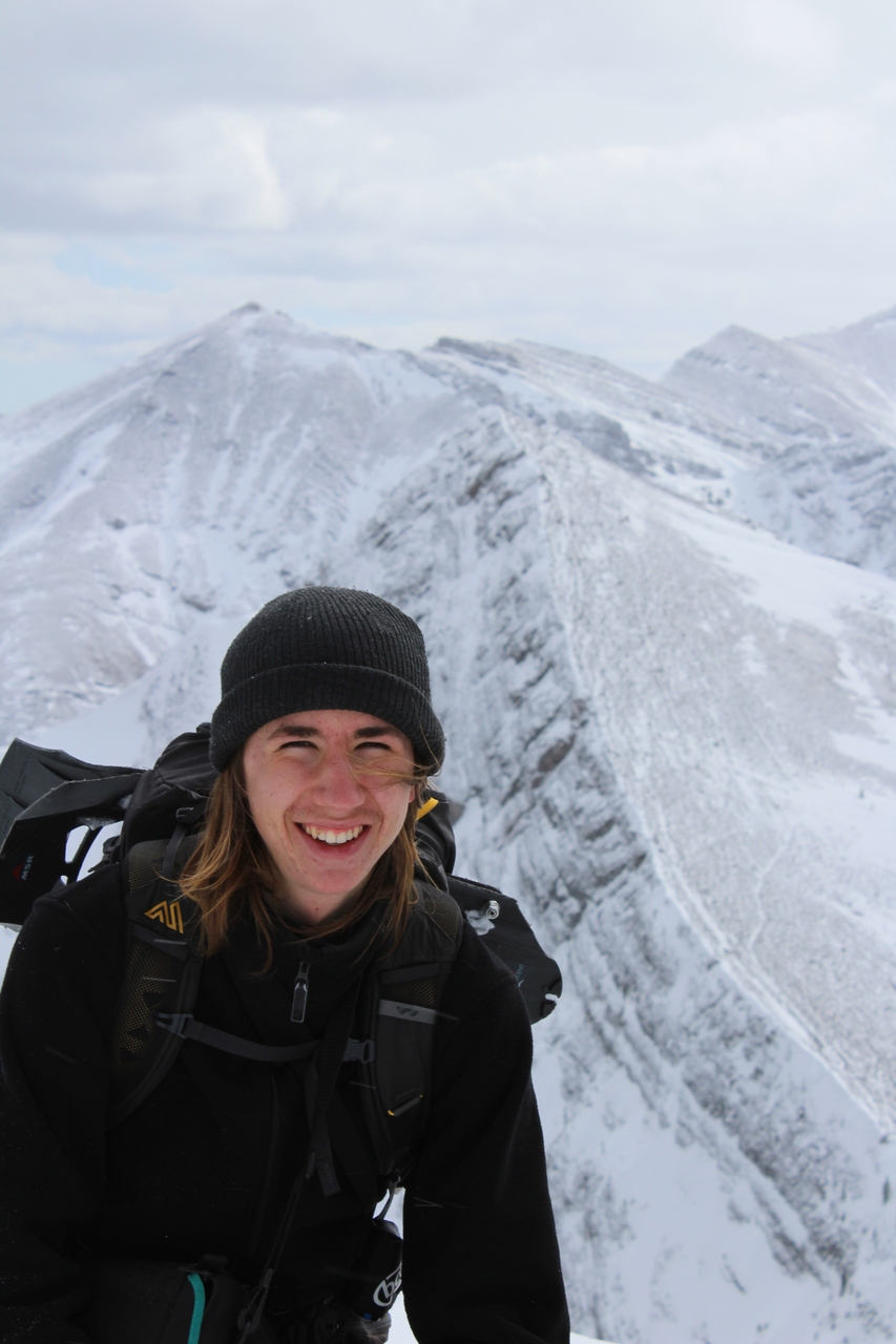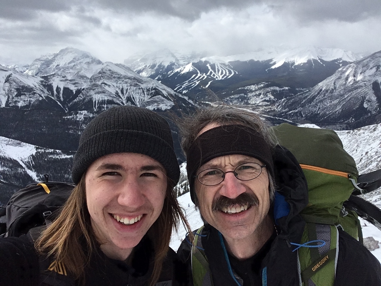 Me, on the summit of Midnight, with our next objective, Midday, in the background. Photo credit: Dad