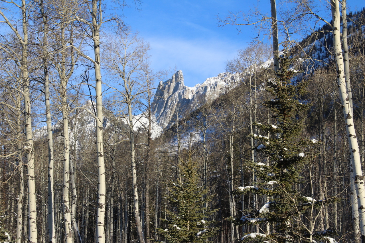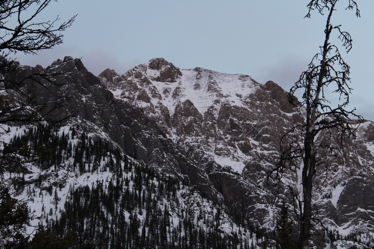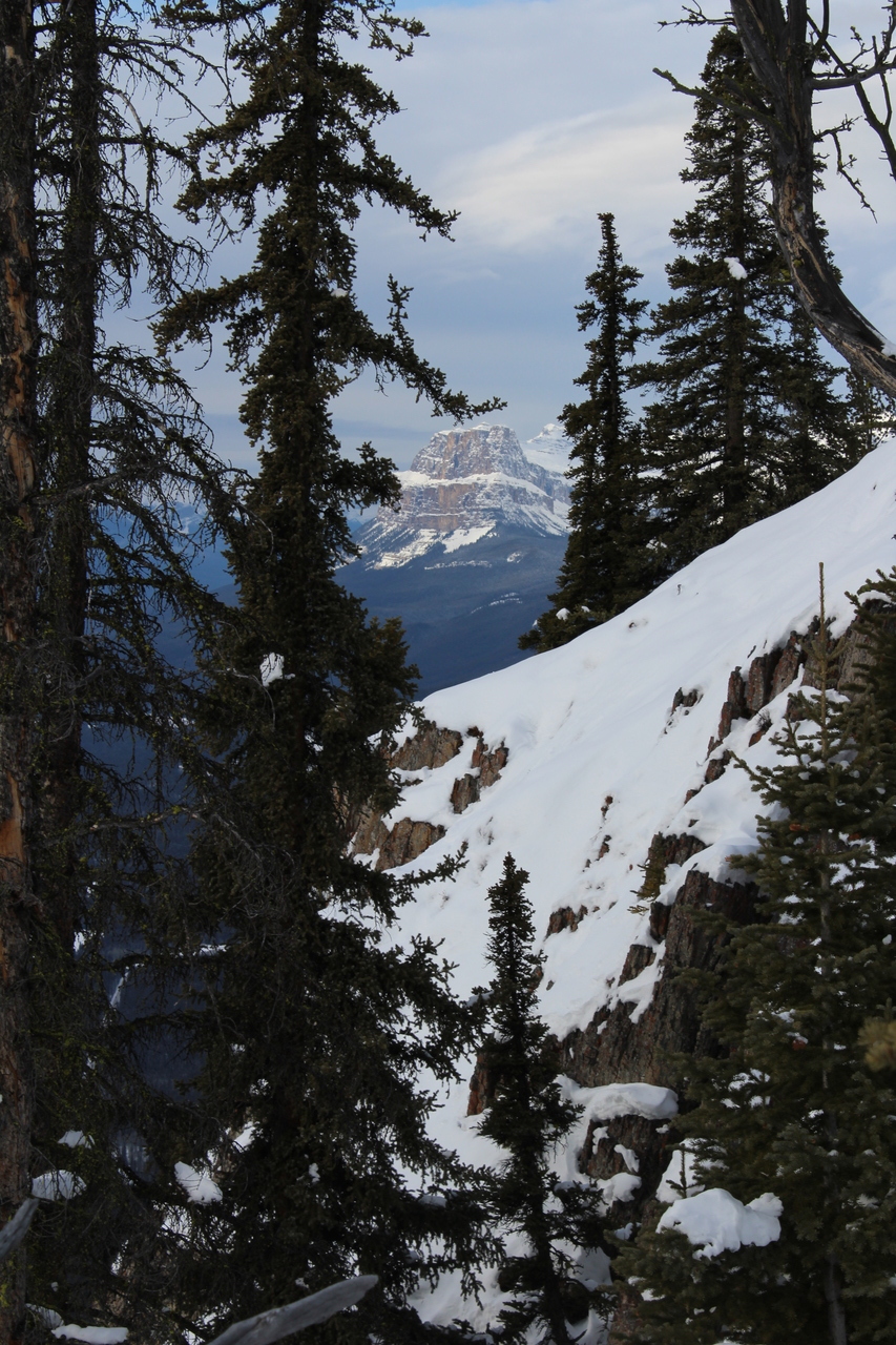 Yay! A new view to offer some motivation! Castle Mountain stands tall through a gap in the trees!