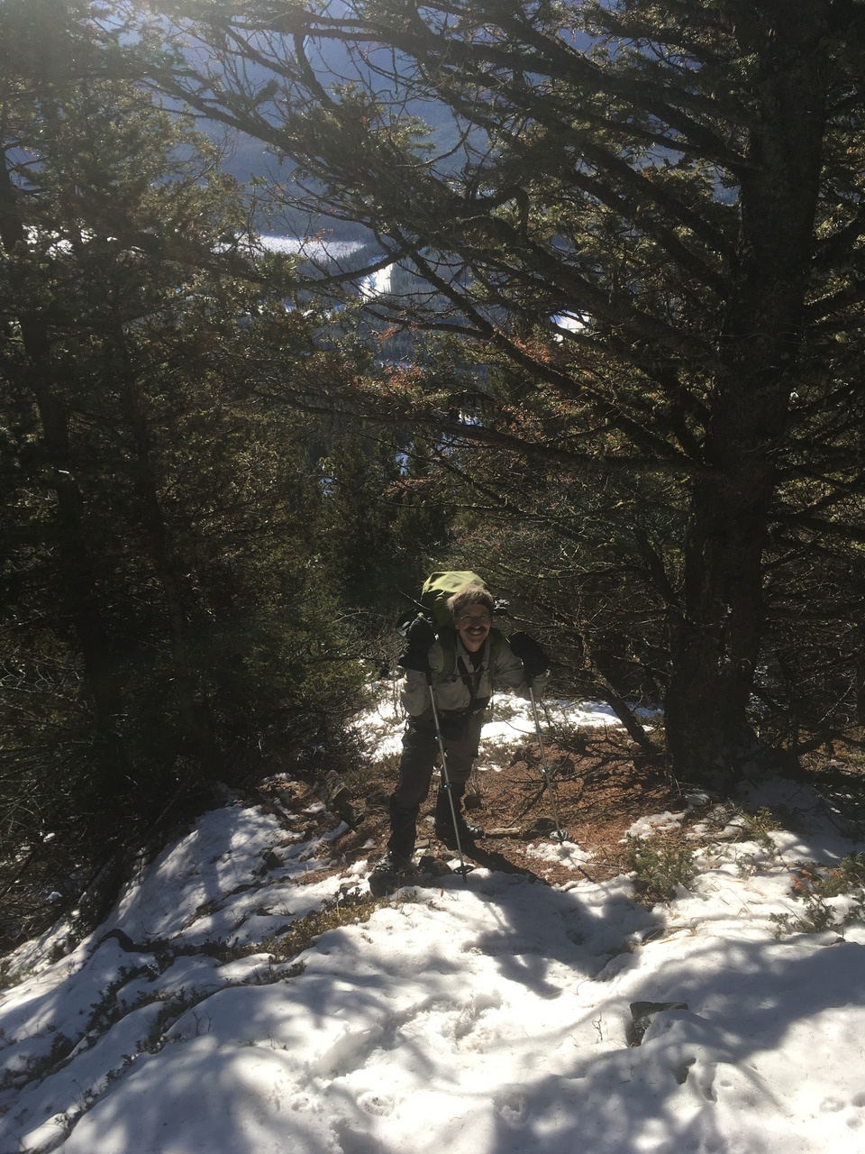 Summit Selfie on top of Muleshoe Ridge! The summit was fairly densely treed, so we continued down the ridge slightly to the north, to try and find an opening.