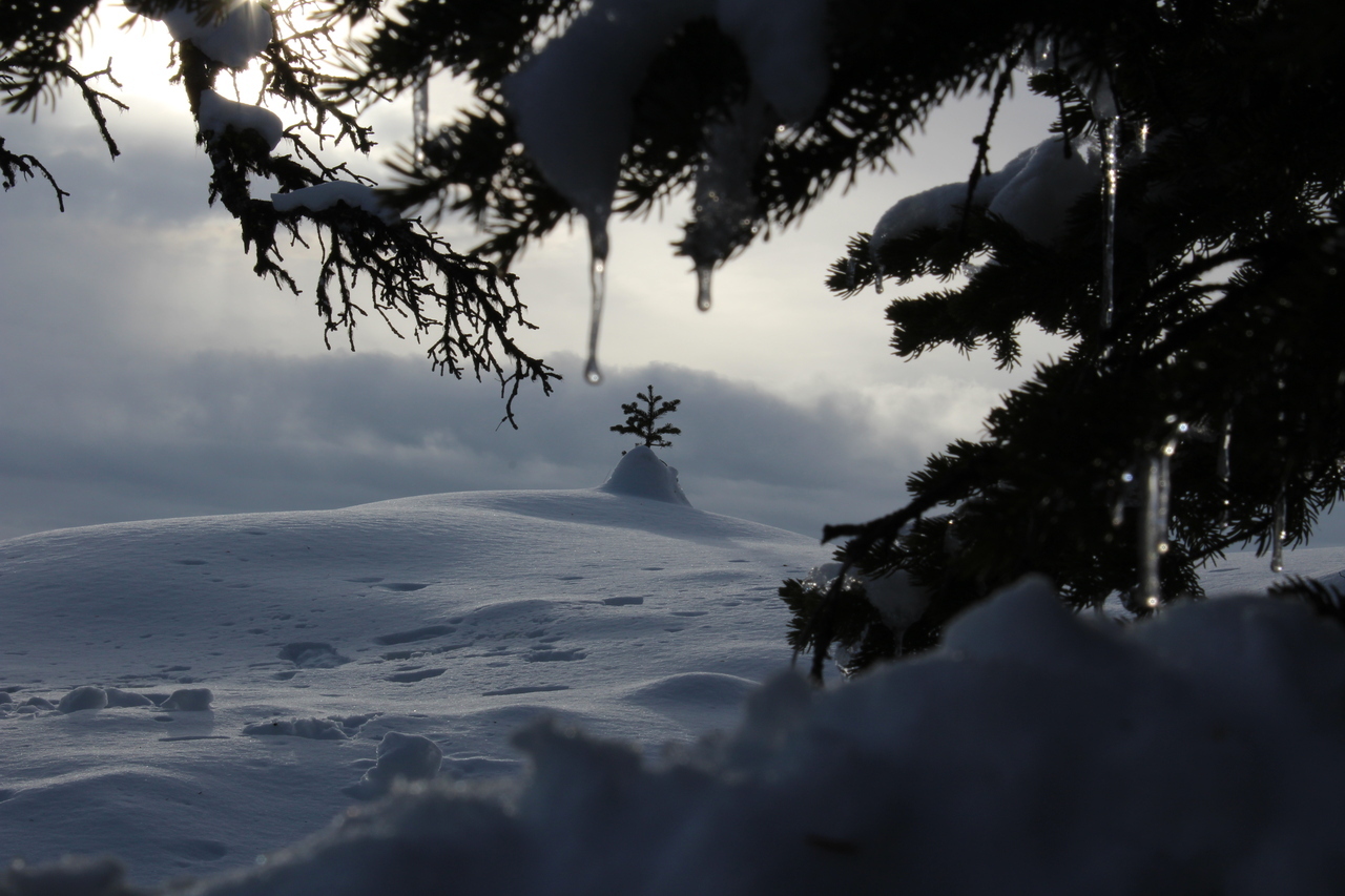 Higher up, the amount of snow increased significantly! My dad opted to switch back to snowshoes, while I was a dummy, and thought I could manage with microspikes...