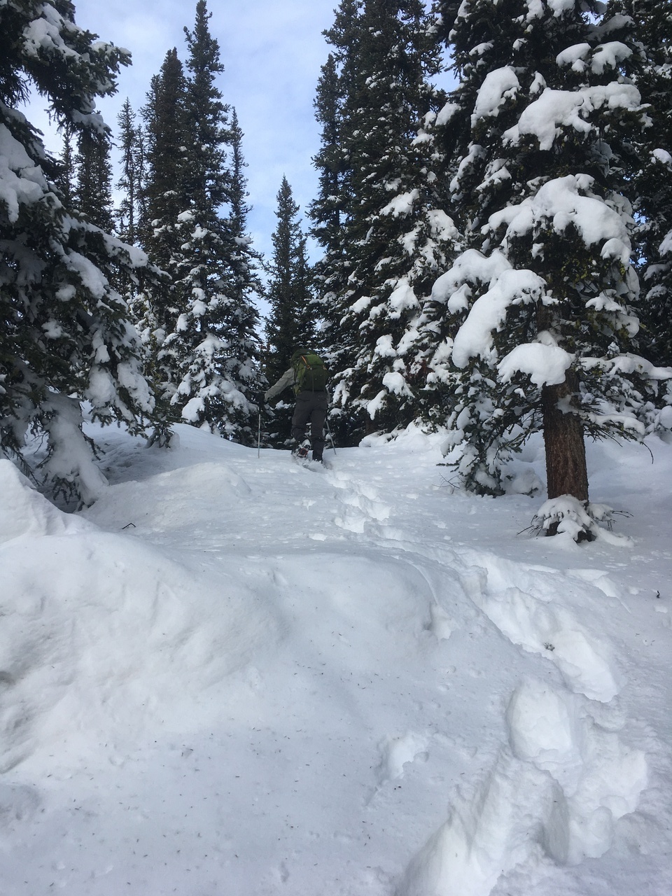 The slope steepens as we work our way up to the ridge! Good thing we got snowshoes with televators! Photo credit: Dad