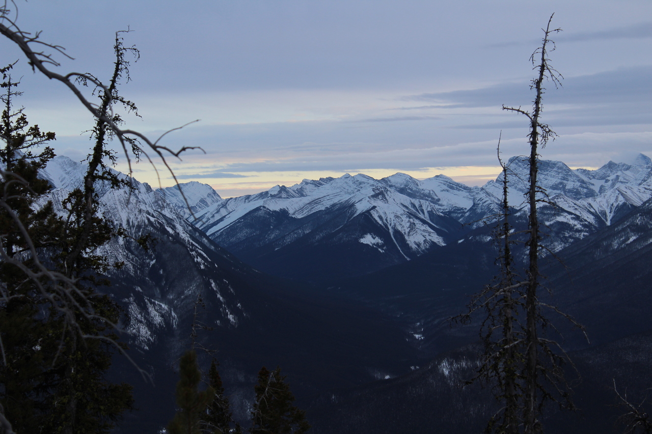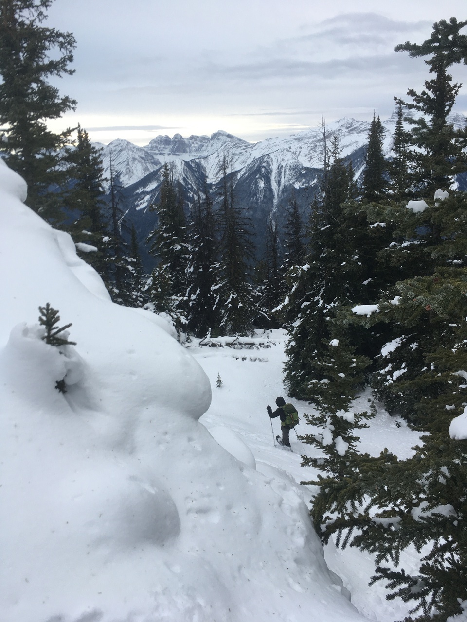After throwing a ton of money at getting set up for ski touring, we wanted to get back to the mountains, but didn't want to wreck our skis in marginal conditions! We thought about how we could keep hiking in the shoulder season, and snowshoes were quickly added to our long list of gear we wanted to obtain! After too much time researching, trying to figure out what snowshoes would be ideal for our intentions (so many options with traction, bindings, material, heal raisers, weight, size...the list goes on and on, and the better features you want, the more they cost!), we finally picked some up at MEC, and not a moment too soon! The next week they were completely sold out of snowshoes in store! (Thanks for pushing for us to get them ASAP dad!) Eager to try out our new toys, we were off to Banff to tackle Muleshoe Ridge, and find out what these snowshoe things can do!