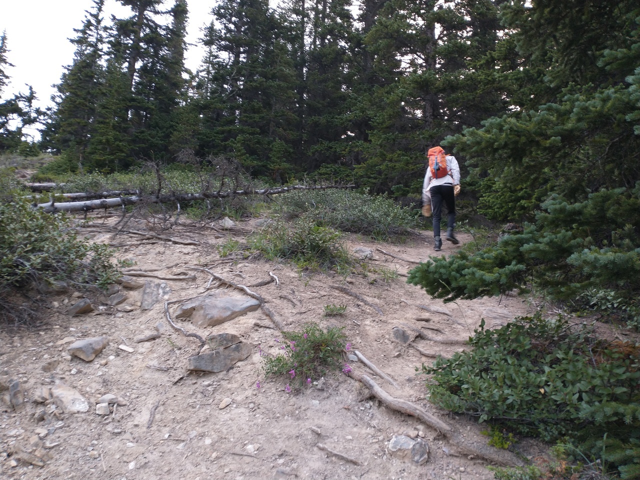 Starting up the steep trail up towards Wilcox Pass, from the Columbia Icefield Campground. Photo credit: Dad