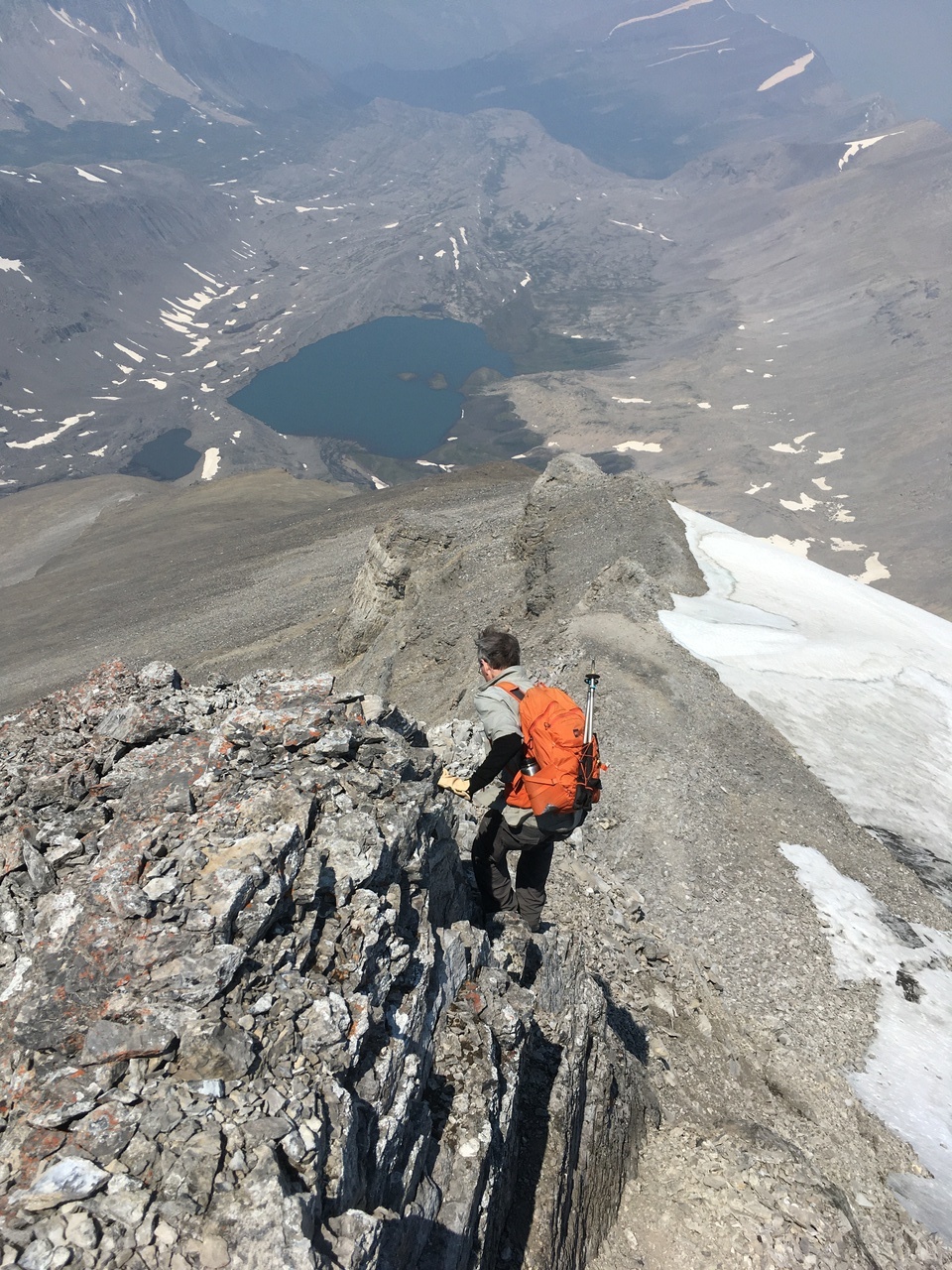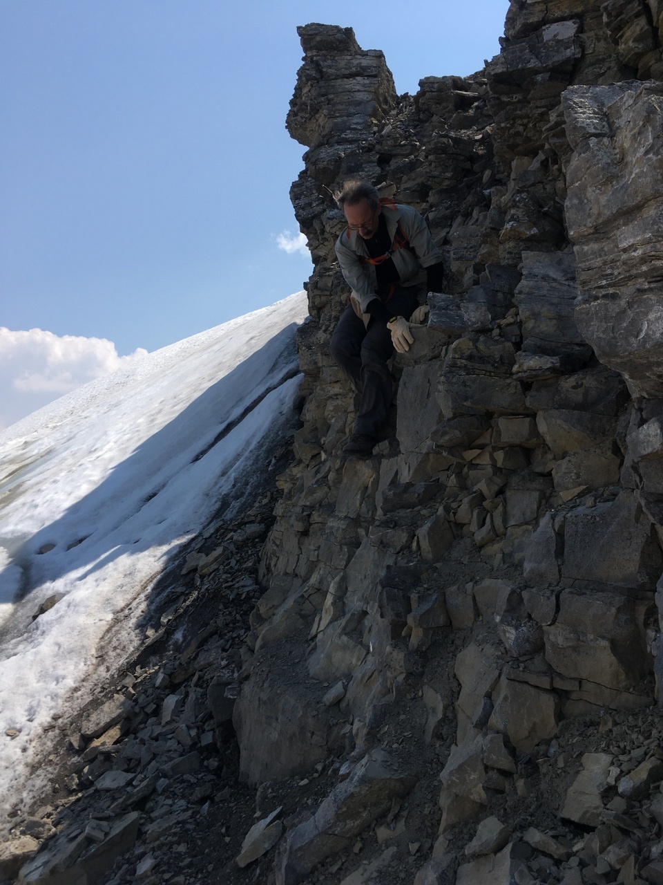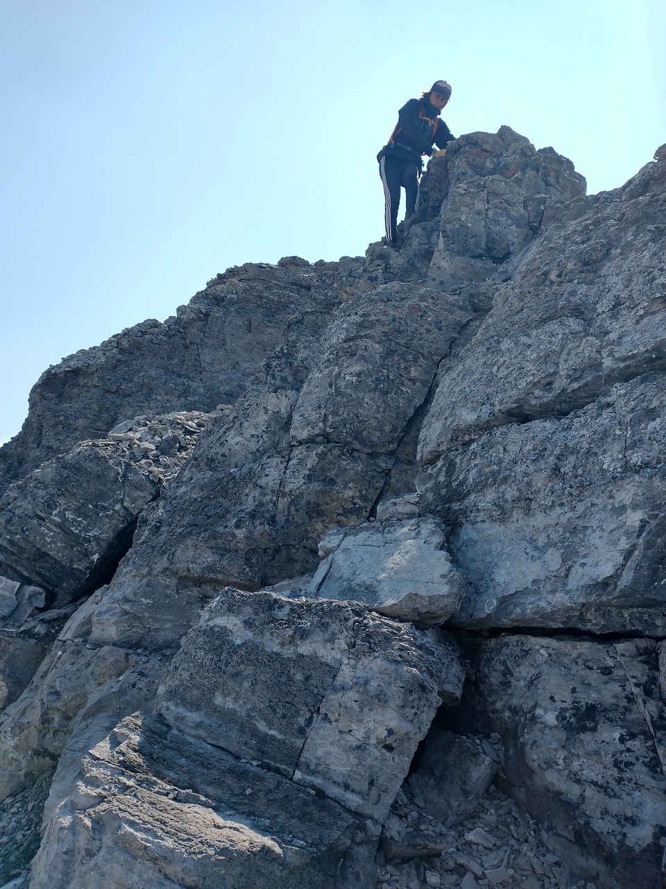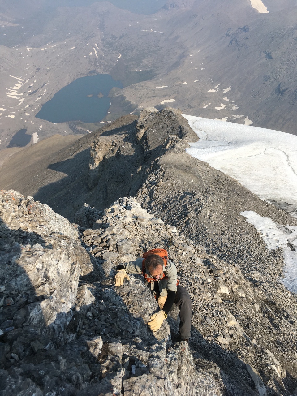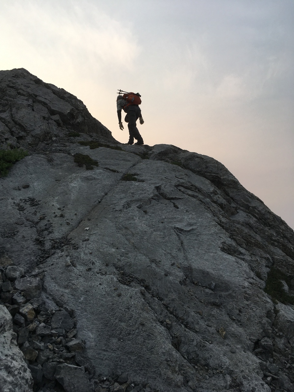 My dad scrambles up some of the more moderate terrain along the ridge!