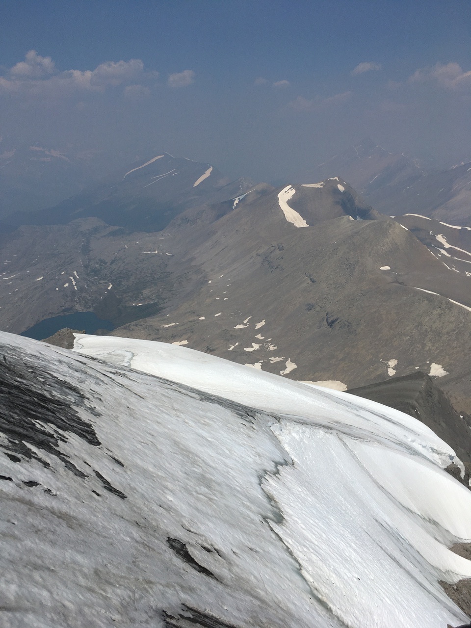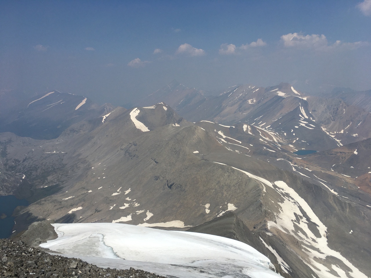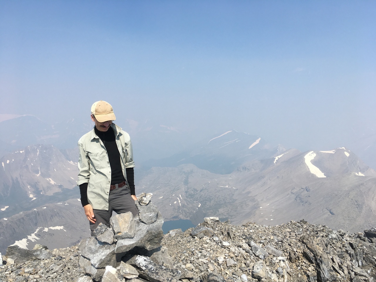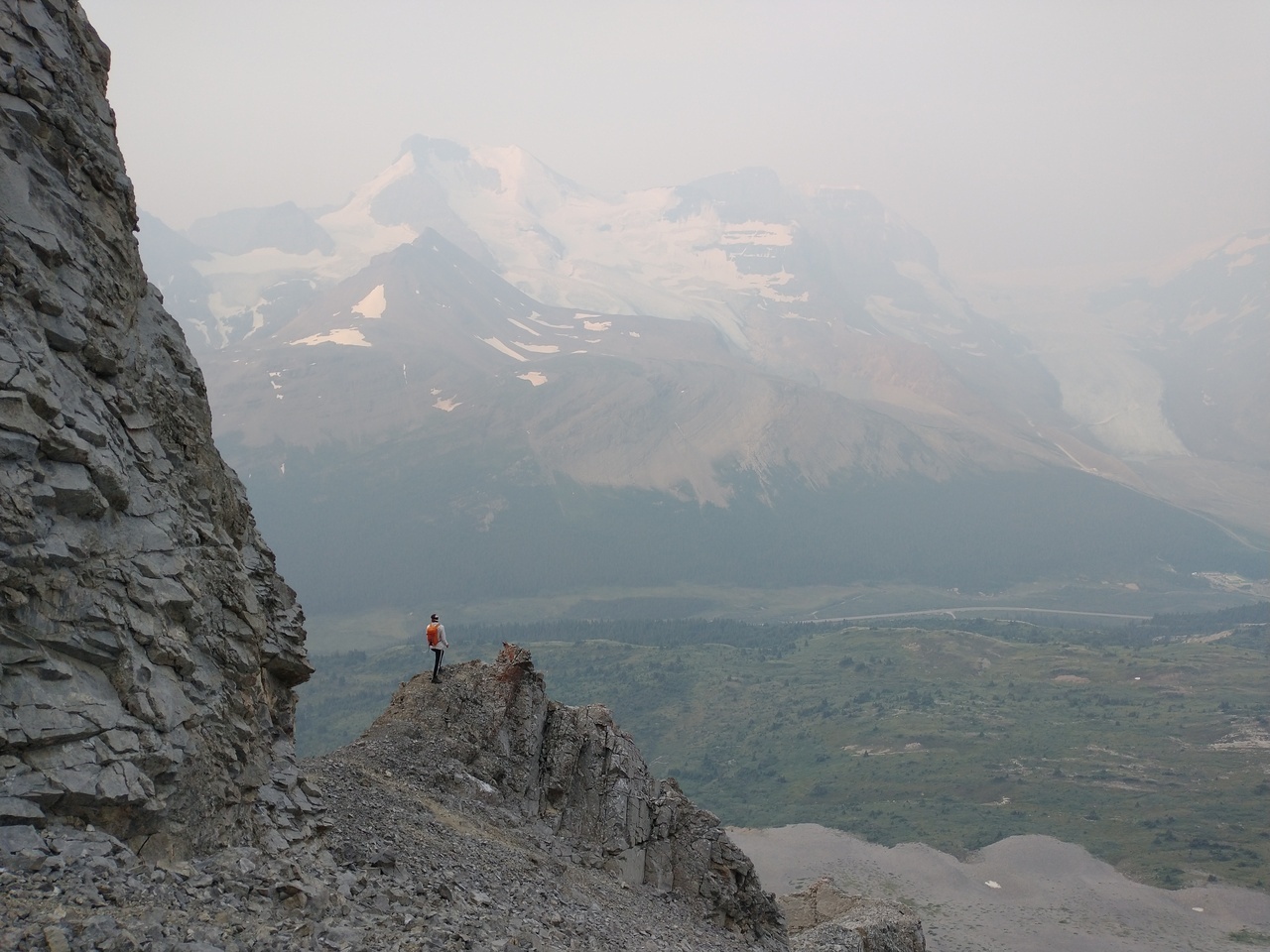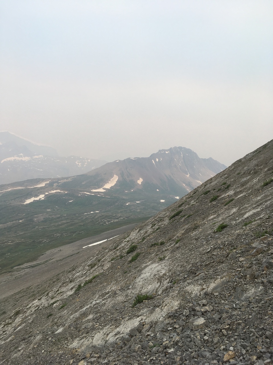 We sat on the summit for almost 3 hours, hoping the smoke might dissipate...I wandered down a short ridge to the north to fill some time. Photo credit: Dad
