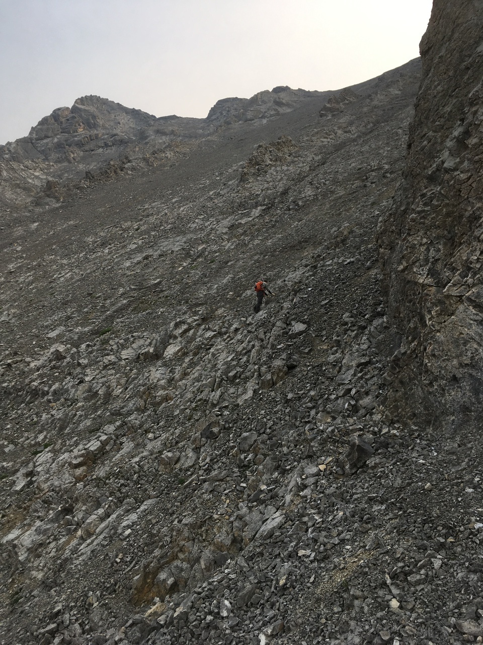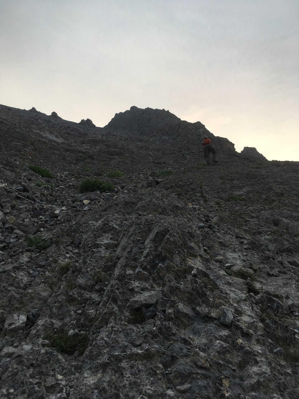 Looking back as we follow the connecting ridge! (We ascended over the bump, center-left) Apparently a fast scree run exists down the slope directly left in this picture, but we would end up taking a much different route down...