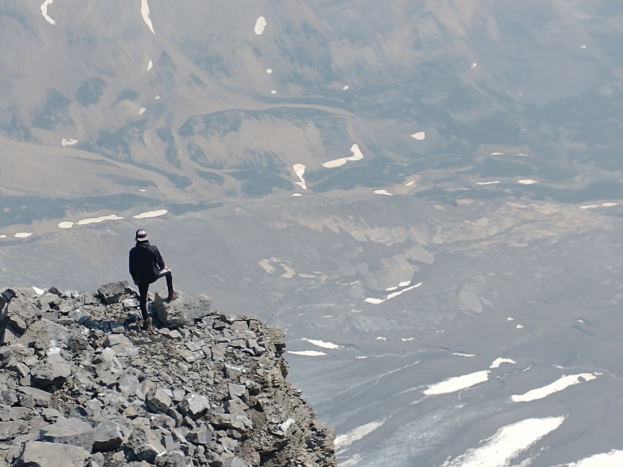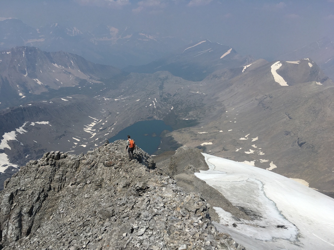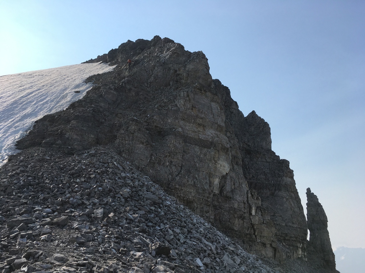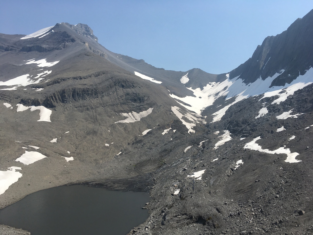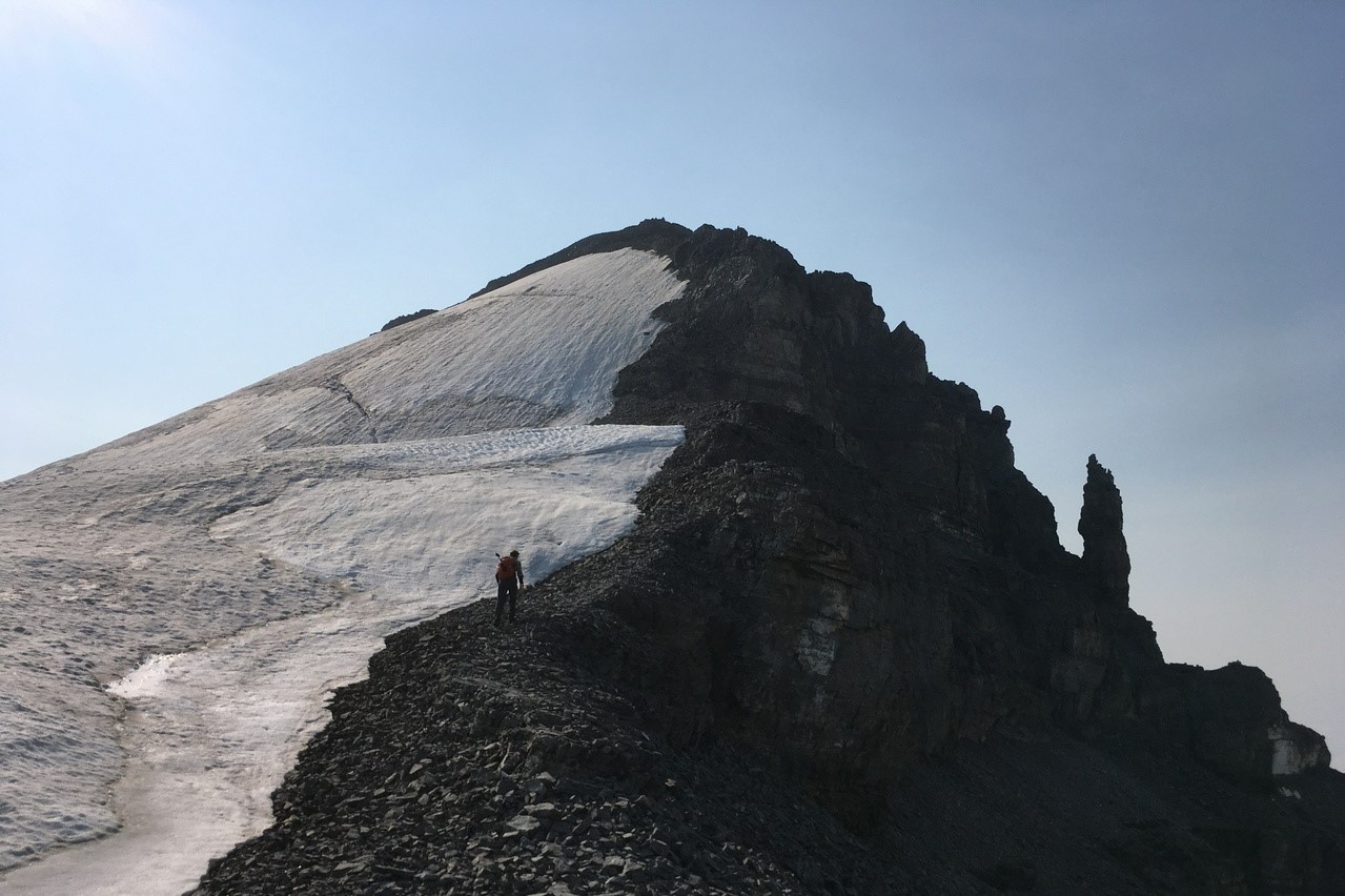 At 3211m, Nigel Peak is a big mountain and caught my attention many years ago. When viewed from Athabasca Glacier, Nigel Peak rises majestically across the highway and has a temple-like aura about it. Although it may be separated from, and get less attention then the giants of the Columbia Icefield, Nigel has a glacier of its own on the backside and holds its own as a beautiful mountain! The scramble route is fairly short and enjoyable, and takes you right along the glacier when ascending the summit ridge! Unfortunately for us, this day marked the beginning of weeks of smoke and the views really took a hit :( Even so, scrambling this peak made for a great day, combined with an alternate descent that added a good chunk of distance, but also variety and unique views to our trip!