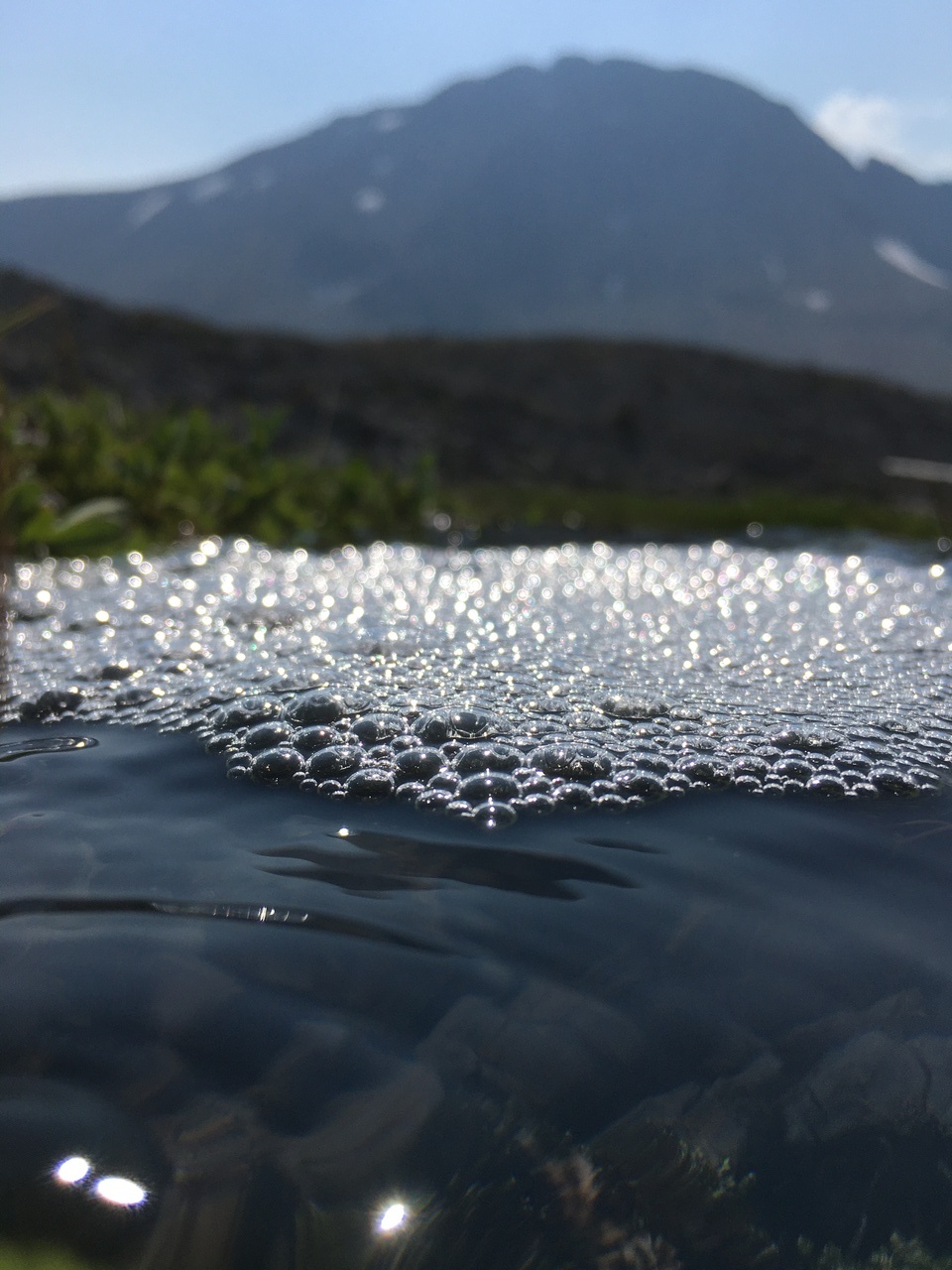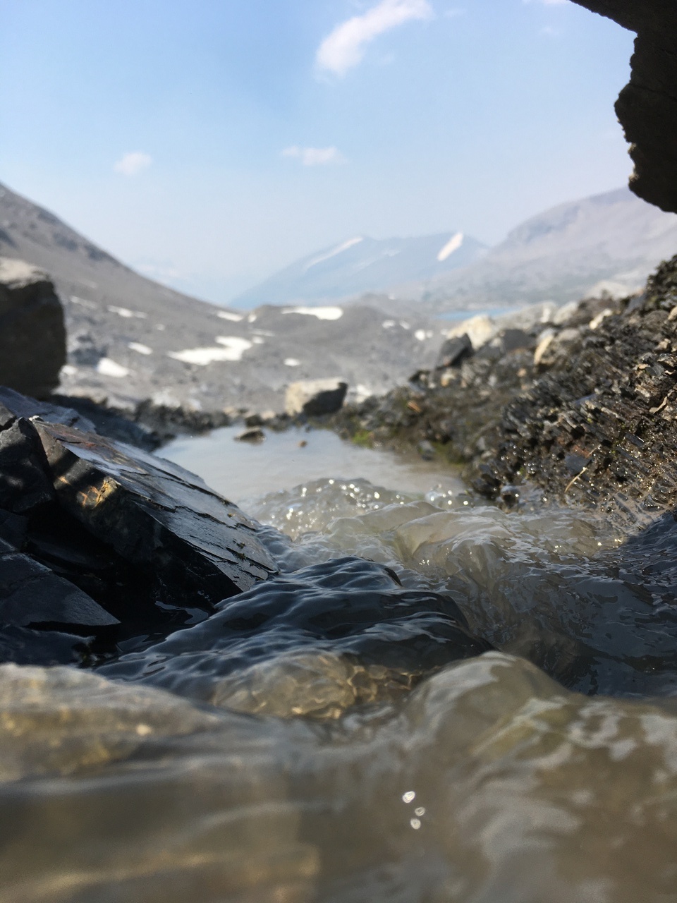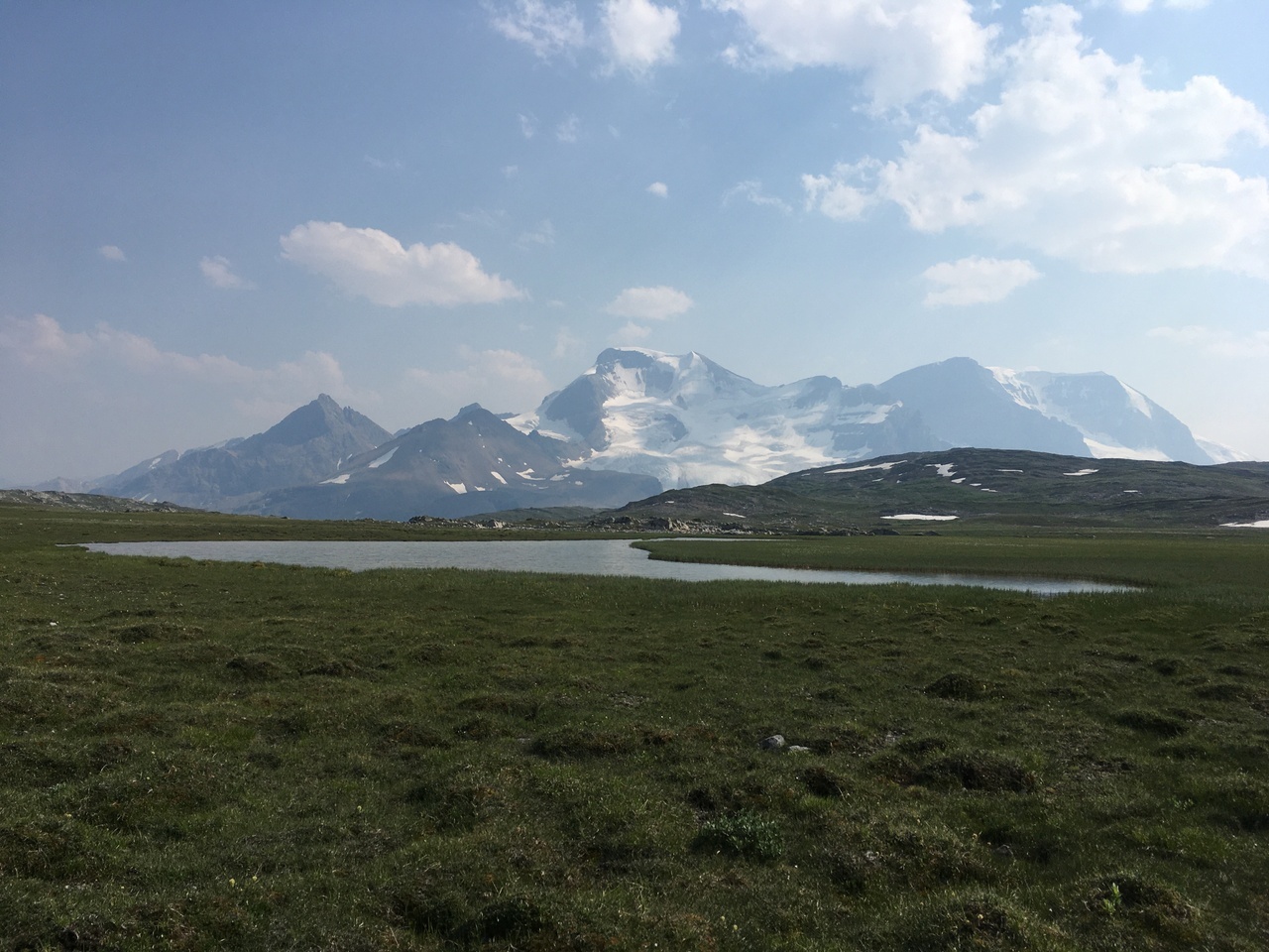 Looking back to glaciated Mount Athabasca towering above Hilda Peak (left), and Boundary Peak (center)!...Back off mosquitoes! This isn't even your territory anymore!!