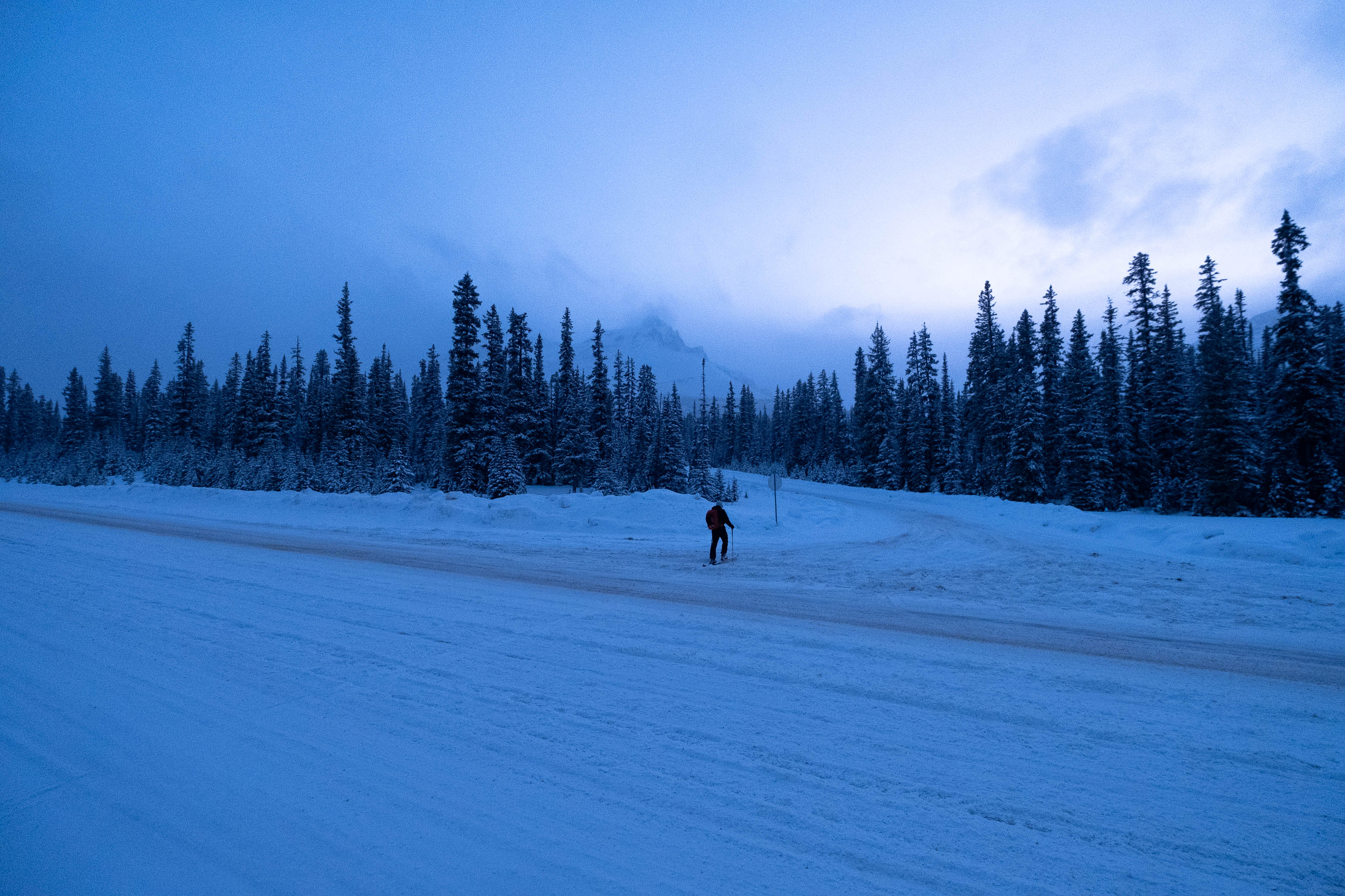 The ski back down to the highway was interesting as always - just typical Rockies survival skiing for ya 😉 - and we made it back to a now completely empty Peyto Lake parking lot around 18:00 with darkness fast approaching.