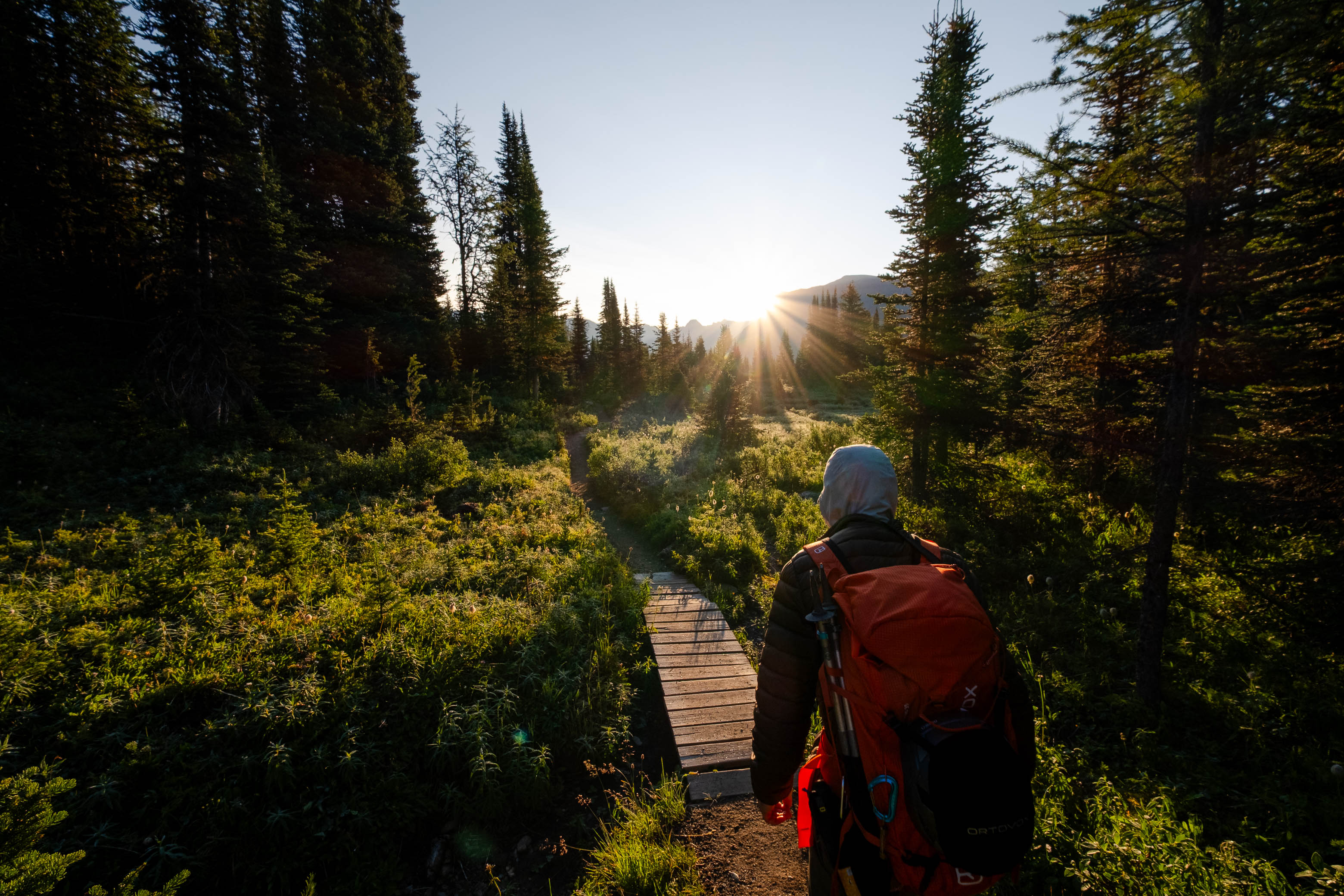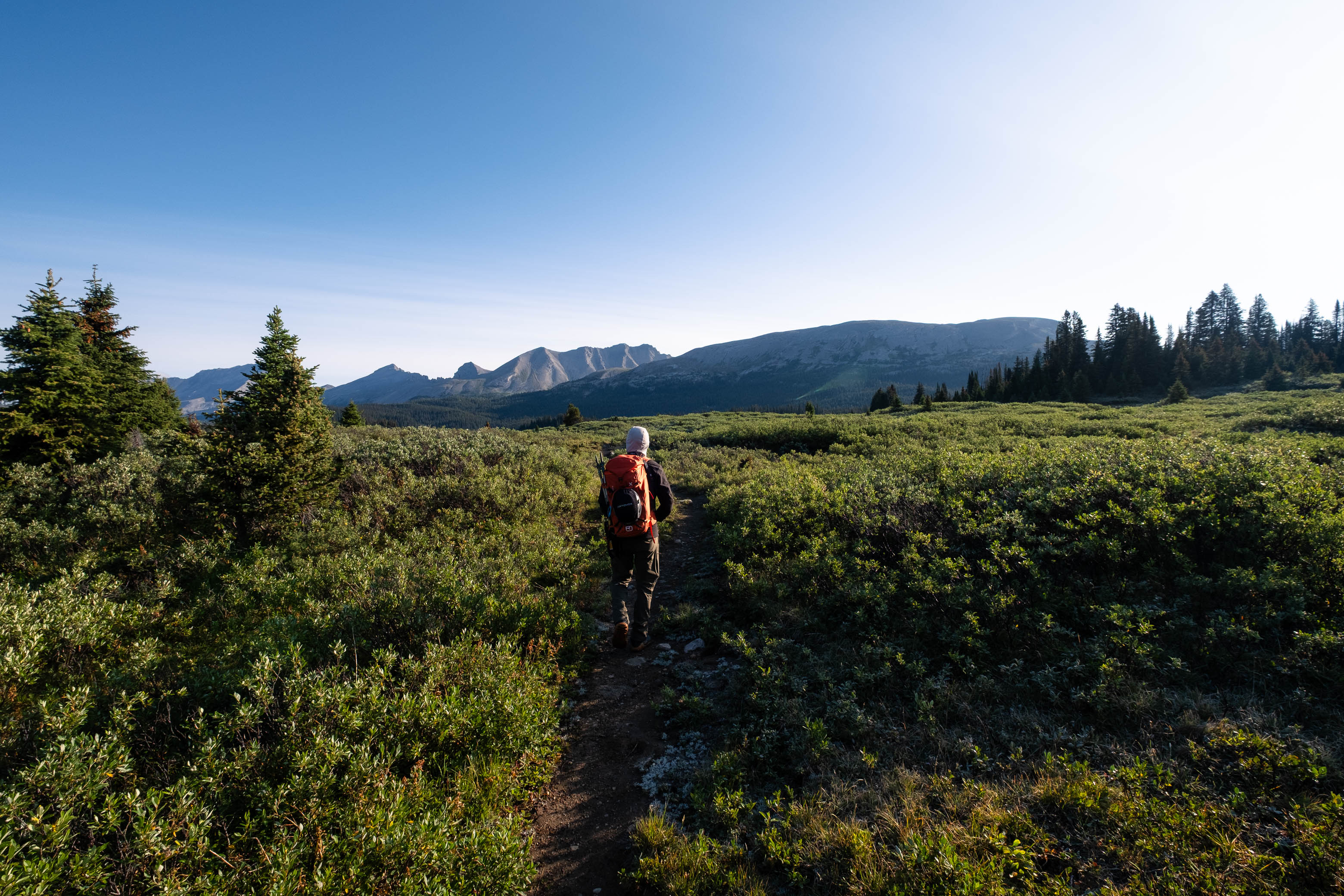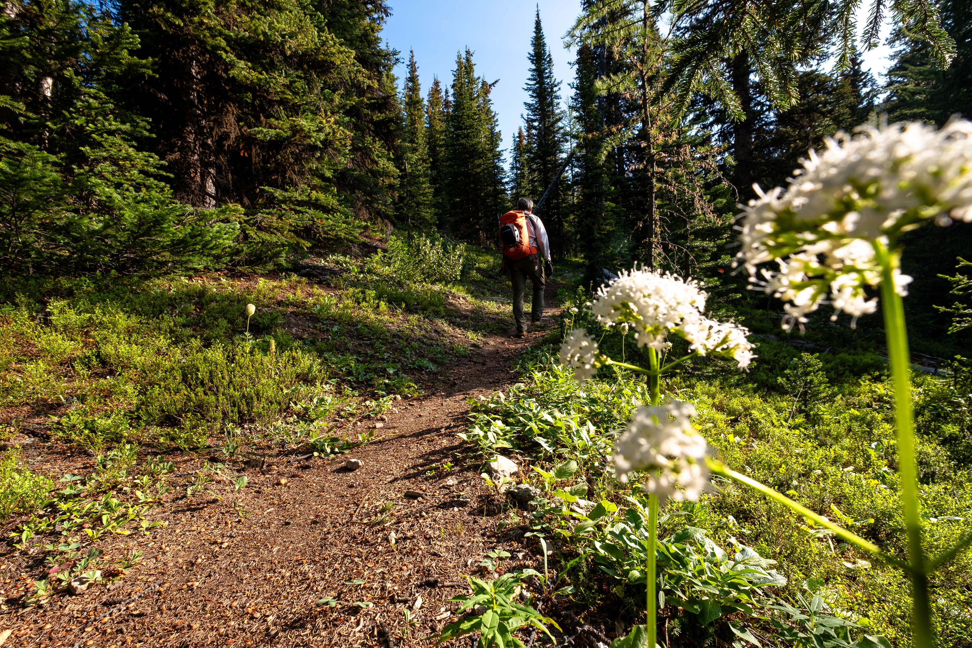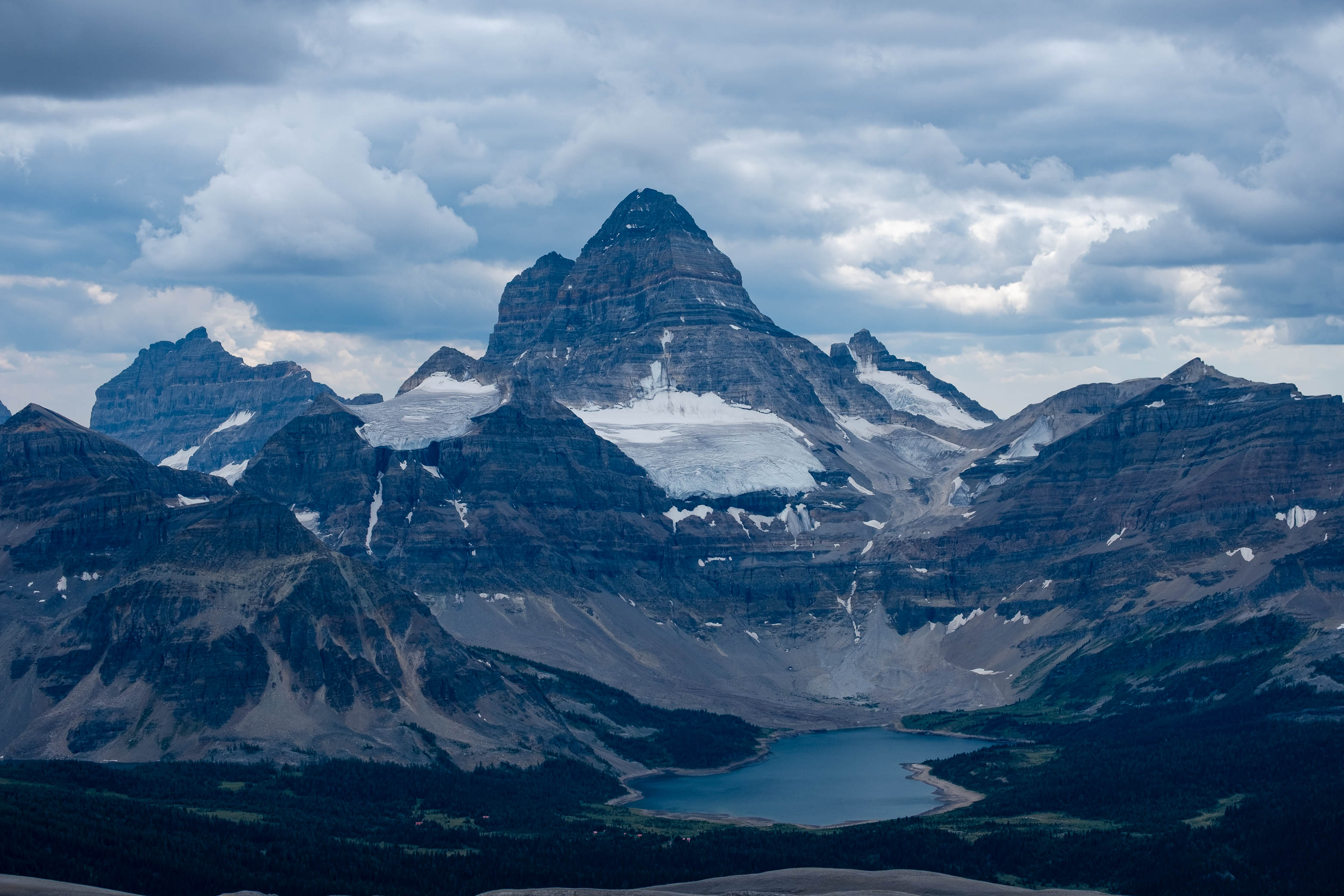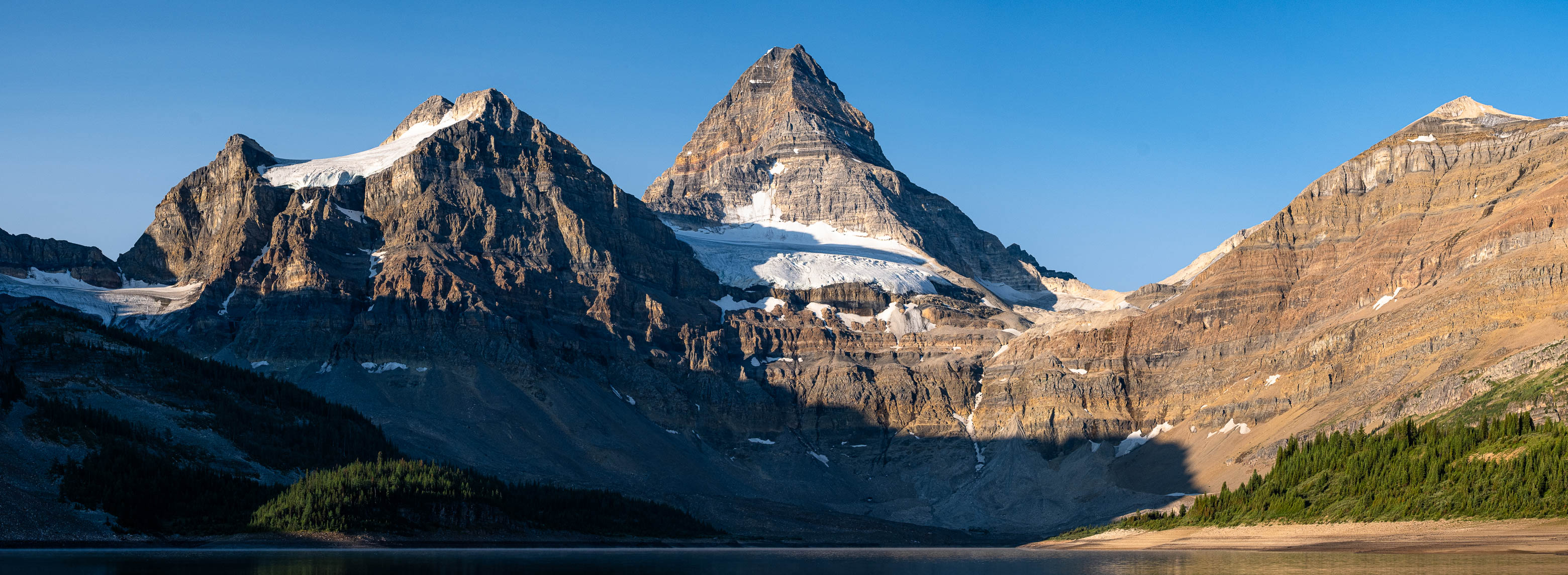 Poking our heads out of our tent to perfectly clear skies, we rushed to wiggle out of our sleeping bags and were leaving the campground within minutes, hiking down the trail towards the north shores of Lake Magog. A different trail leads more directly from the campground towards Og Pass, but personally I thought this minor detour was more than worth it to experience Mount Assiniboine's impressive, pyramidal form reflected perfectly in the calm morning waters.