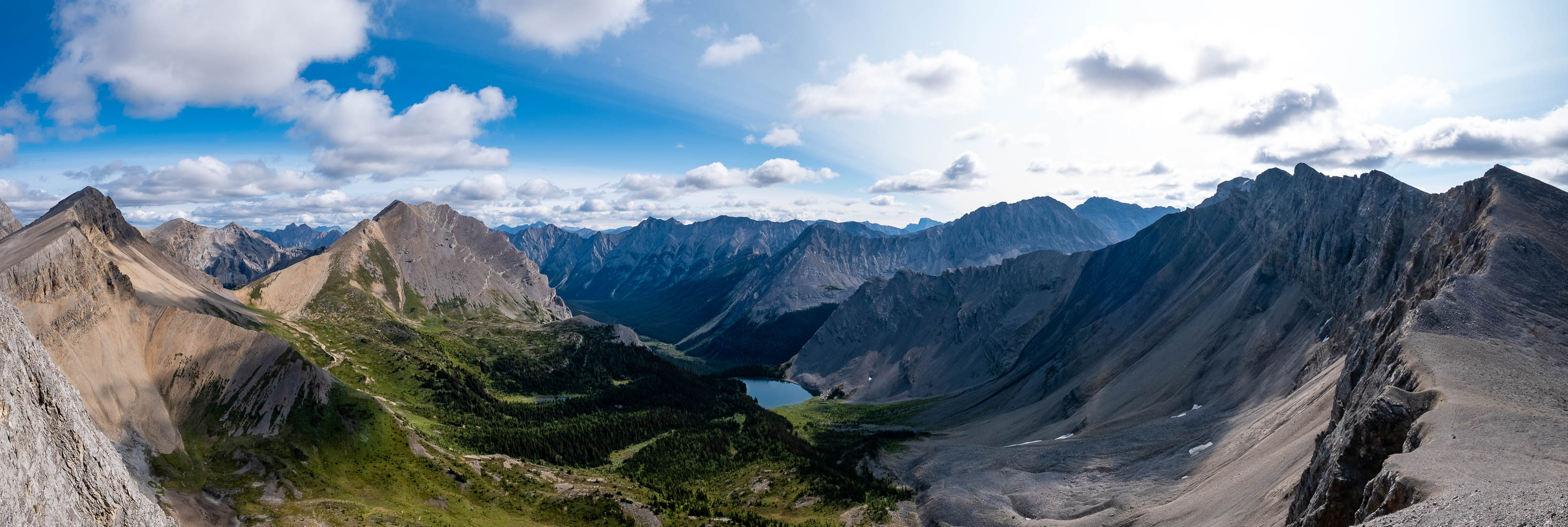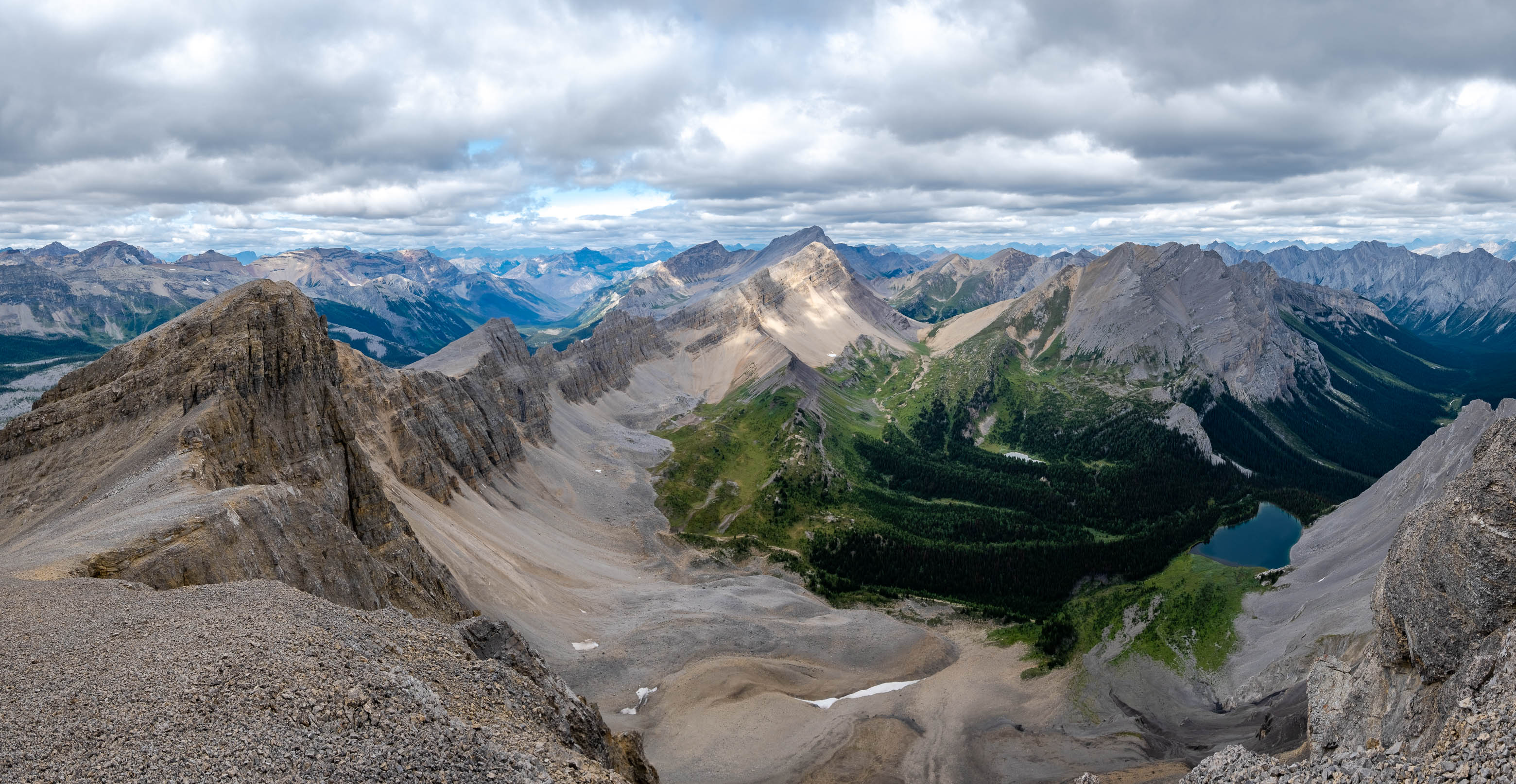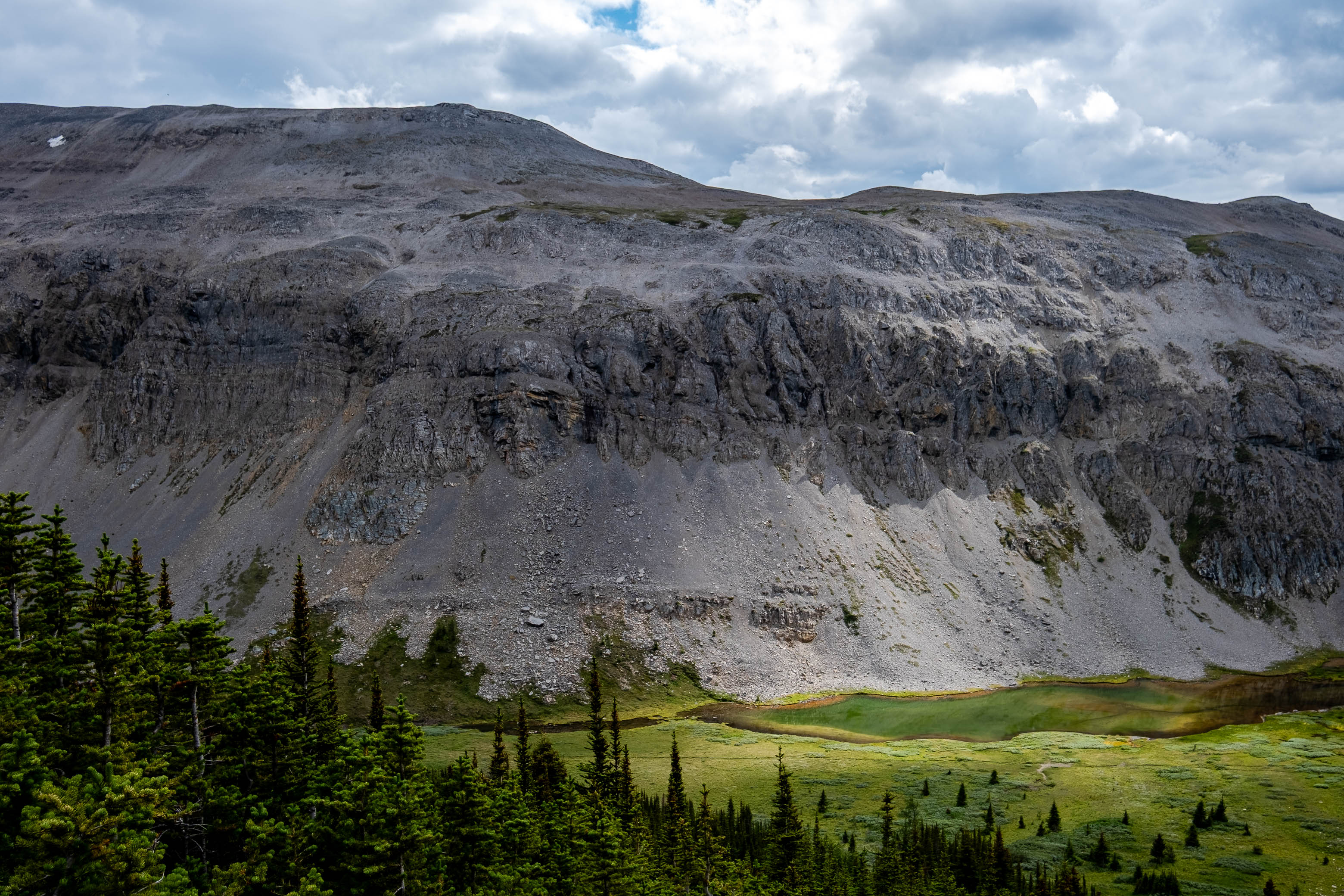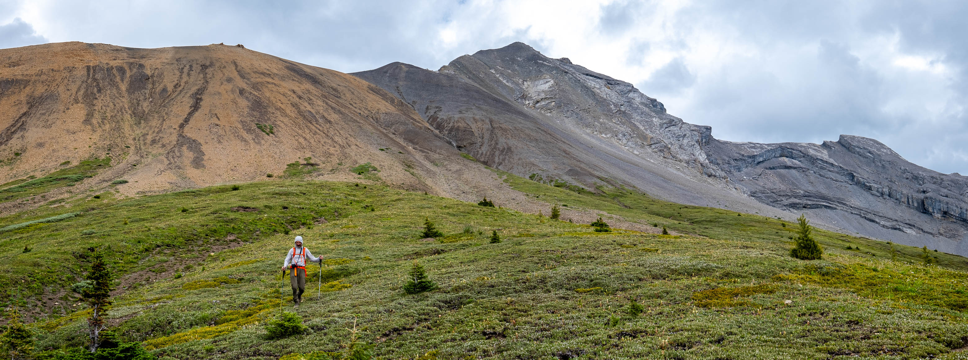 Once we hit the valley bottom, we turned right on an obvious (but not heavily traveled) trail, passing a uniquely green coloured tarn on route to Og Pass and our final summit of the day!