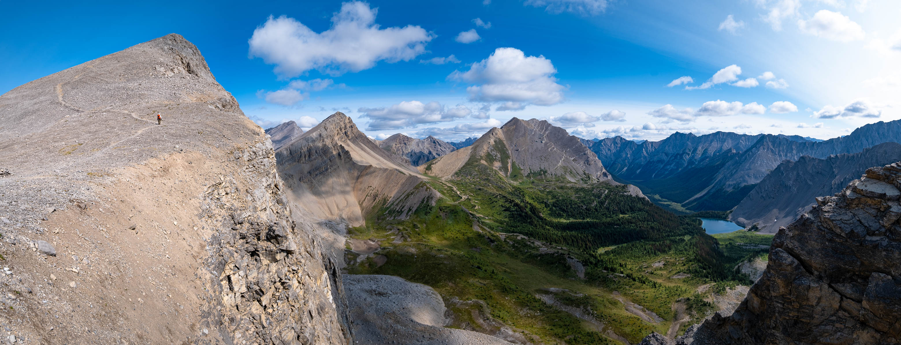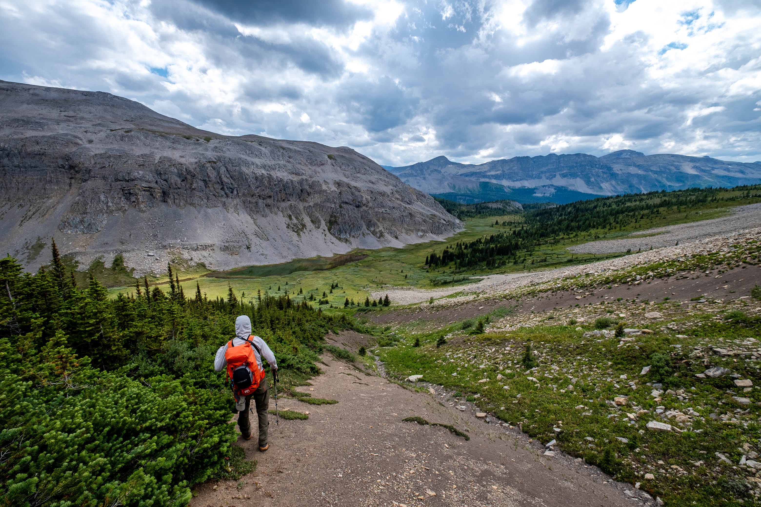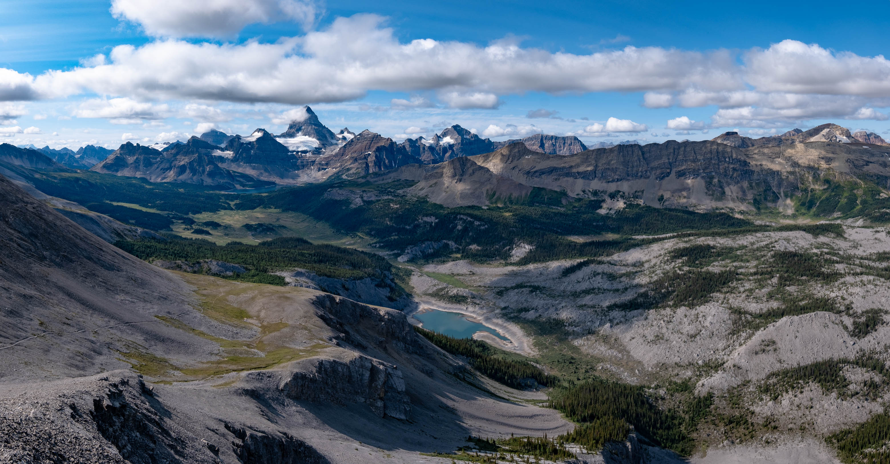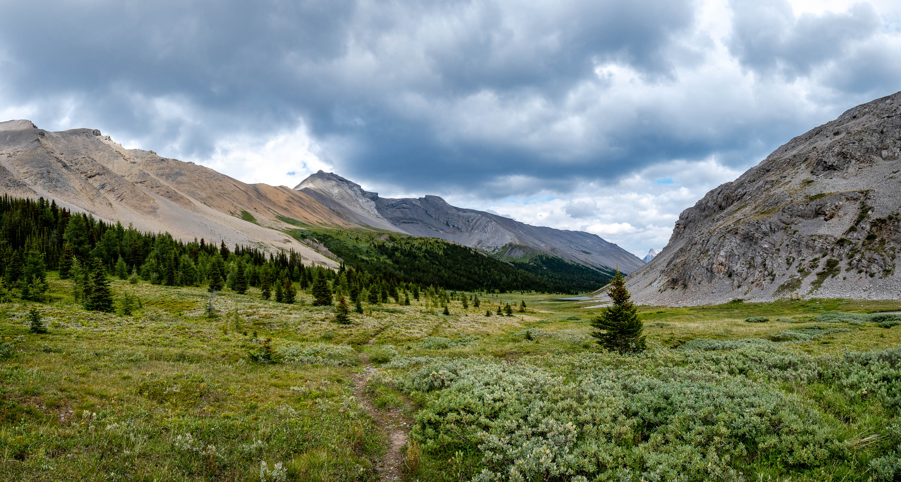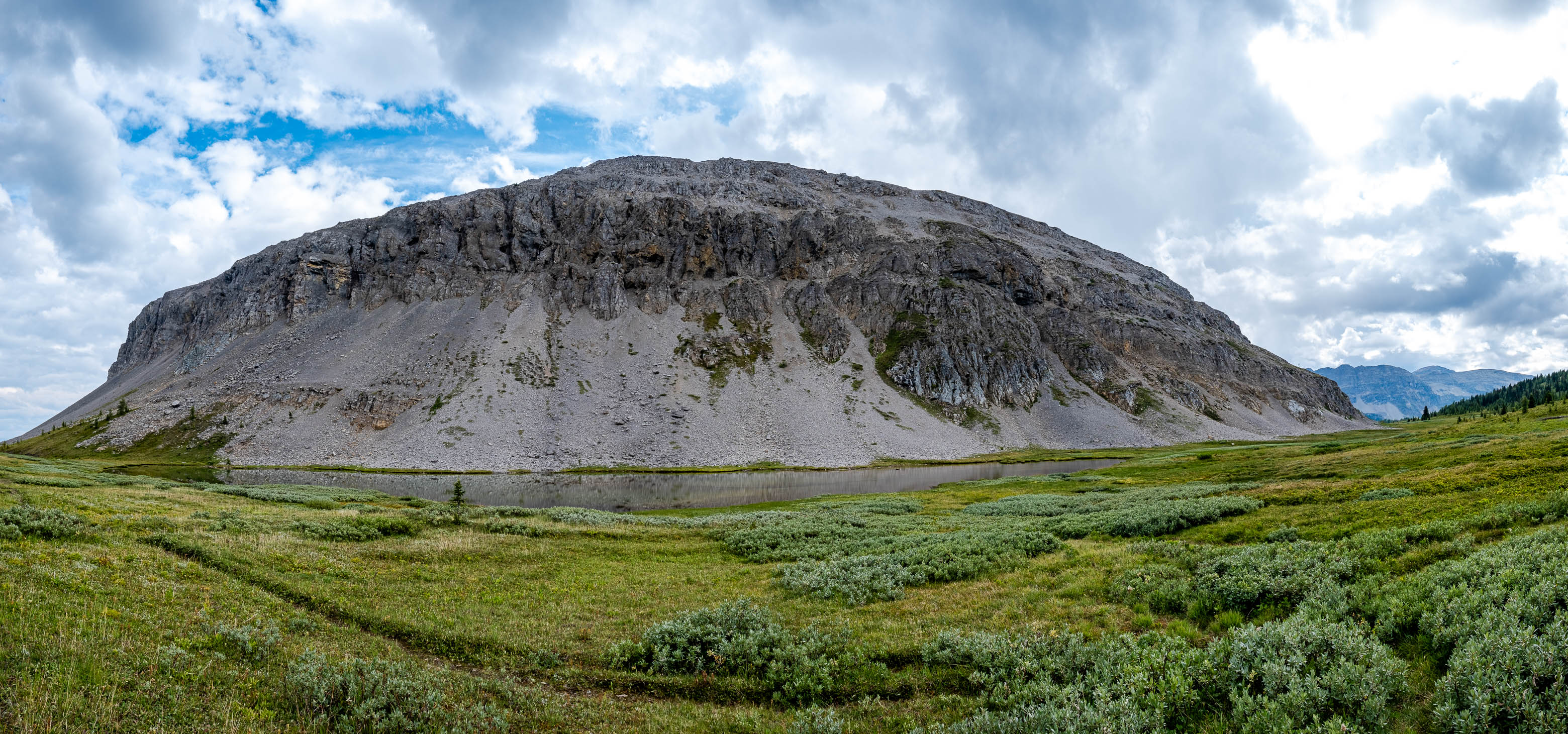 Once we hit the valley bottom, we turned right on an obvious (but not heavily traveled) trail, passing a uniquely green coloured tarn on route to Og Pass and our final summit of the day!
