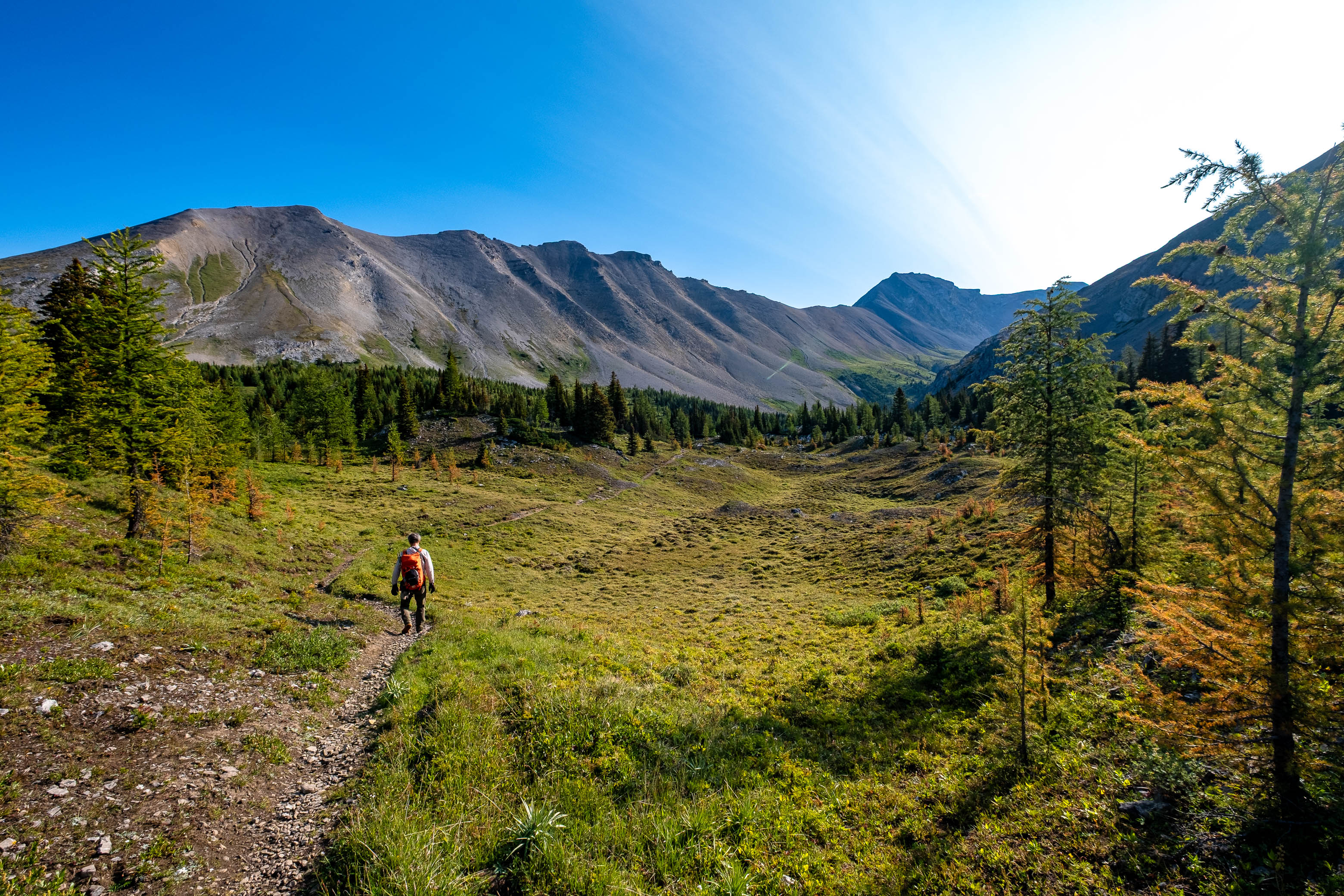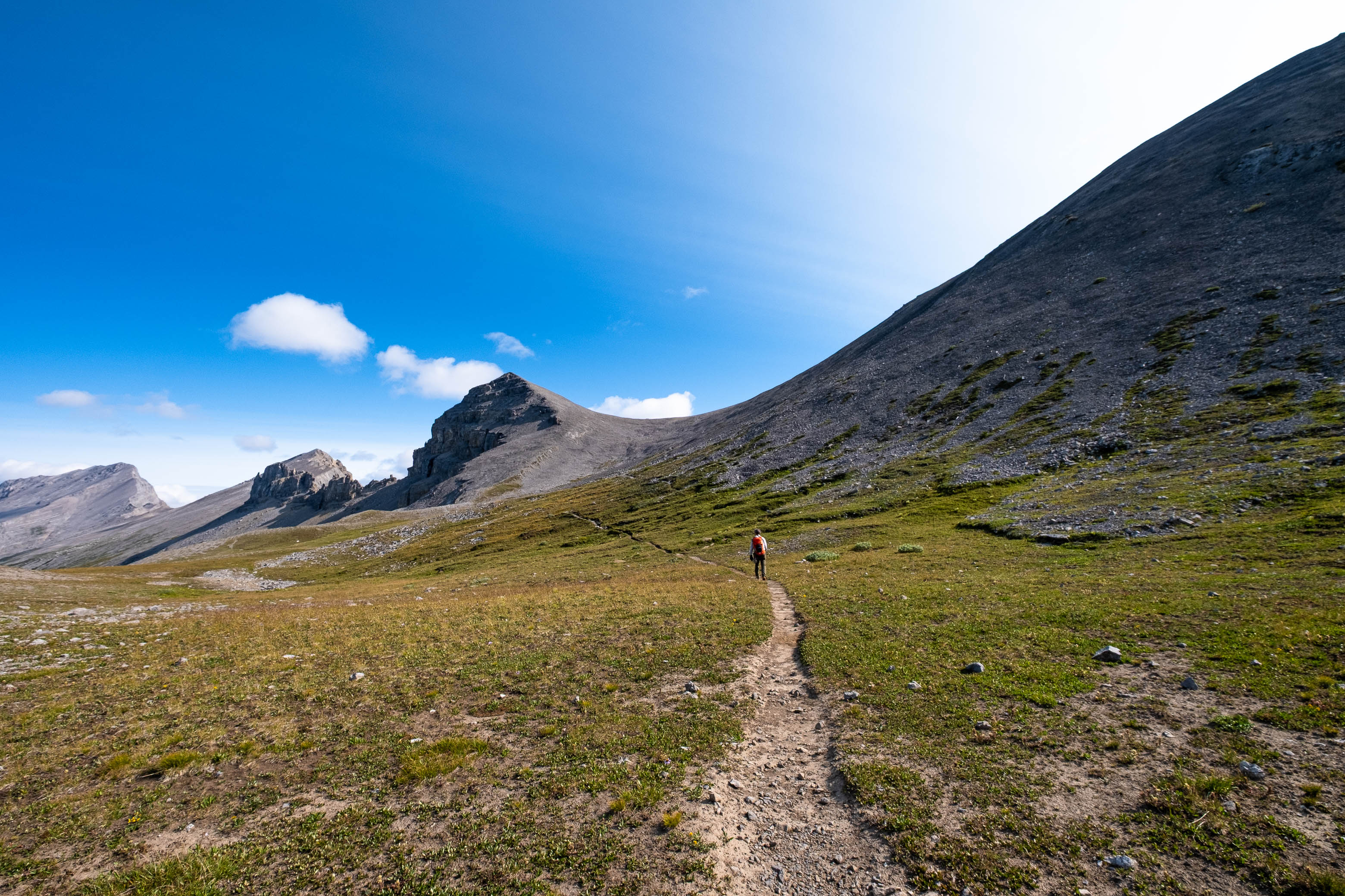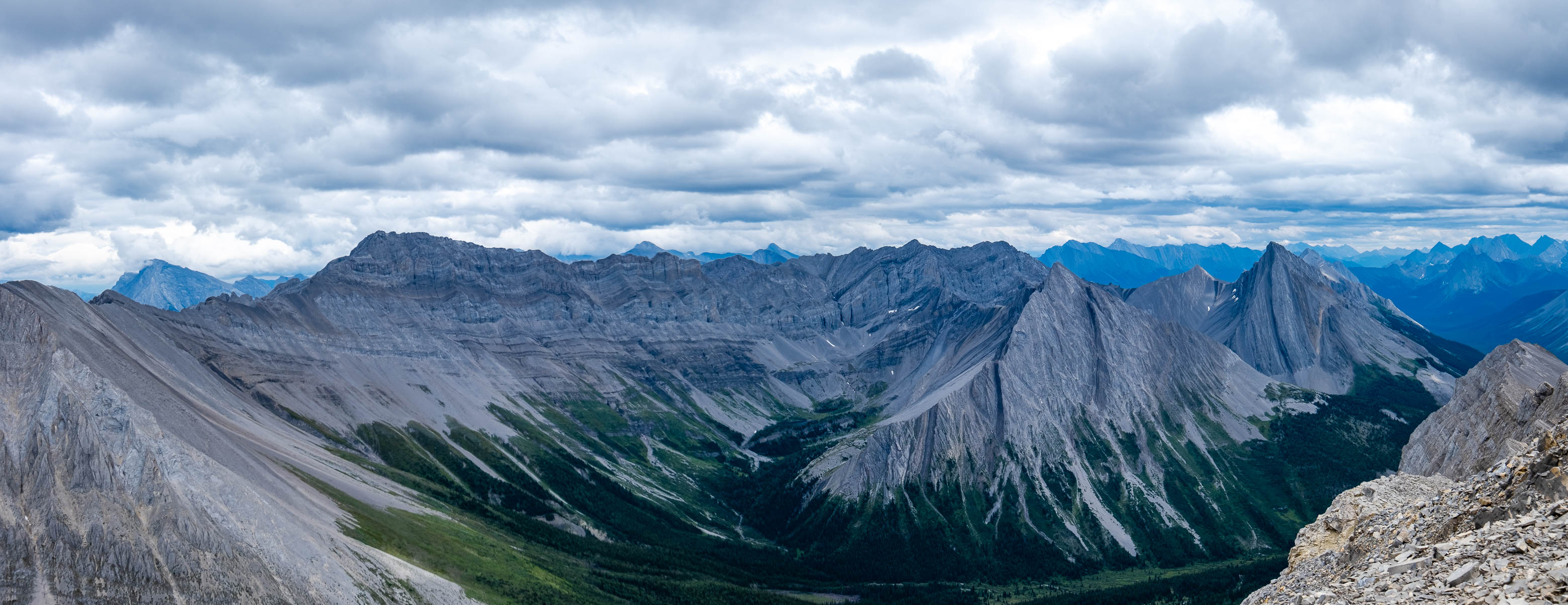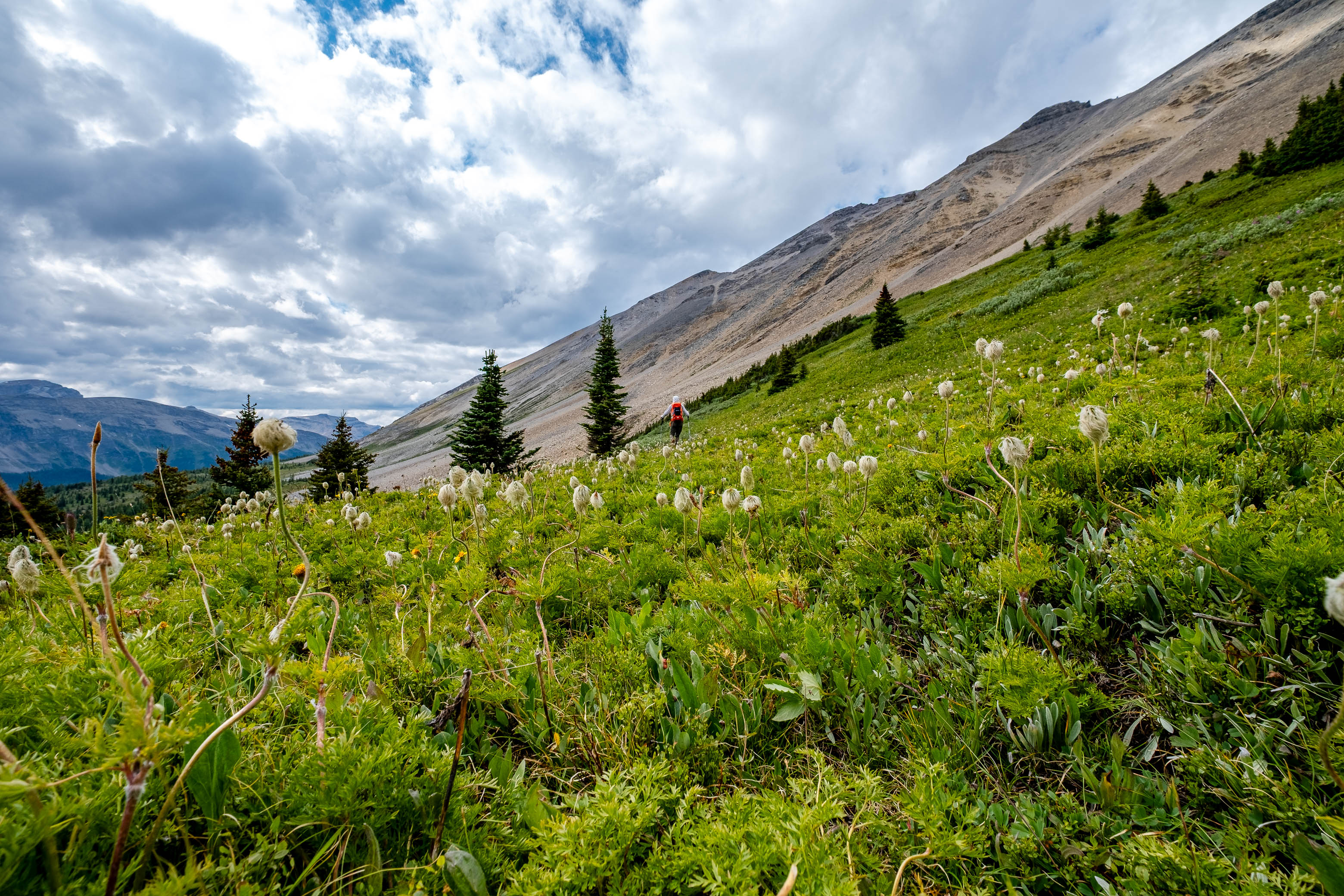 Once we hit the valley bottom, we turned right on an obvious (but not heavily traveled) trail, passing a uniquely green coloured tarn on route to Og Pass and our final summit of the day!