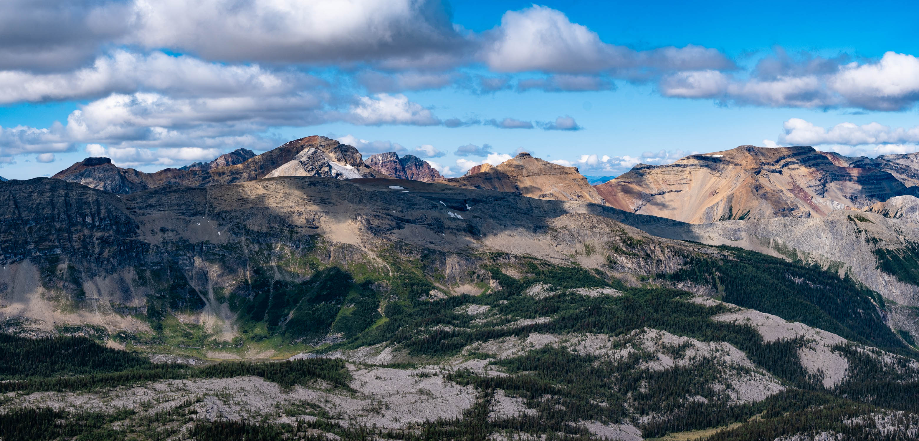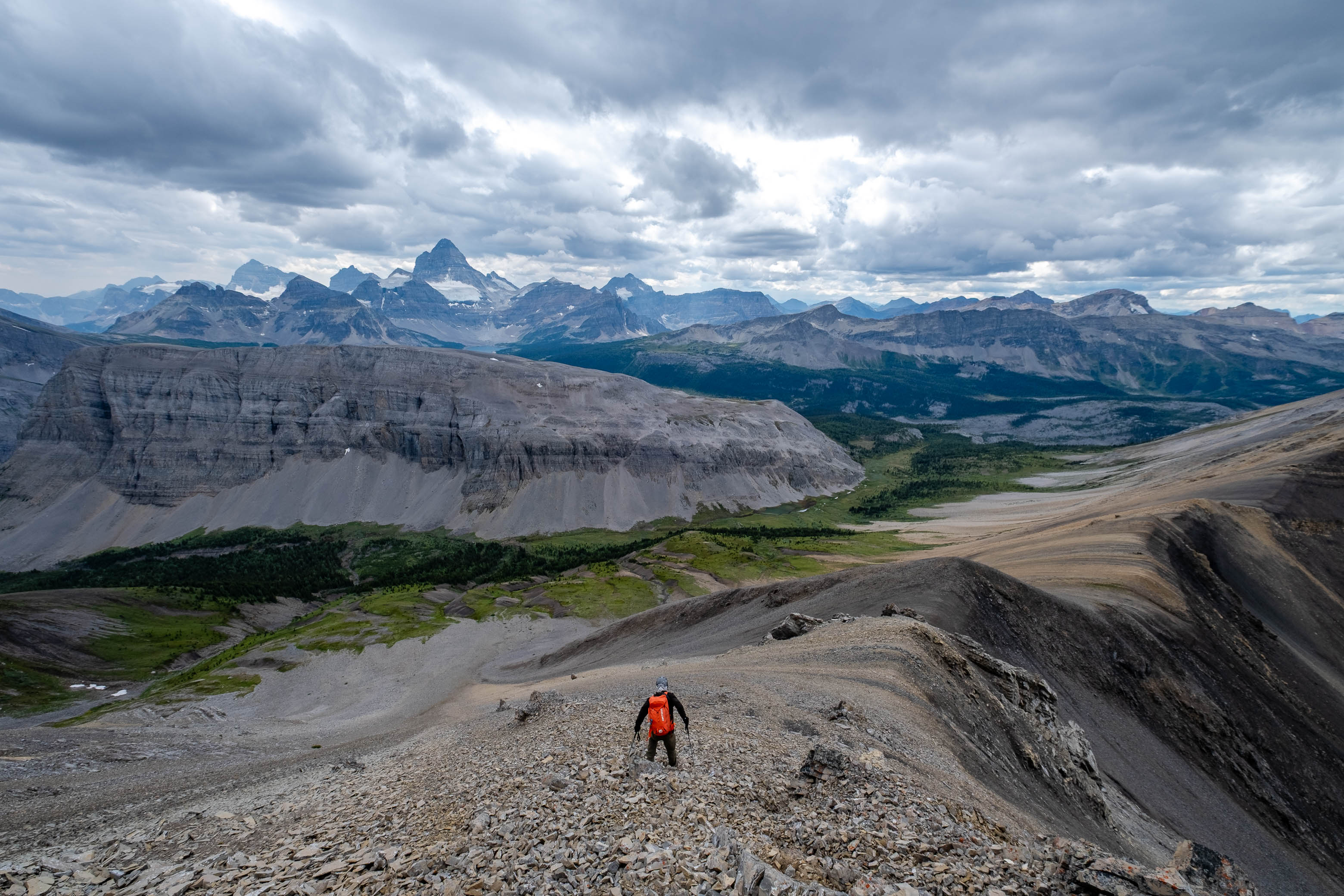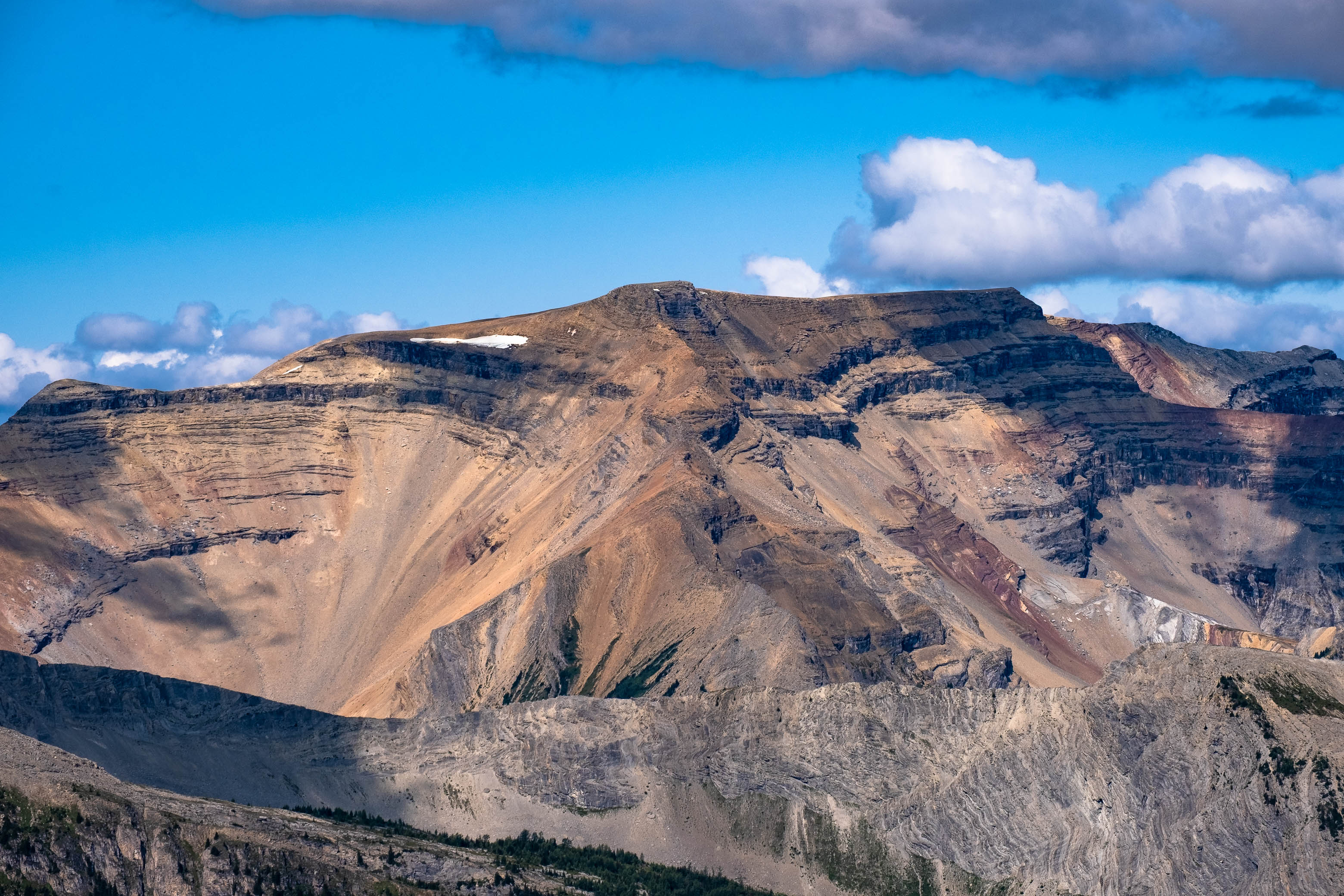After hiking in to Assiniboine from the Mount Shark trailhead, spontaneously deciding to complete The Cautley Traverse, rushing to bag all six peaks as darkness fell, and finally setting up camp and slipping into our sleeping bags well after 1 am, my dad and I were up again five hours later, eager to continue right where we left off! (Well, I can only speak for myself about the eager part...I think my dad was pretty happy right where he was. 😂) There were three peaks on the menu for our second day in the park - Windy Ridge, Og Mountain, and Cave Mountain. Windy Ridge and Cave Mountain are simple scree hikes which are ascended quite regularly, but Og Mountain is a little bit more of an obscure undertaking. The first highpoint on the west end of Og's lengthy summit ridge is labeled on maps as the official summit, but I didn't trust this considering that it's lower than all subsequent peaks along the ridge...(Personaly that doesn't sound very summit-like to me!) I came across Vern's trip report from his ascent of Og Mountain back in 2008, where he had the same suspicions I did and therefore continued along the ridge to the "fourth summit". While looking at my topo map, however, I noticed another "fifth summit", rising significantly higher than the fourth, about 1.4 km further east. If I was basing the summit strictly on elevation, then it only seemed logical that it was this peak that I would have to reach in order to claim true summit...It looked like I had some investigating in my hands, so that's exactly what I set out to do on an absolutely perfect morning in one of the most beautiful corners of the Rockies.
