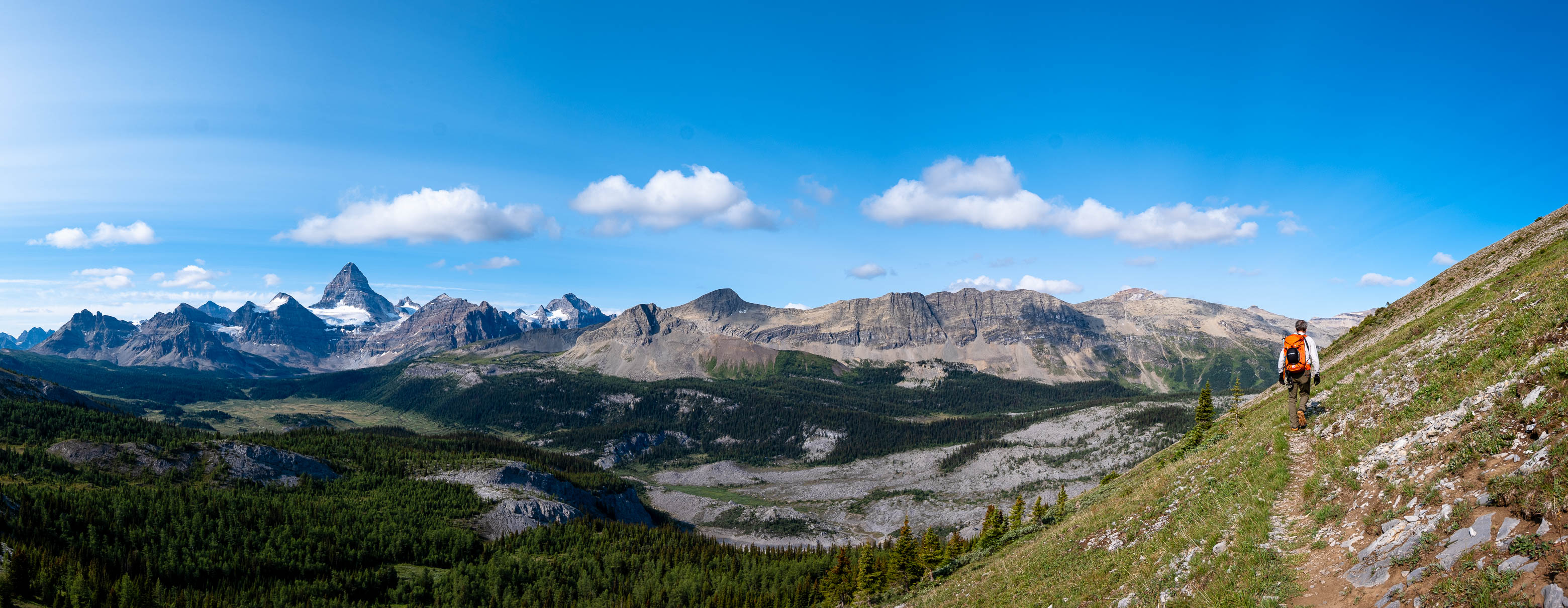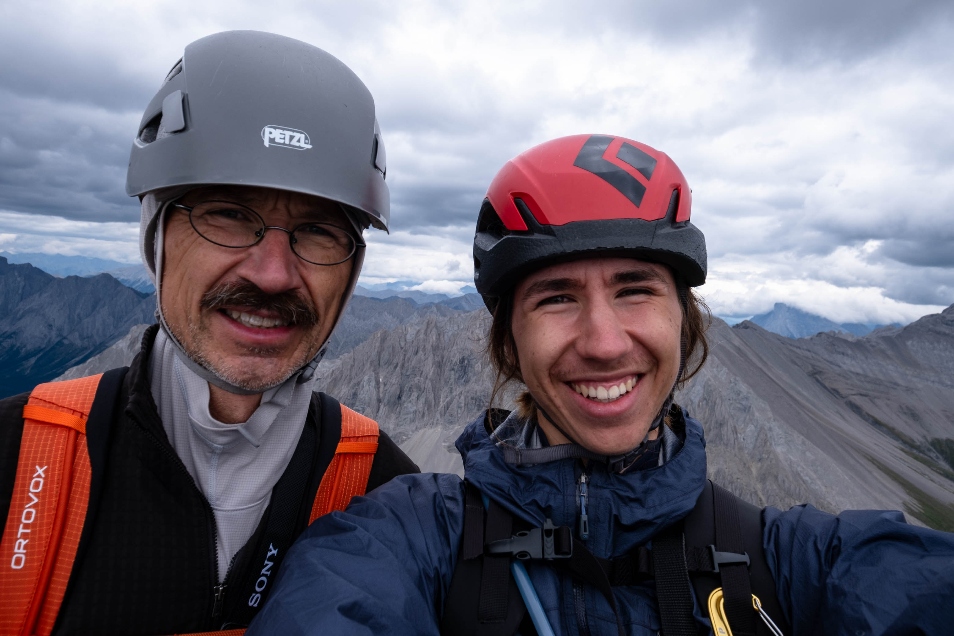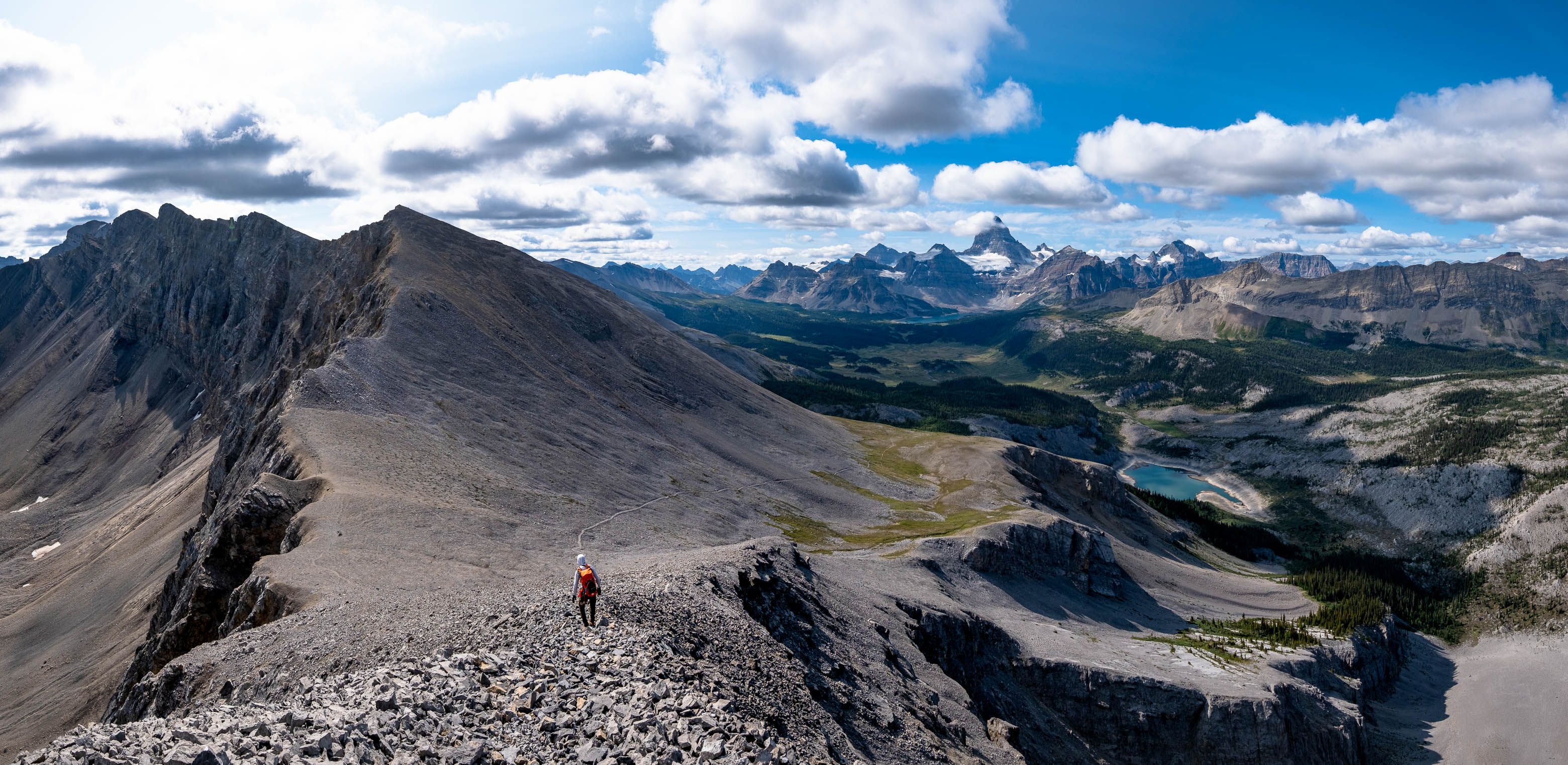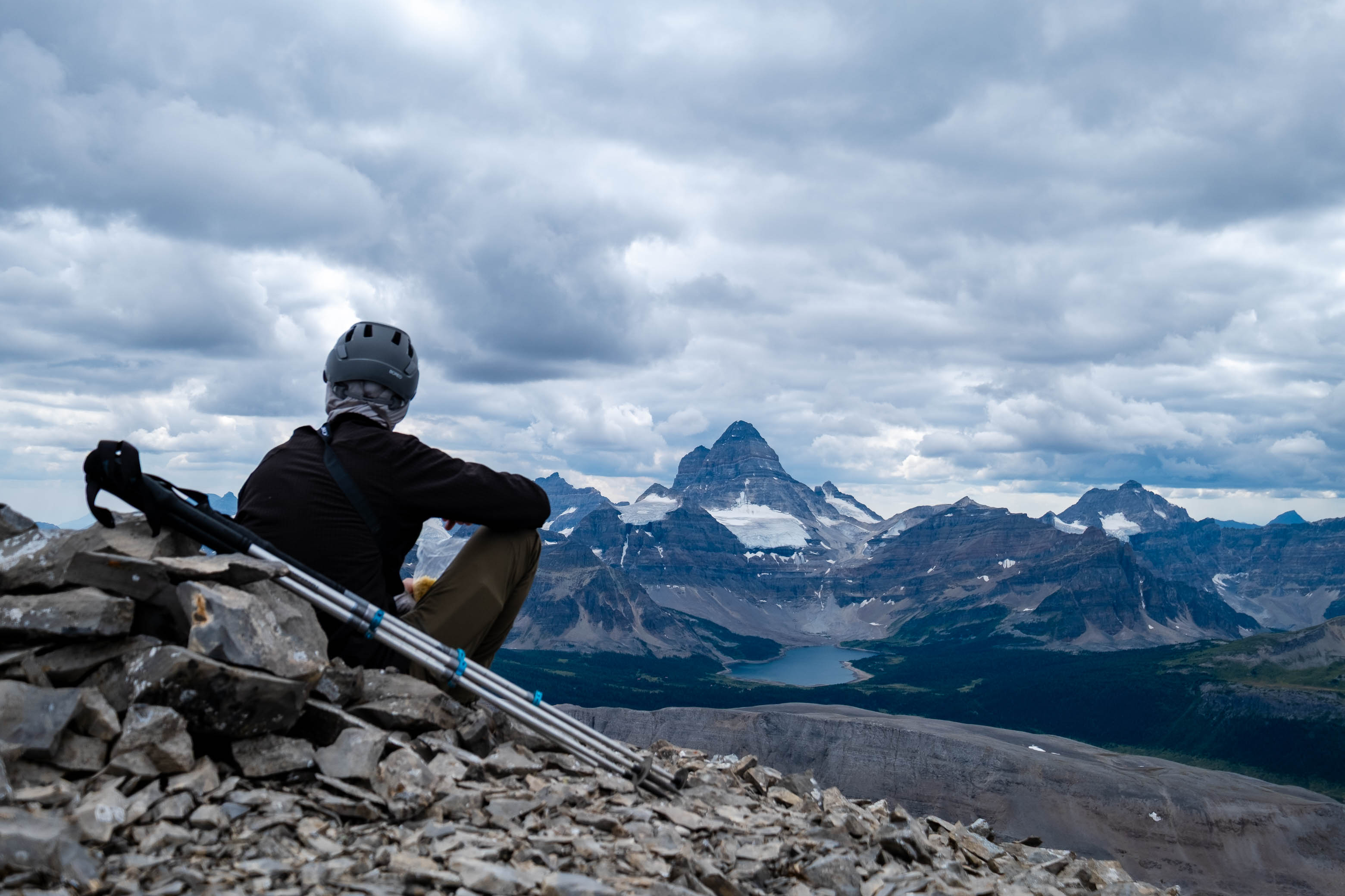After hiking in to Assiniboine from the Mount Shark trailhead, spontaneously deciding to complete The Cautley Traverse, rushing to bag all six peaks as darkness fell, and finally setting up camp and slipping into our sleeping bags well after 1 am, my dad and I were up again five hours later, eager to continue right where we left off! (Well, I can only speak for myself about the eager part...I think my dad was pretty happy right where he was. 😂) There were three peaks on the menu for our second day in the park - Windy Ridge, Og Mountain, and Cave Mountain. Windy Ridge and Cave Mountain are simple scree hikes which are ascended quite regularly, but Og Mountain is a little bit more of an obscure undertaking. The first highpoint on the west end of Og's lengthy summit ridge is labeled on maps as the official summit, but I didn't trust this considering that it's lower than all subsequent peaks along the ridge...(Personaly that doesn't sound very summit-like to me!) I came across Vern's trip report from his ascent of Og Mountain back in 2008, where he had the same suspicions I did and therefore continued along the ridge to the "fourth summit". While looking at my topo map, however, I noticed another "fifth summit", rising significantly higher than the fourth, about 1.4 km further east. If I was basing the summit strictly on elevation, then it only seemed logical that it was this peak that I would have to reach in order to claim true summit...It looked like I had some investigating in my hands, so that's exactly what I set out to do on an absolutely perfect morning in one of the most beautiful corners of the Rockies.