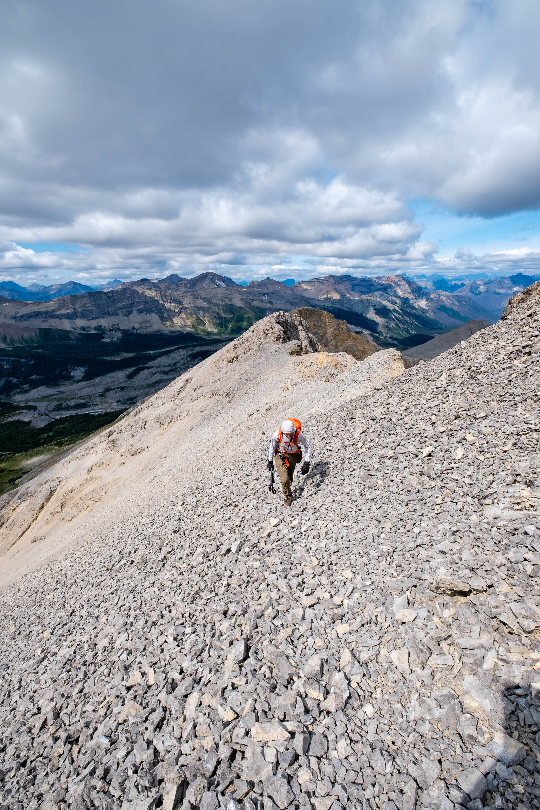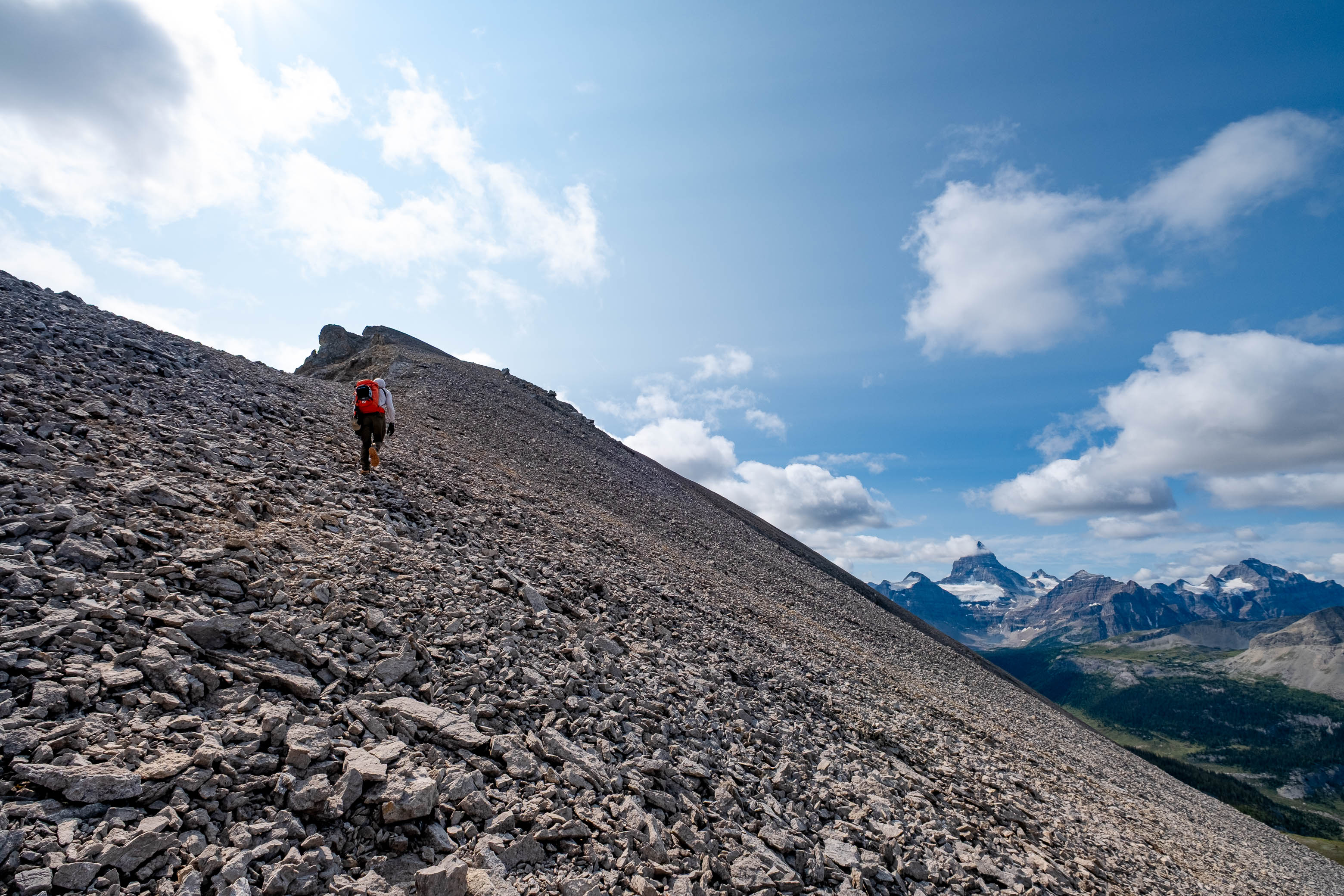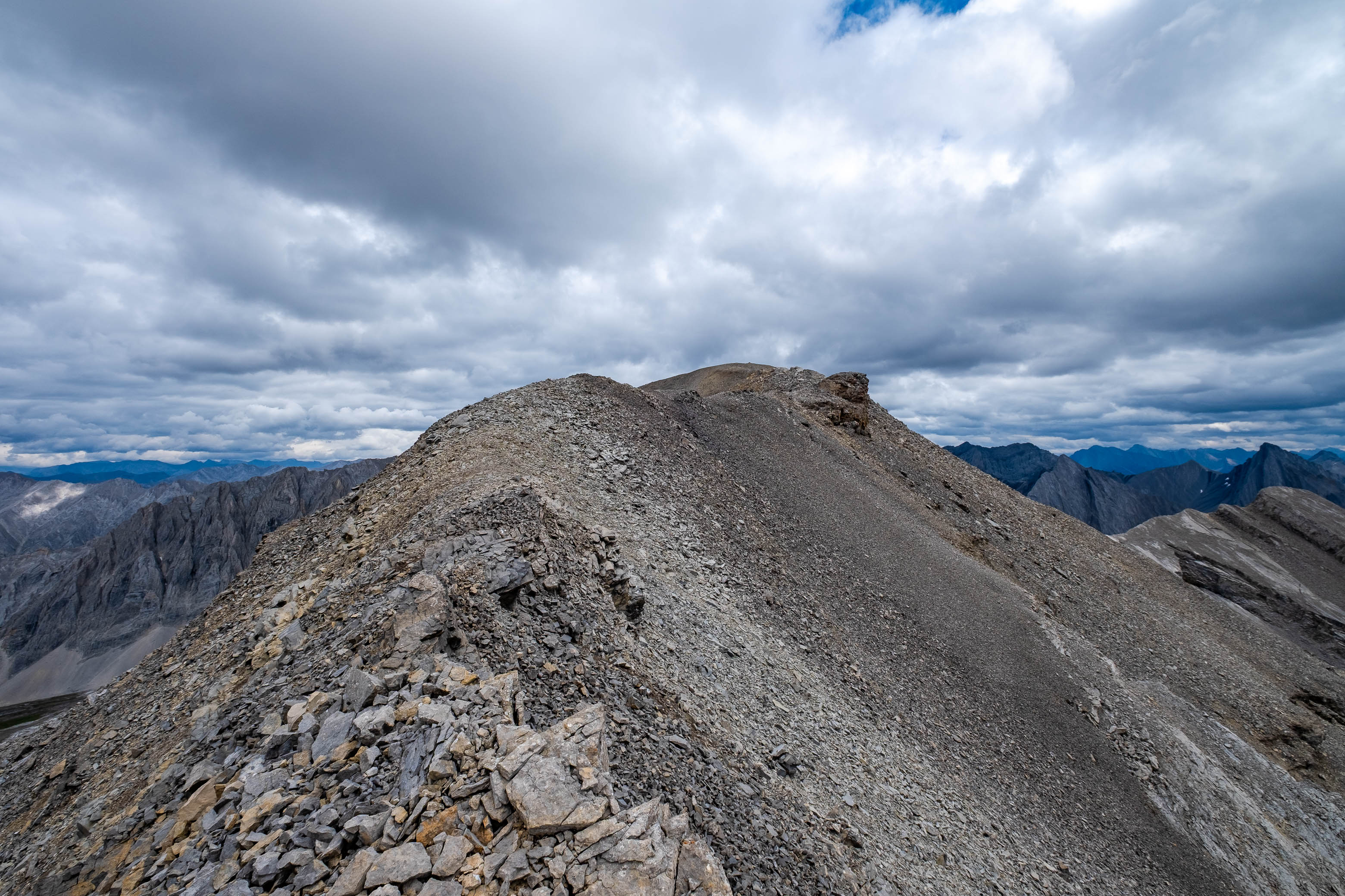 The route to the summit is pretty basic stuff - follow the ridge...That's really all there is to it! Don't underestimate this final trudge though...The way might be obvious, but it sure is a slog! My dad was still in a sour mood from all the unpleasant sidehilling and seemed to be holding a grudge against any rock that moved - which was almost every rock between us and the summit 😂! It was a "two steps forward, one step back" kind of game for the bulk of the ascent and although at times it seemed like it never would, the slope did eventually relent and a short summit ridge led easily to a waiting summit cairn.