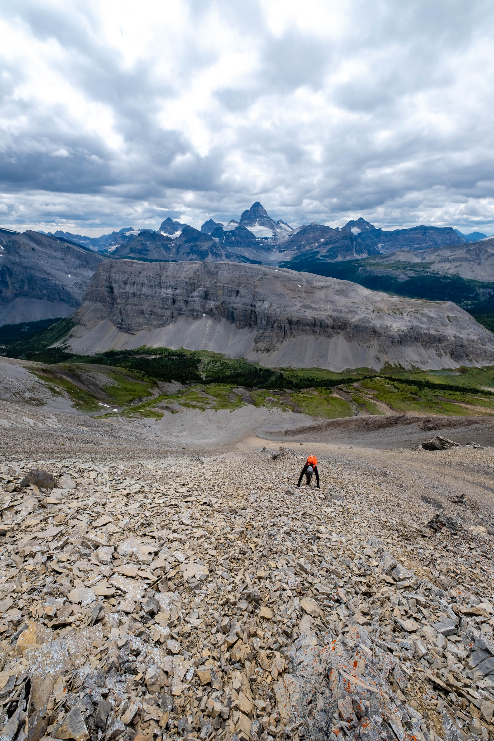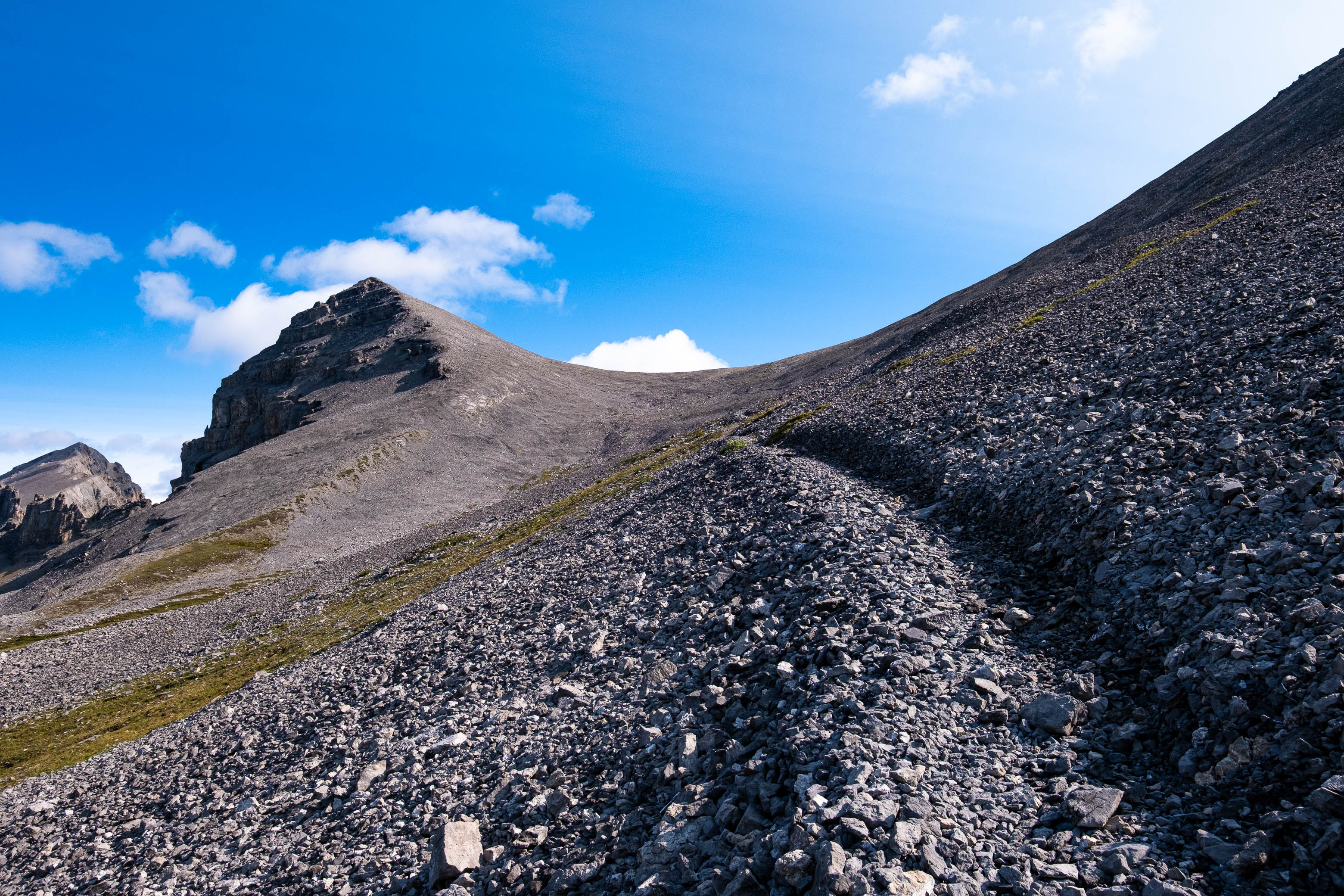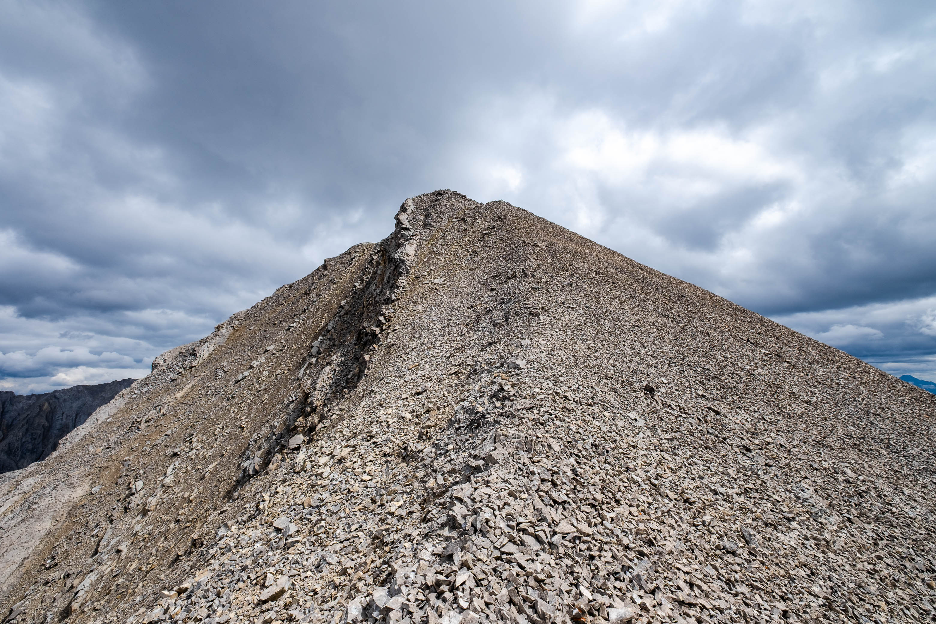 The route to the summit is pretty basic stuff - follow the ridge...That's really all there is to it! Don't underestimate this final trudge though...The way might be obvious, but it sure is a slog! My dad was still in a sour mood from all the unpleasant sidehilling and seemed to be holding a grudge against any rock that moved - which was almost every rock between us and the summit 😂! It was a "two steps forward, one step back" kind of game for the bulk of the ascent and although at times it seemed like it never would, the slope did eventually relent and a short summit ridge led easily to a waiting summit cairn.
