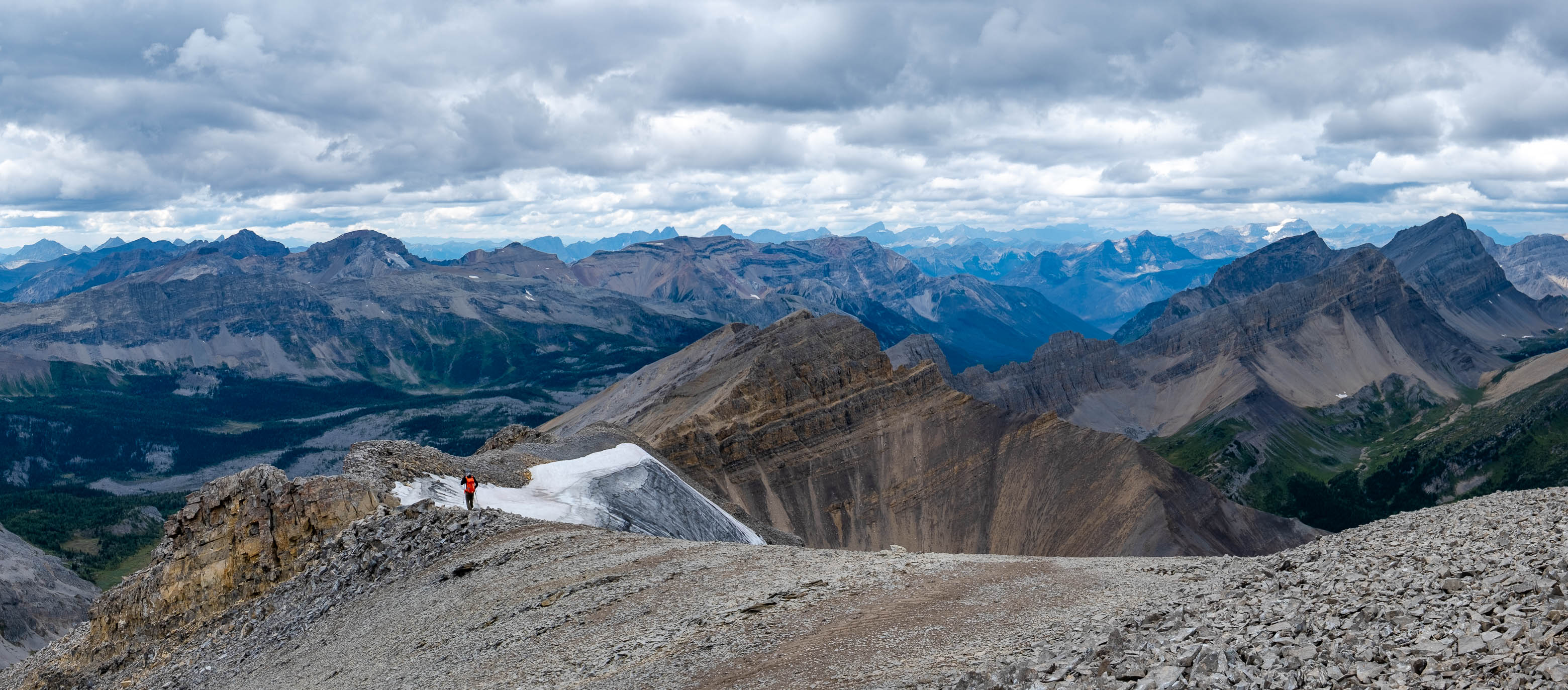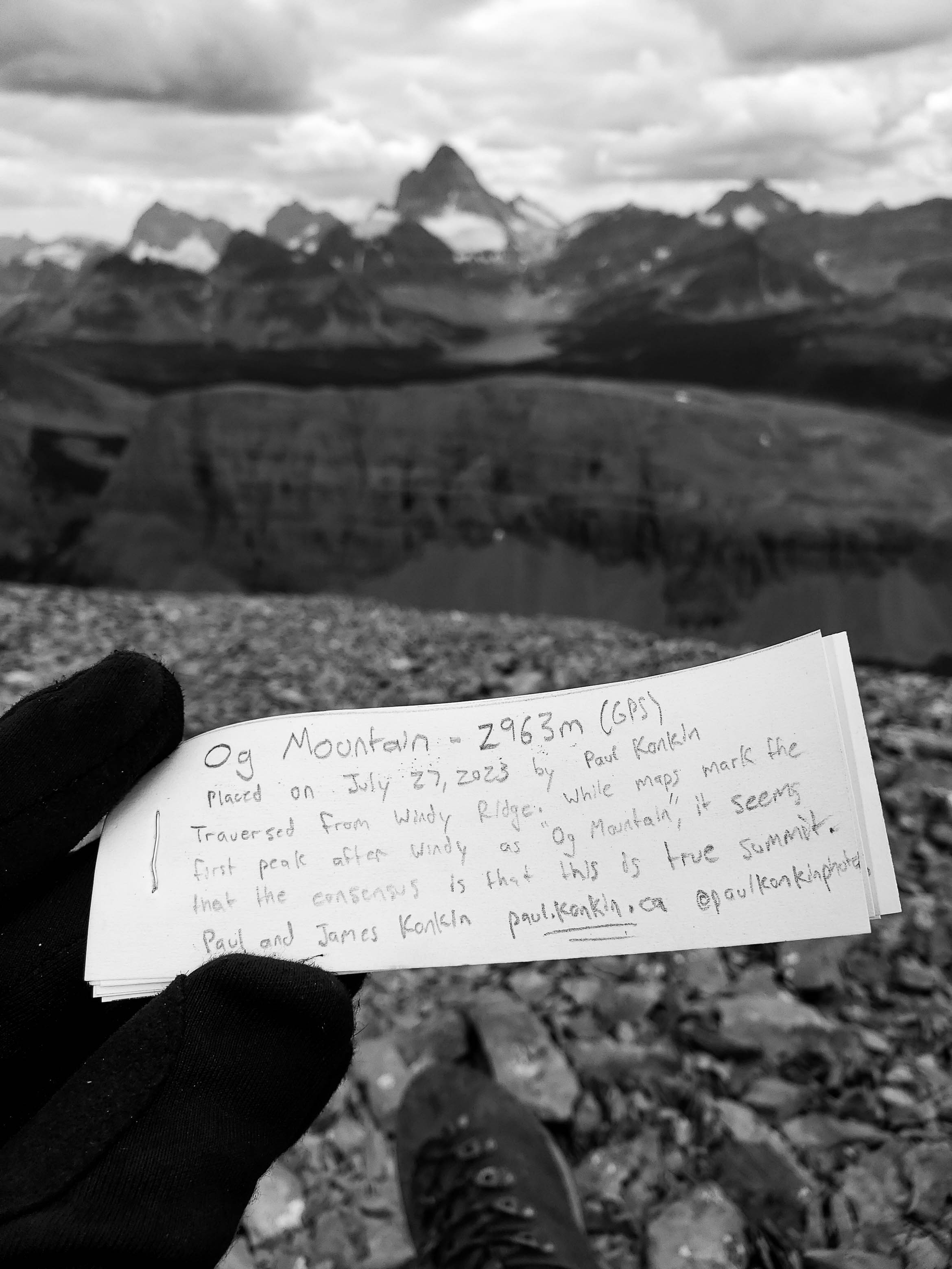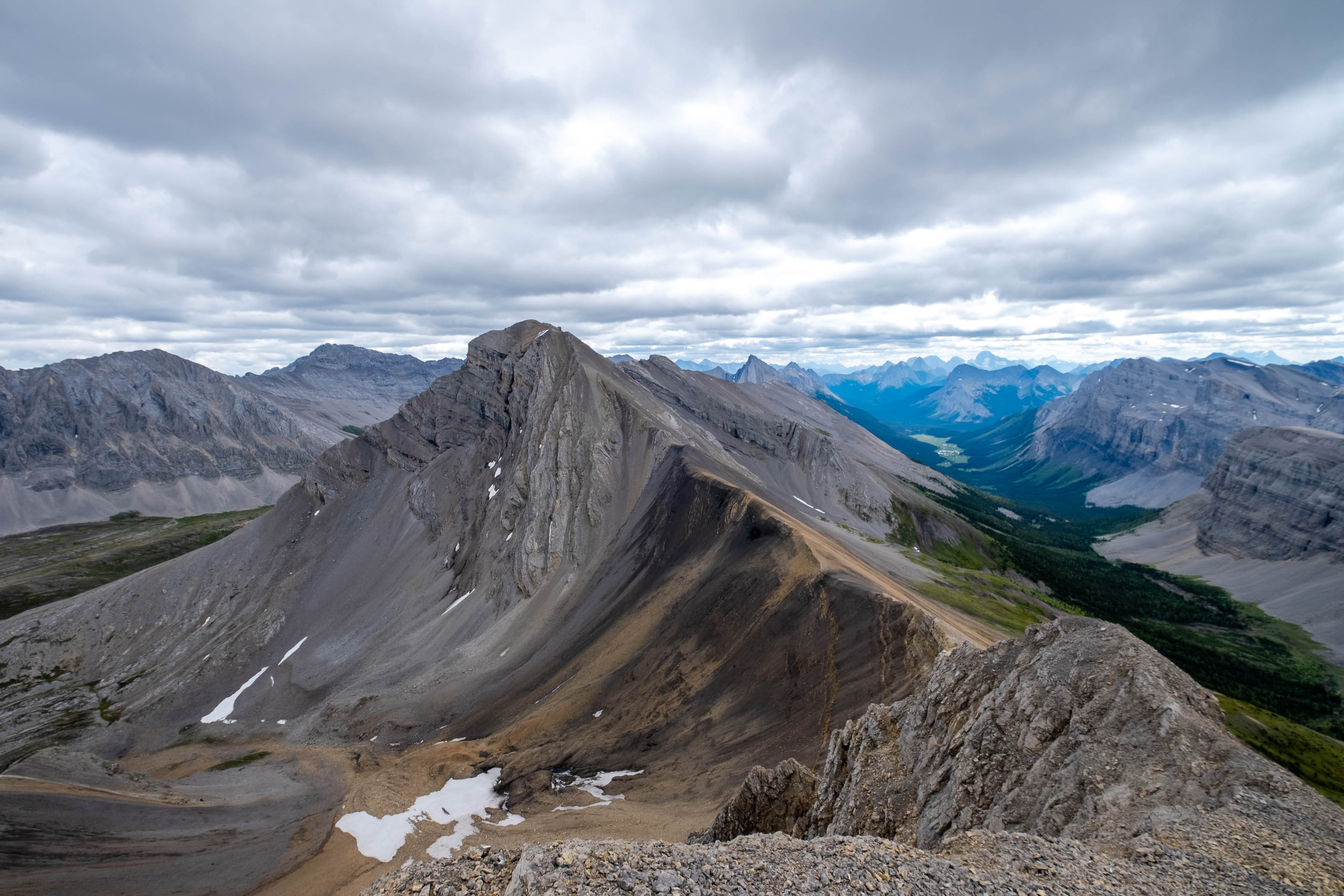 Unfortunately, a thick cloud cover had blown in as the day went on, making us wonder where the perfectly clear skies we'd had just a few hours earlier had gone. Even so, views down to Allenby Pass, 500 vertical meters directly below us, were absolutely incredible and there was no way I could even think about complaining, being two days in to a smoke-free trip that was forecast to be a complete smoke show! As expected, my GPS read 2963 m, about 100 m higher than the fourth summit. I placed a tiny film canister register in the small summit cairn, marking this as Og's True Summit, and somehow managed to waste away an entire hour before we were starting back down the ridge. I didn't mind though. We still had plenty of time left in the day and it was nice to enjoy the area at a more relaxed pace after rushing around like a mad man the previous evening!
