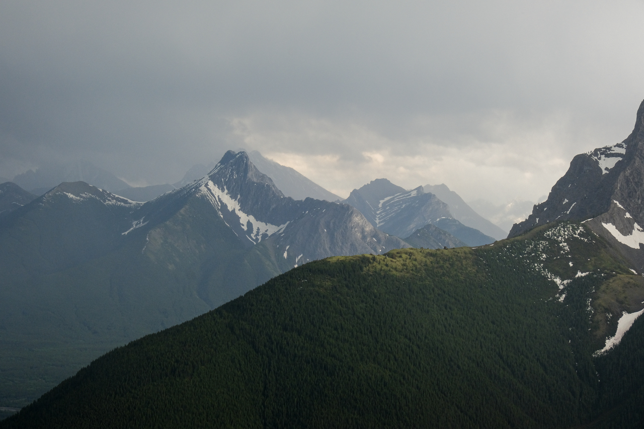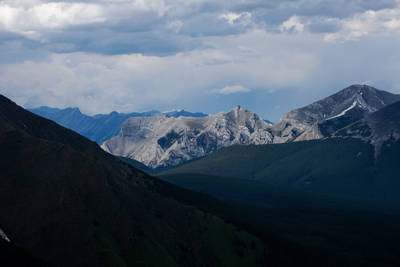 Crazy dark skies, looking across to Wasootch Peak, Kananaskis Peak, and Old Baldy!
