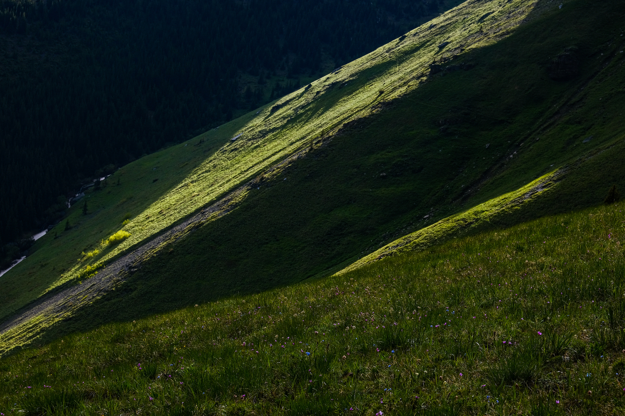 I absolutely loved the sunlight illuminating sections of the grassy slopes!