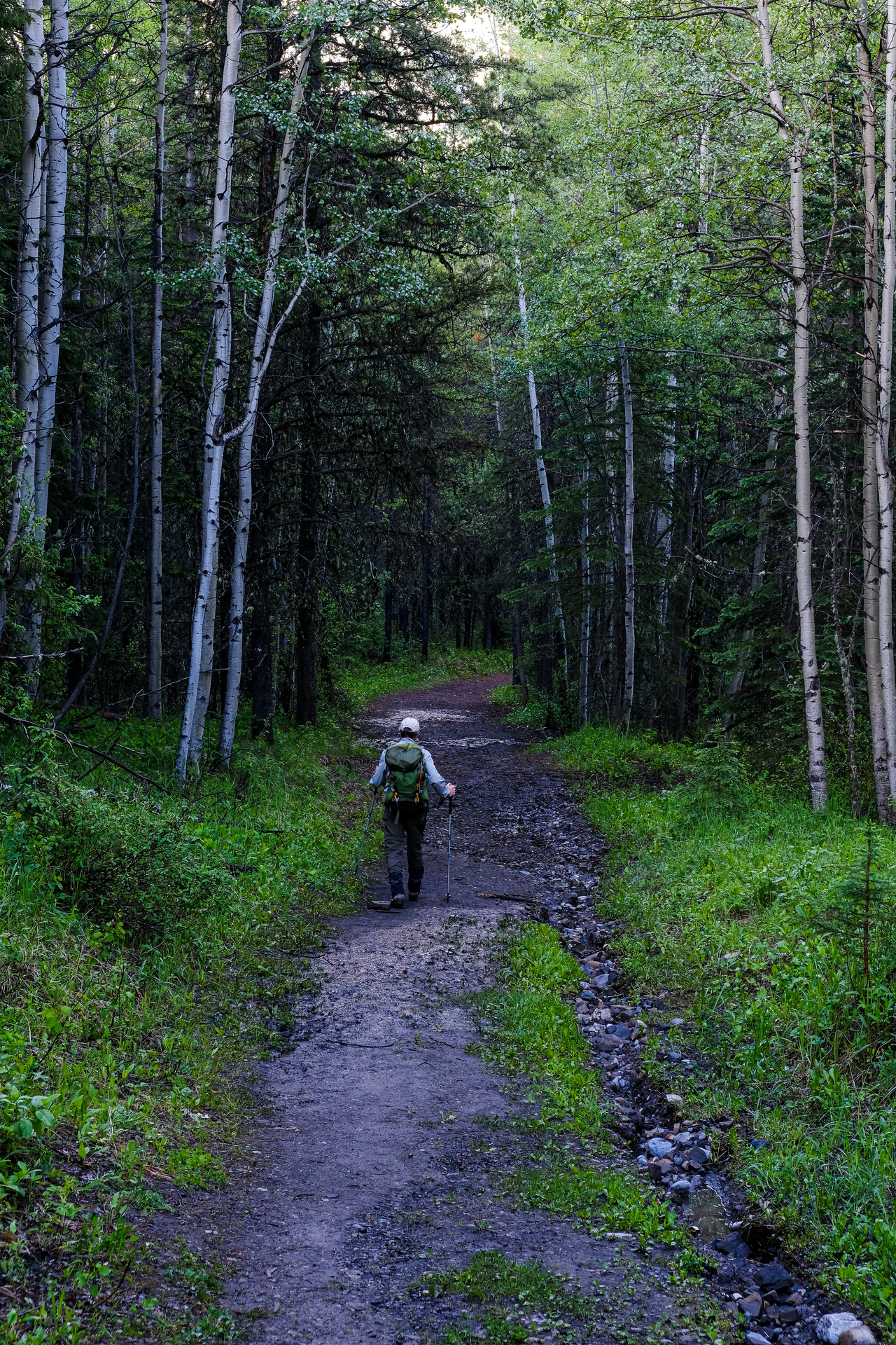 We soon reached the forest, and simply continued down the Centennial Trail all the way to the Ribbon Creek parking lot, where my mom was conveniently waiting for us with our car :)! What a productive day! Hit three summits, walked from Canmore (Deadman's Flats) to Kananaskis, and survived four storms along the way ;)! It was great to finally do this traverse, and I would definitely recommend it if you have a ride...(Walking all the way back to Deadman's Flats would leave you feeling like quite a "dead man"!) Just know that Collembola isn't just a hike like the rest of the traverse 😂!