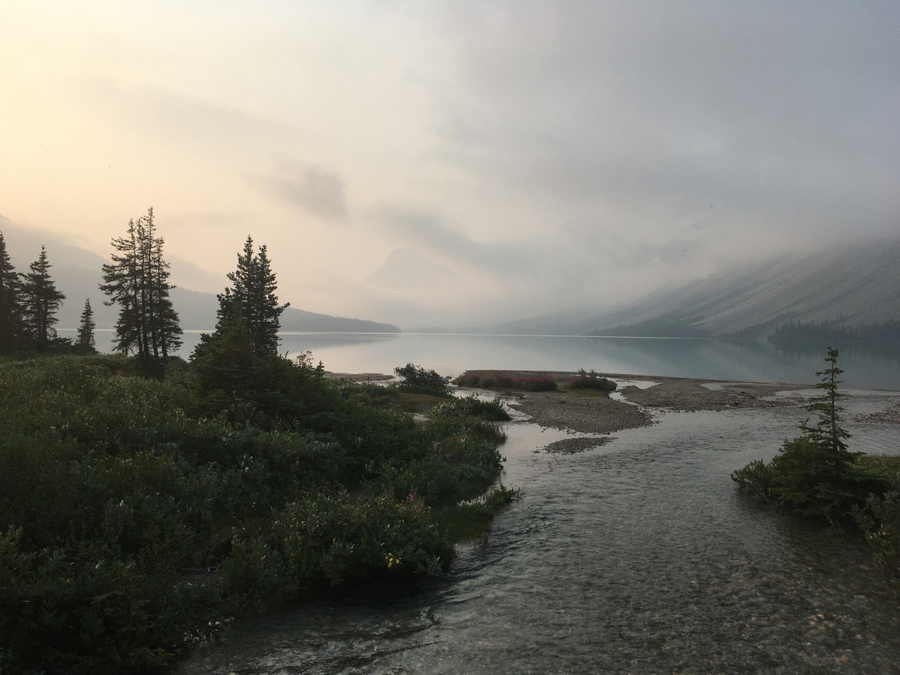 Our objective (The Onion) sees its reflection in Bow Lake!
