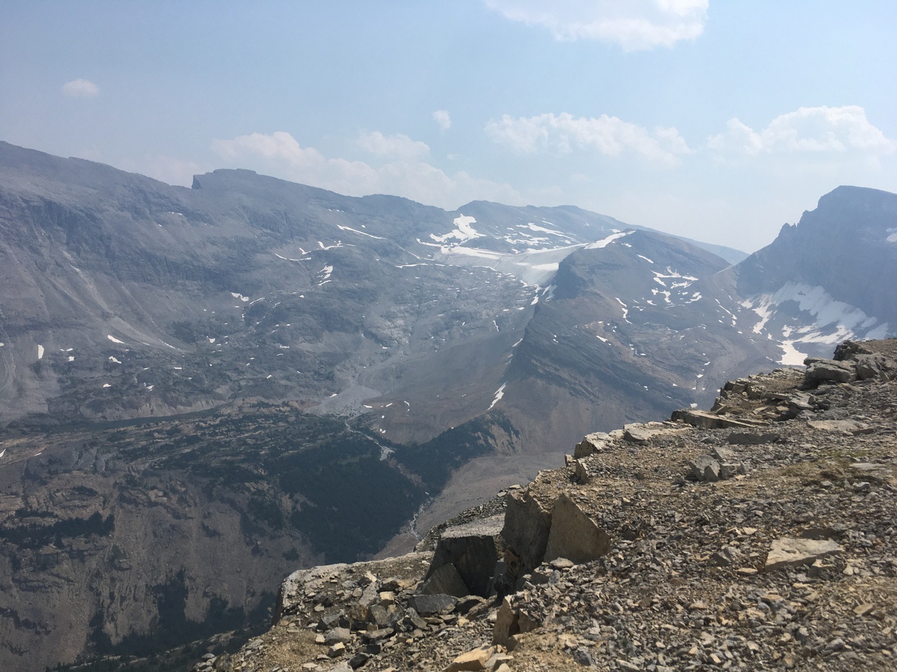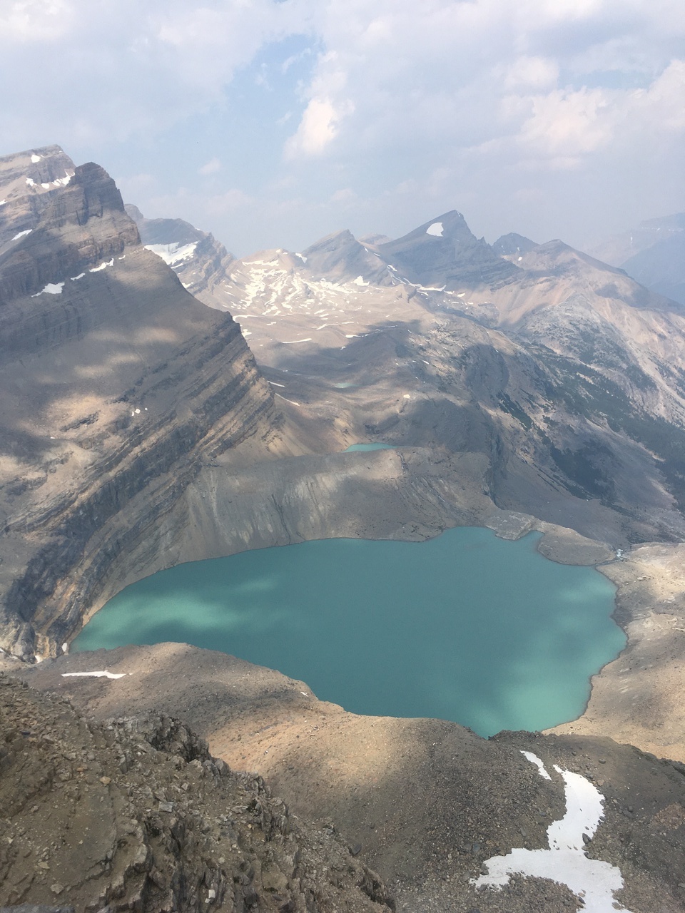 Looking directly down to Iceberg Lake with Mount Jimmy Simpson and Jimmy Jr. to the right!