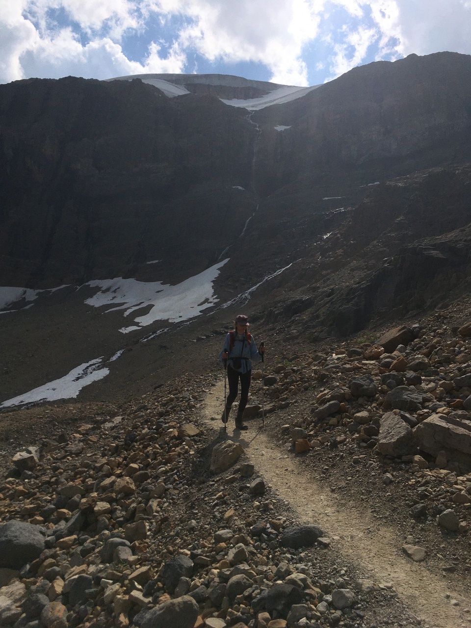 Heading down the trail that leads down the valley, after descending from Bow Hut!