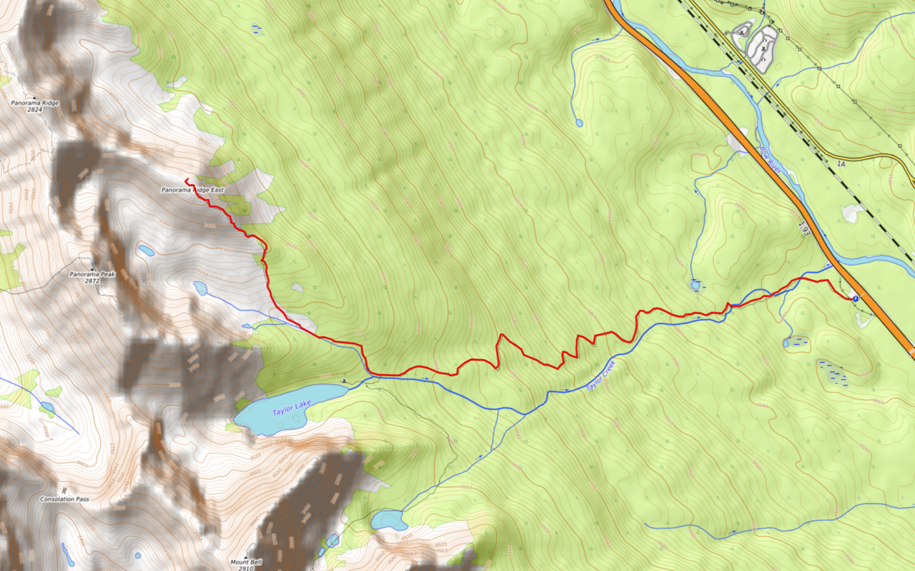 A rare view along the Taylor Lake trail! I thought the Rockbound Lake trail, leading us up Helena Ridge East Peak was bad last week, but this really isn't any better!