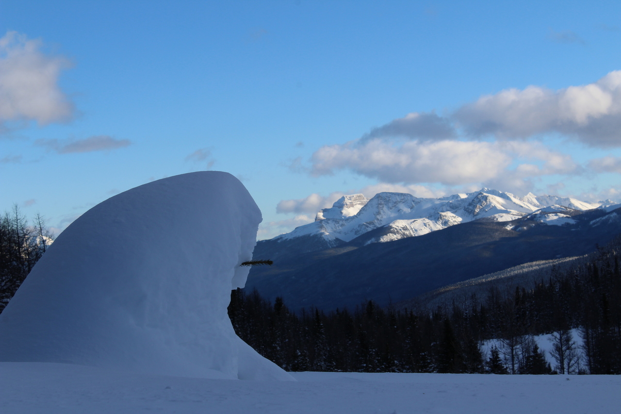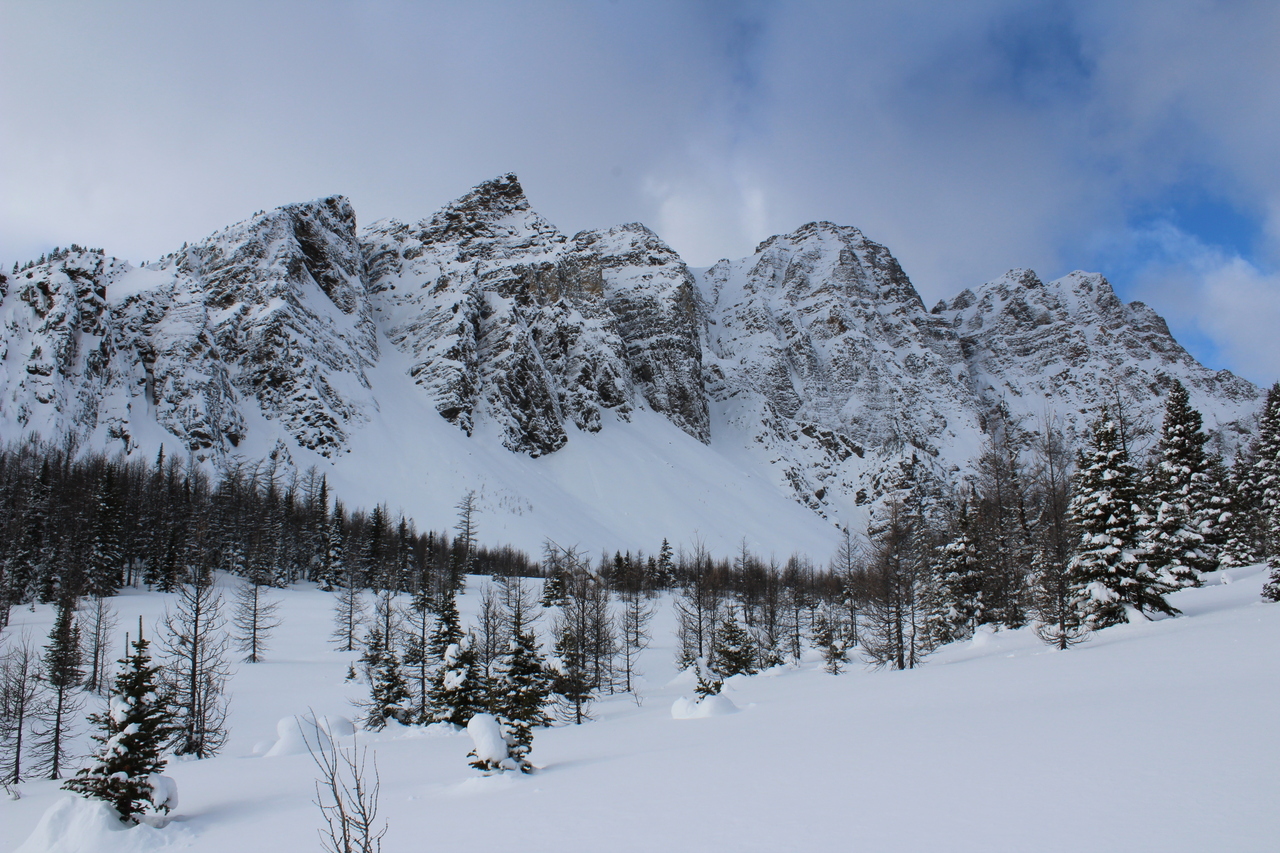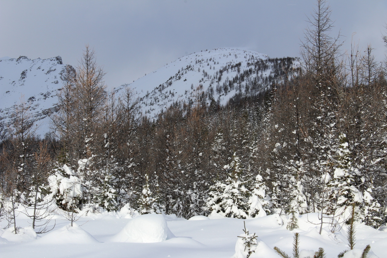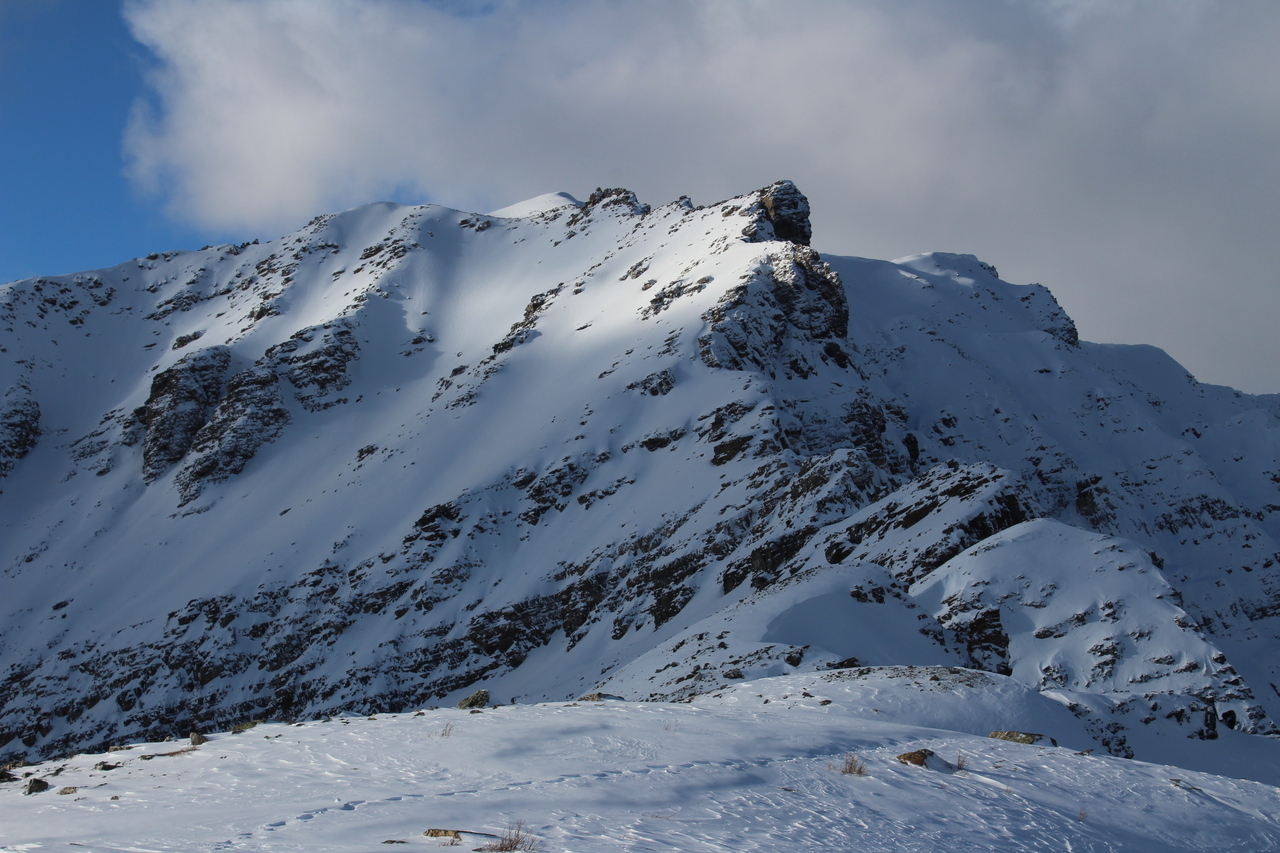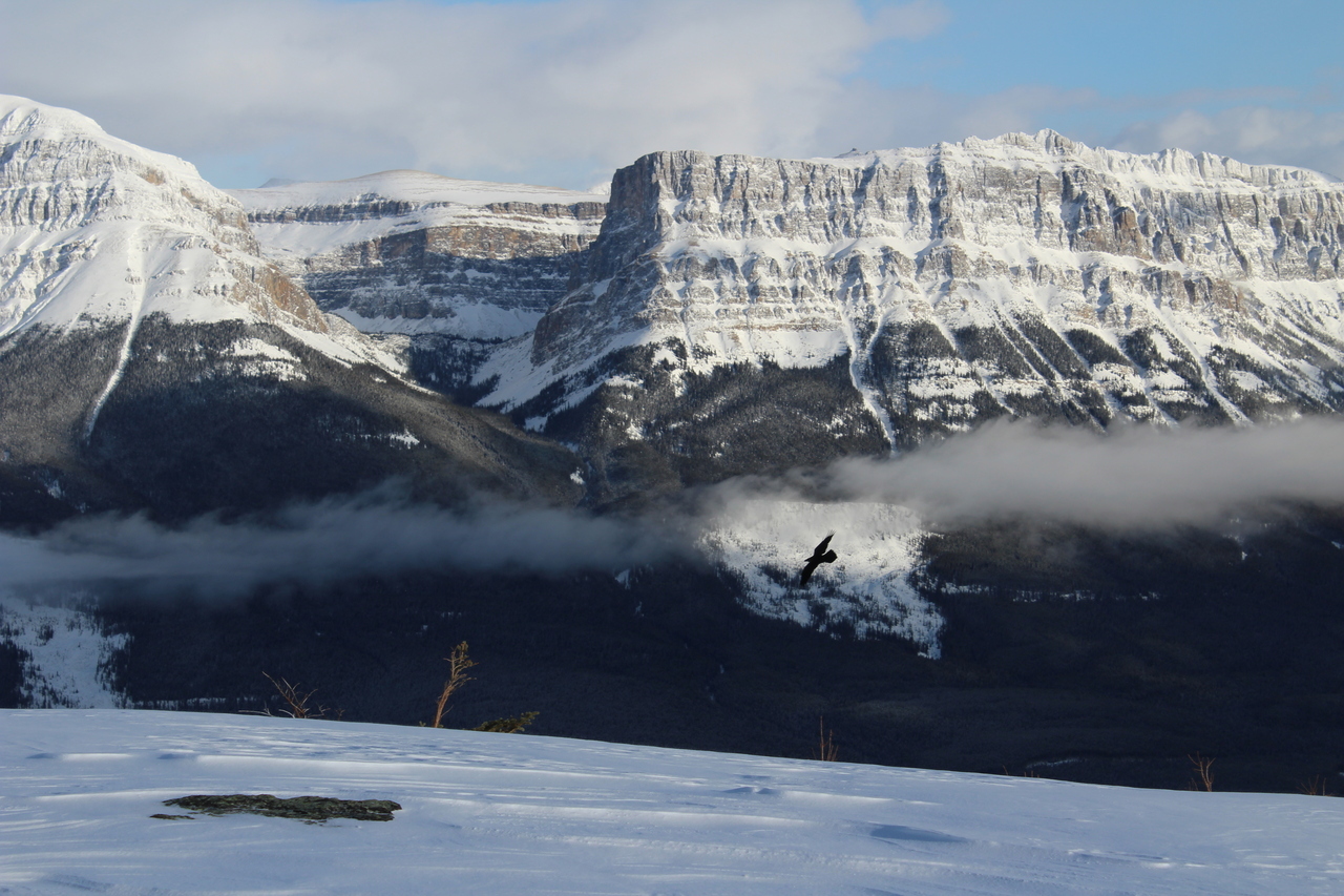 Mount Hector rises into the low cloud (far-right), above Hector South Peak and South Ridge (other possible snowshoe ascents), towards the north!