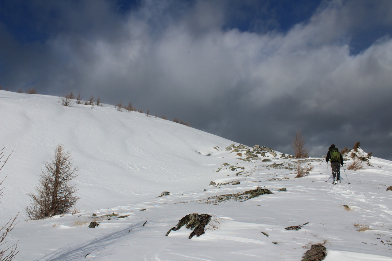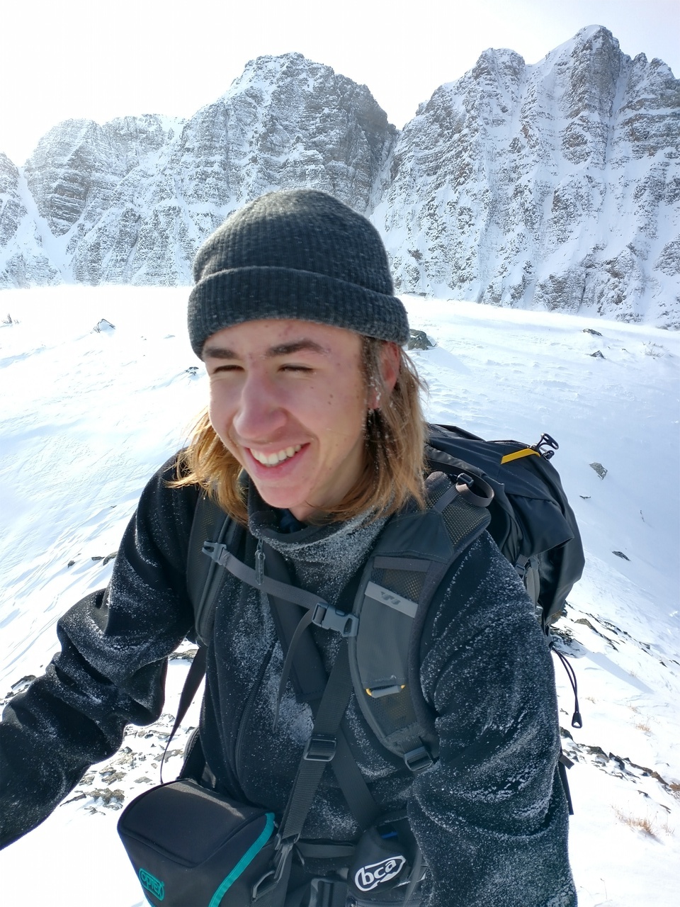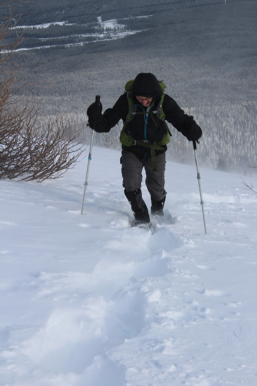 The wind picked up as we left the trees, and ascended the open slope leading to the summit!