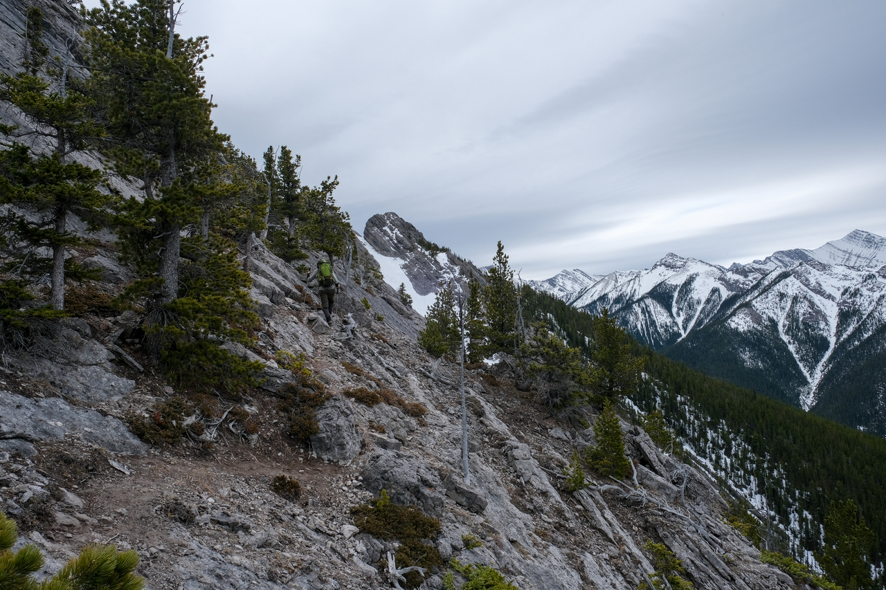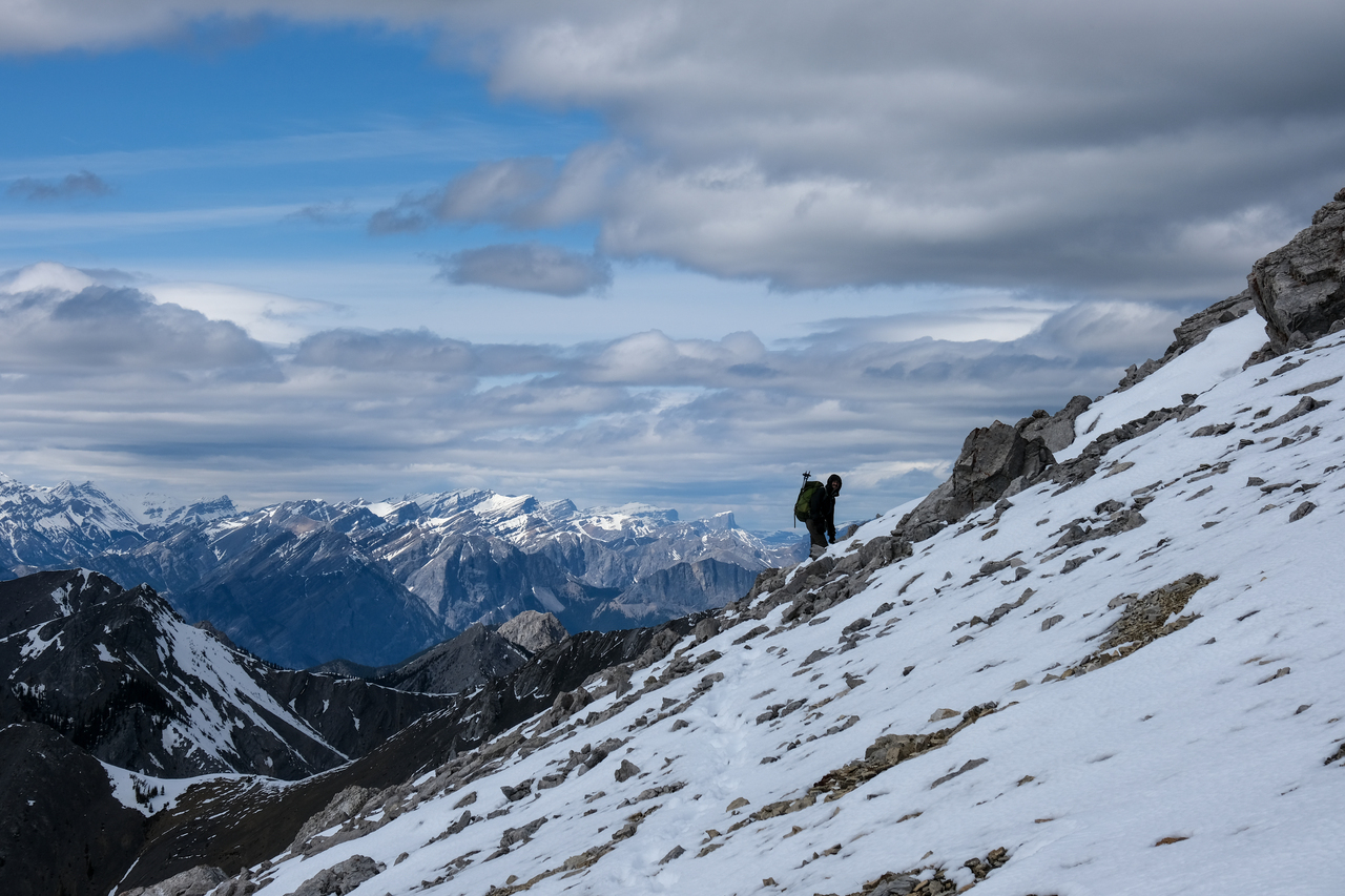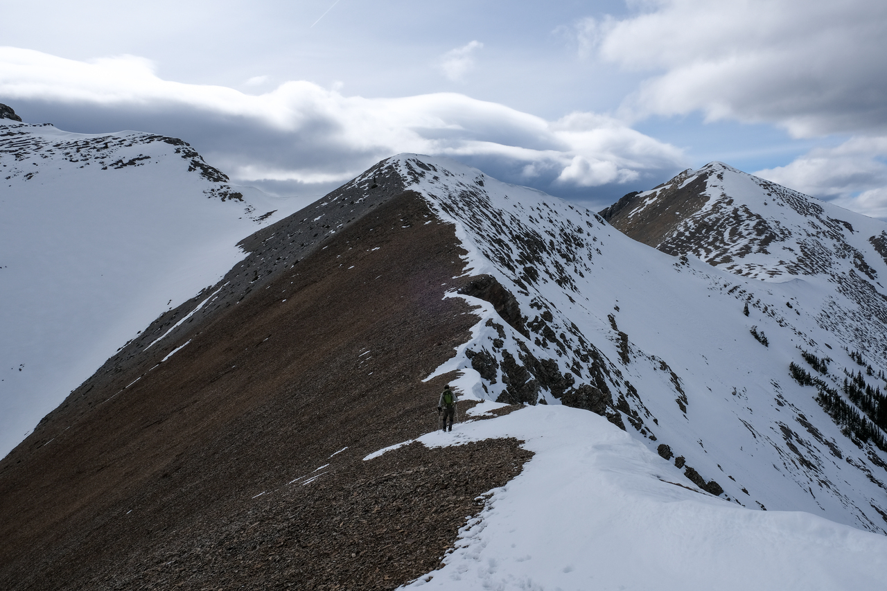 Side-hilling around the next highpoint in the ridge.