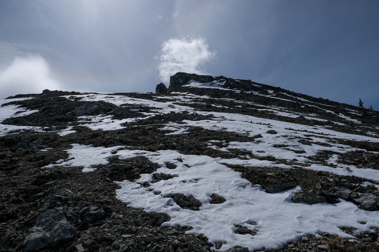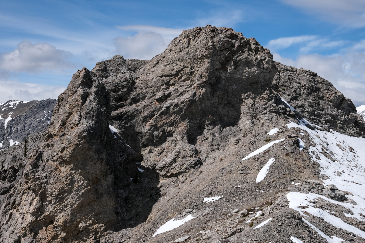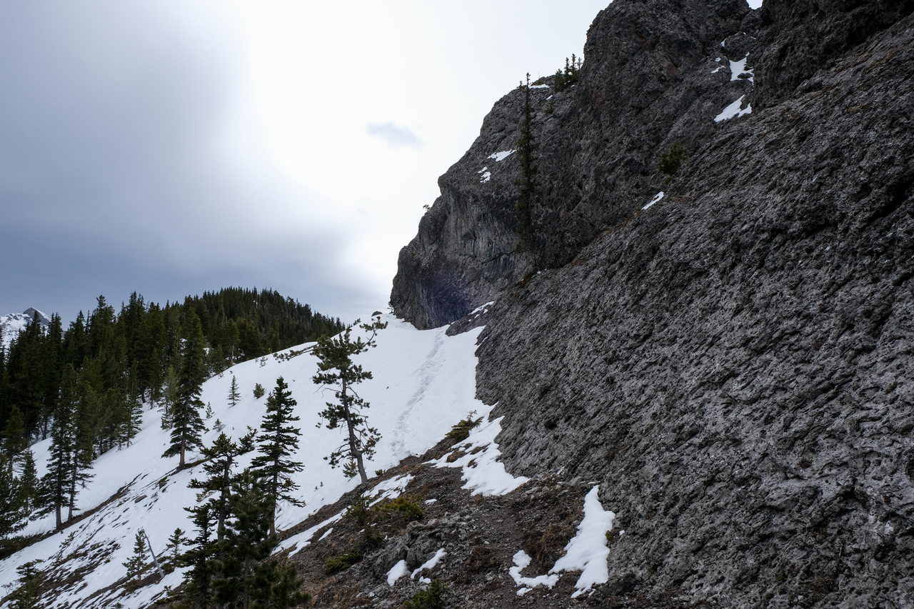 Ooh, funky! Eventually we joined with a wider, more major drainage (no more cool features :(), and simply followed it the long ~4.6km back to the highway, where we began our 20km loop. It may make for a long day, but with good weather, this loop is actually quite enjoyable, and makes for a great way to knock off multiple peaks in one go (8 in total if you are able to hit Tiara and then finish off with Midnight and Midday)! When most scramble routes are still covered with snow, this makes for a great early season objective...unless you want to bag Tiara that is...Oh well, I guess we'll just have to settle for 5 peaks instead of 6 ;)!