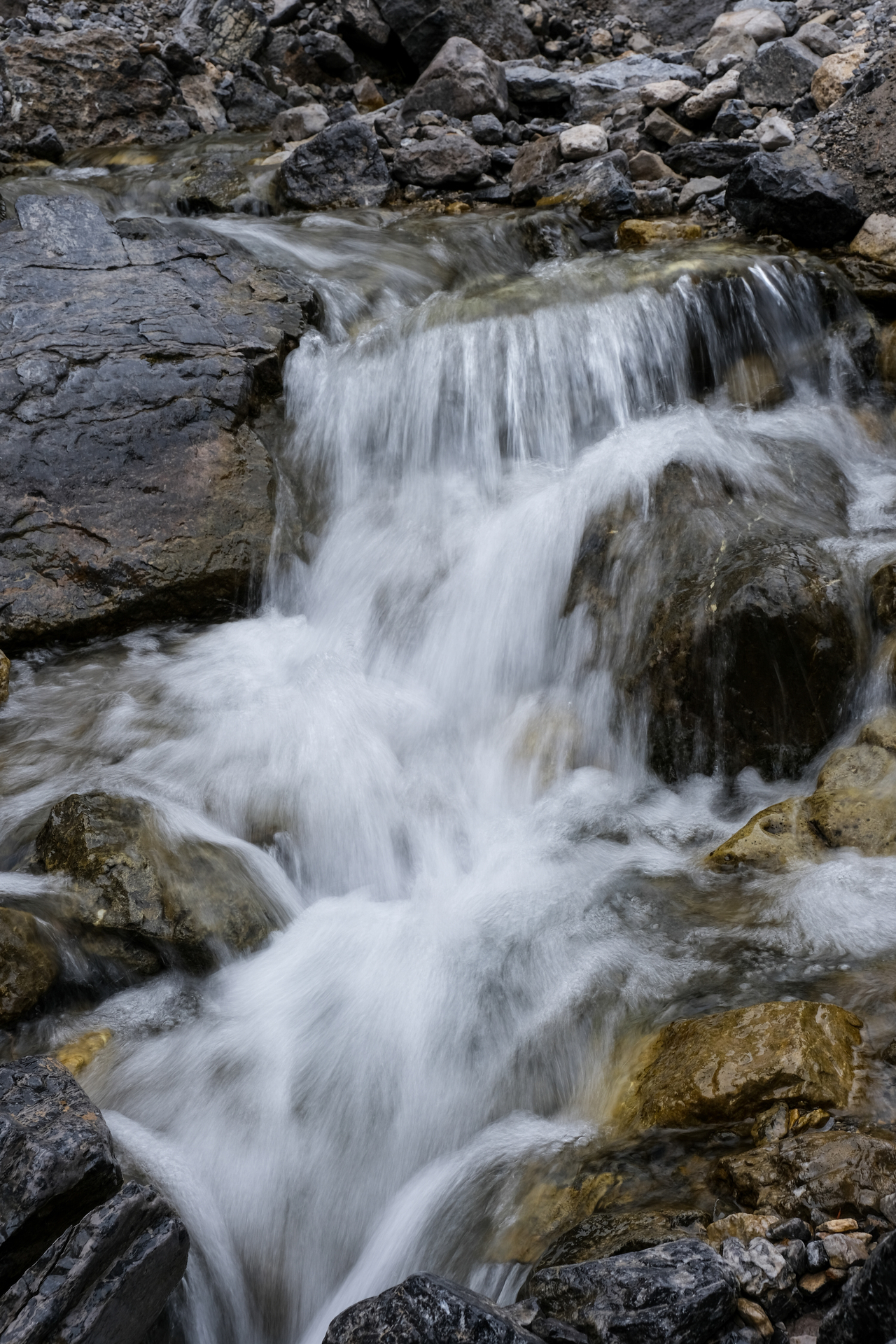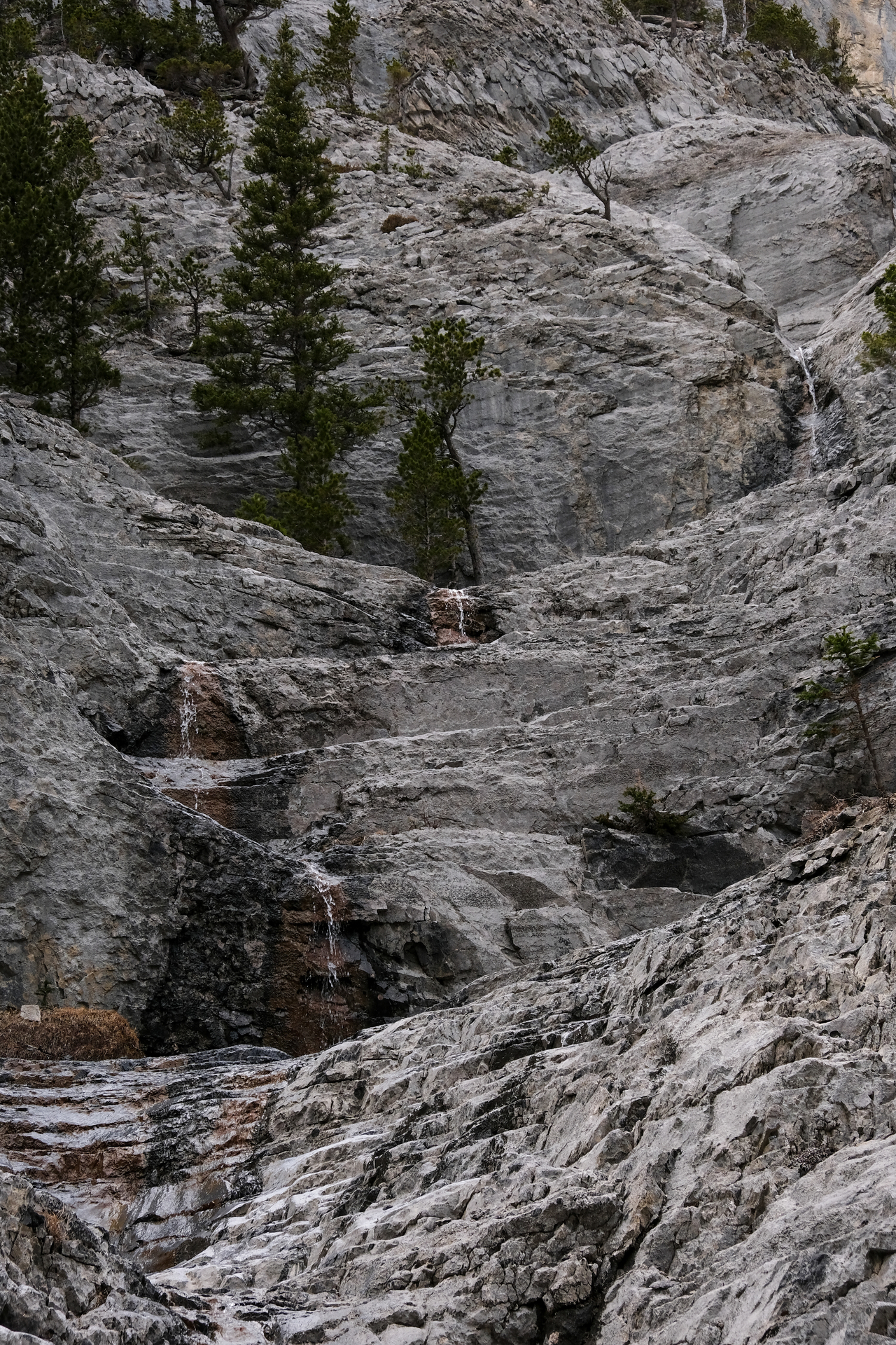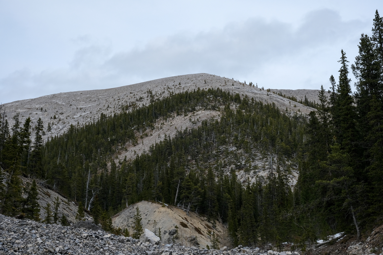 Ooh, funky! Eventually we joined with a wider, more major drainage (no more cool features :(), and simply followed it the long ~4.6km back to the highway, where we began our 20km loop. It may make for a long day, but with good weather, this loop is actually quite enjoyable, and makes for a great way to knock off multiple peaks in one go (8 in total if you are able to hit Tiara and then finish off with Midnight and Midday)! When most scramble routes are still covered with snow, this makes for a great early season objective...unless you want to bag Tiara that is...Oh well, I guess we'll just have to settle for 5 peaks instead of 6 ;)!