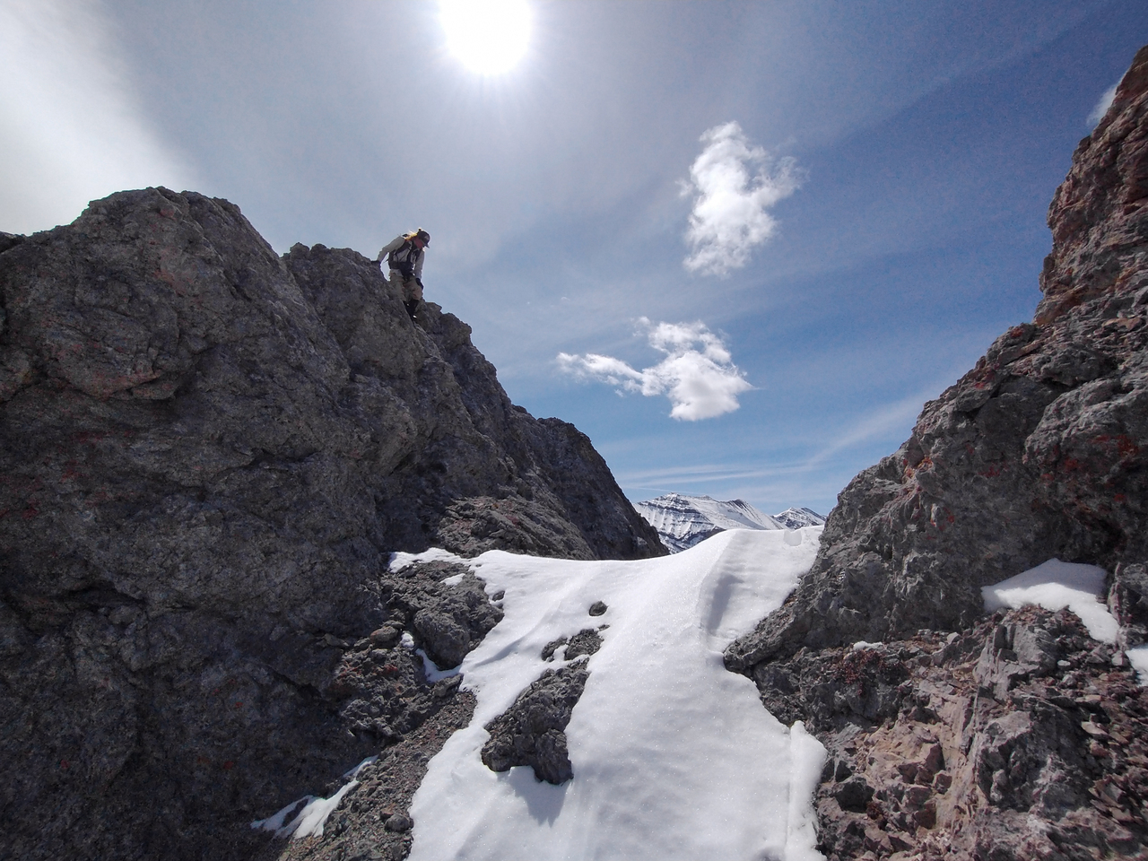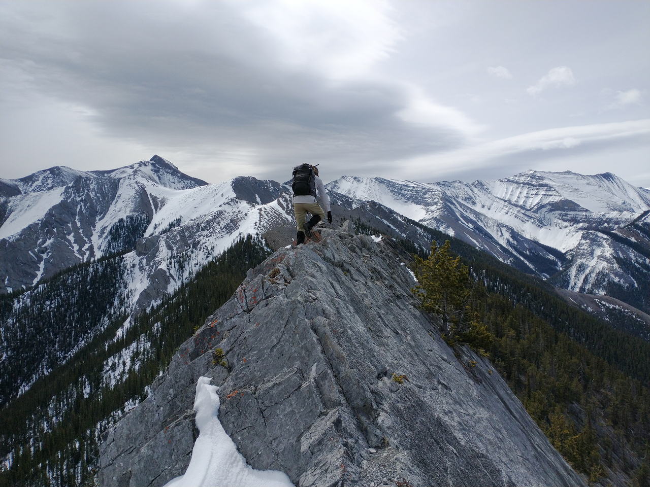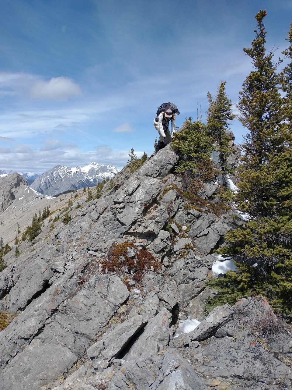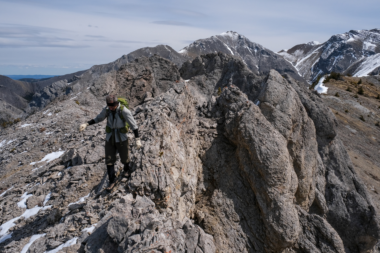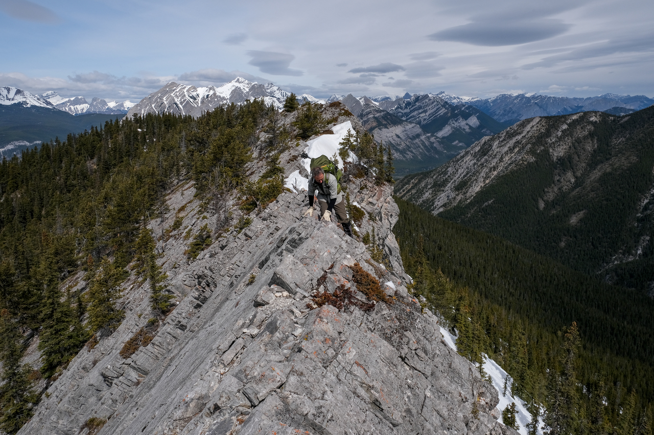 Some welcome excitement was added to our day, as the ridge narrowed significantly, immediately after leaving the summit of Porcupine Ridge! Photo credit: Dad