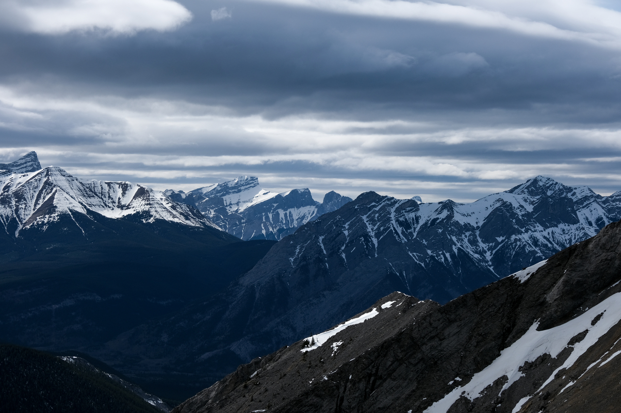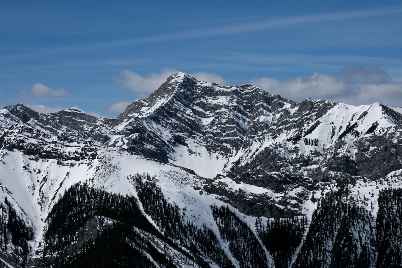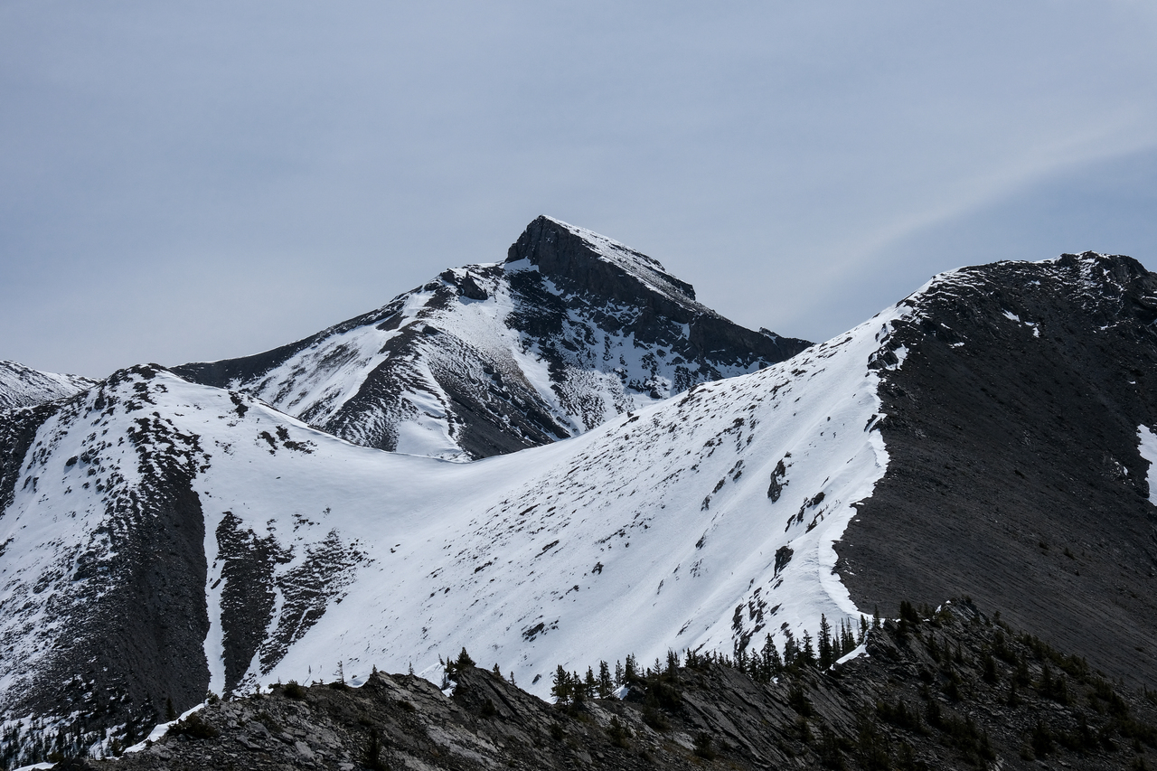 Mount Lougheed's four distinct summits poke out over Mount Allan.