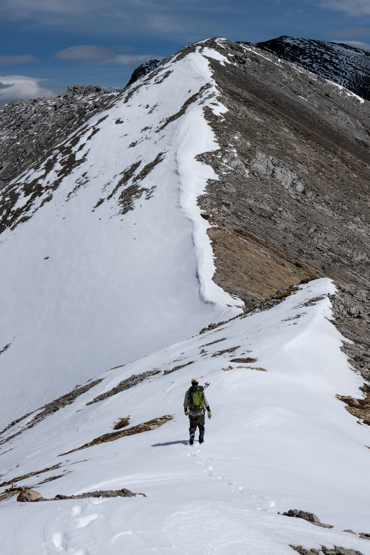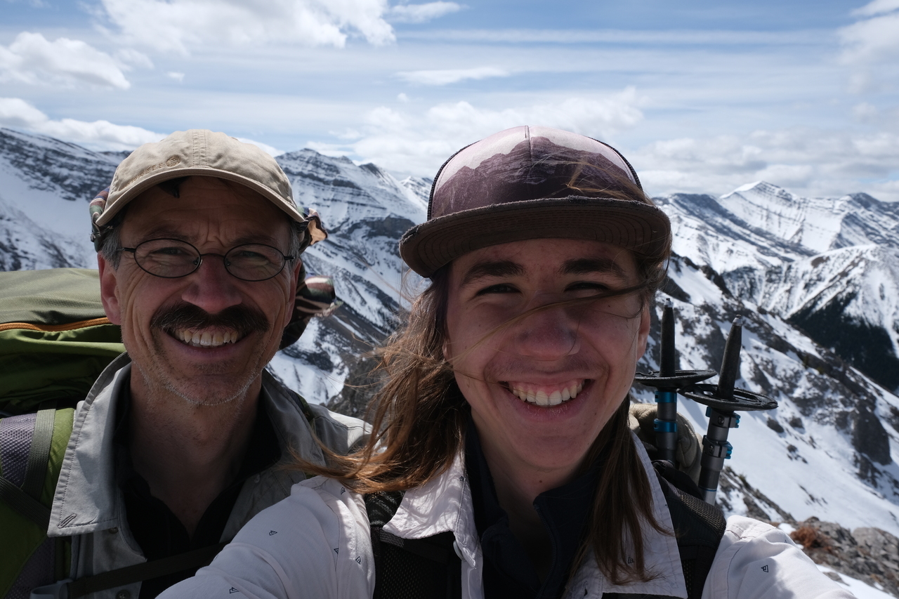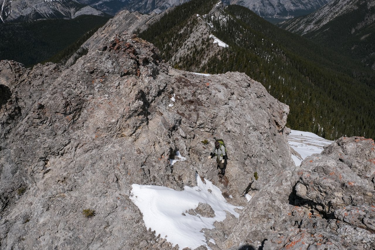 Looking back to my dad, following me down the exposed ridge.