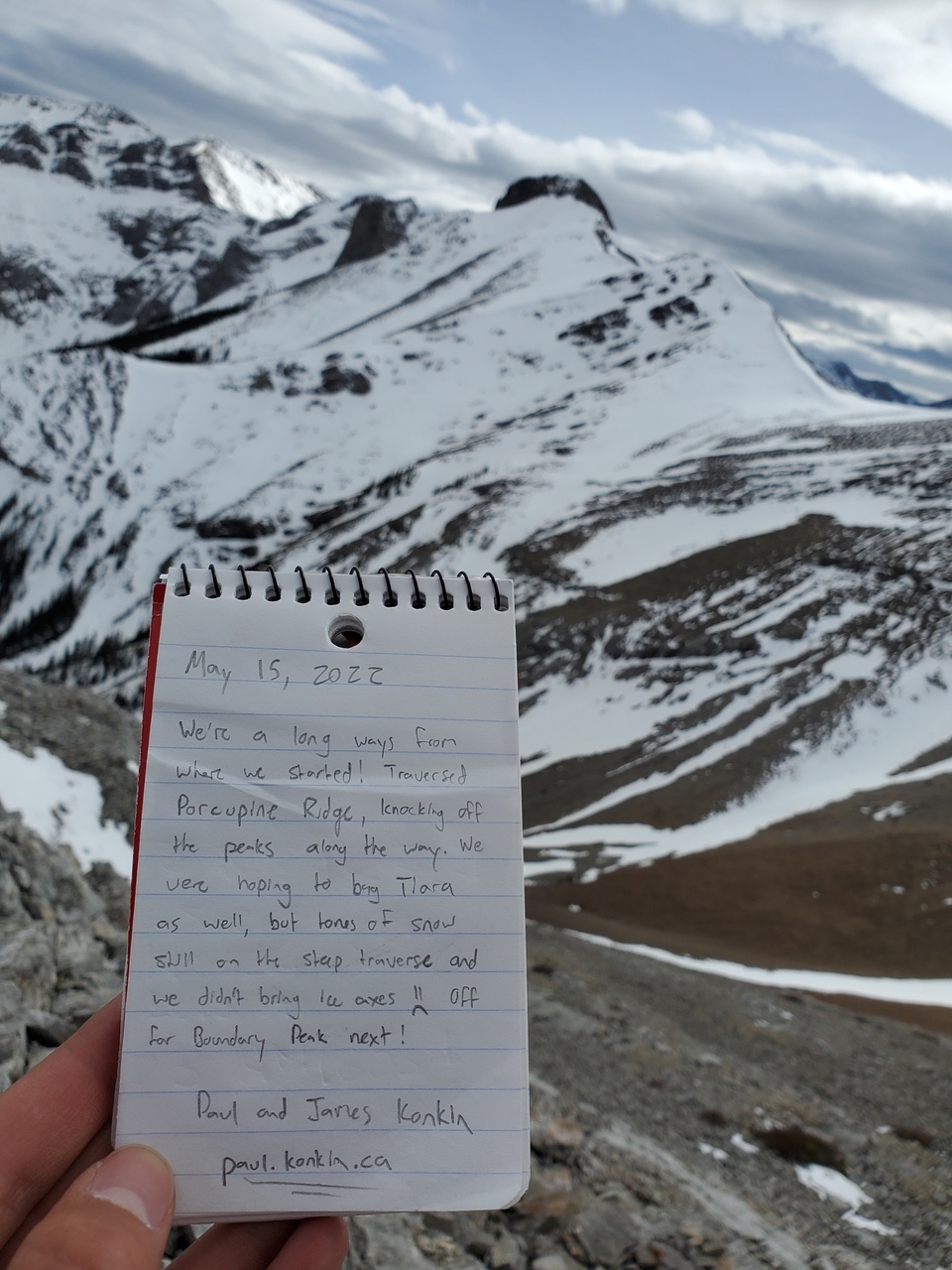 Once back on the ridge, it was just a short hike to the summit of our first objective, Porcupine Ridge!