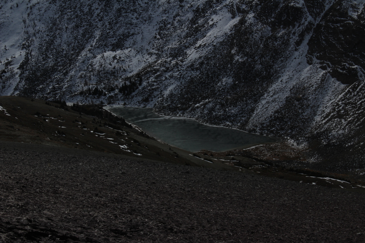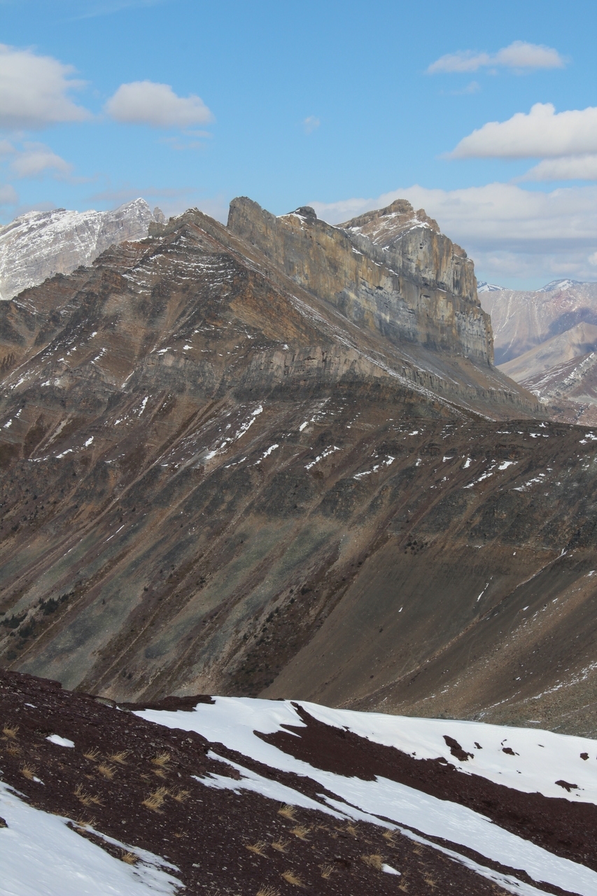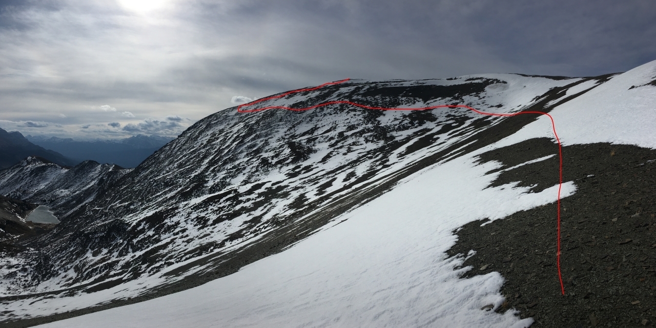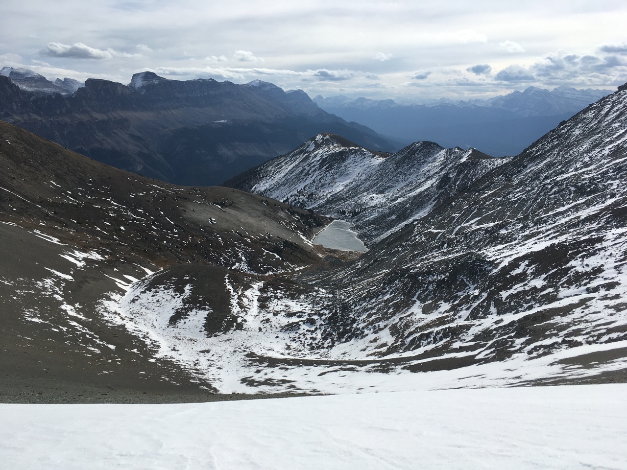 After looking for (and finding) the lake, down Lipalian's south-east ridge, we decided to side-hill directly towards the col between Lipalian and Purple Mound. This avoided having to climb back up Lipalian, only to follow the ridge back down anyways.
