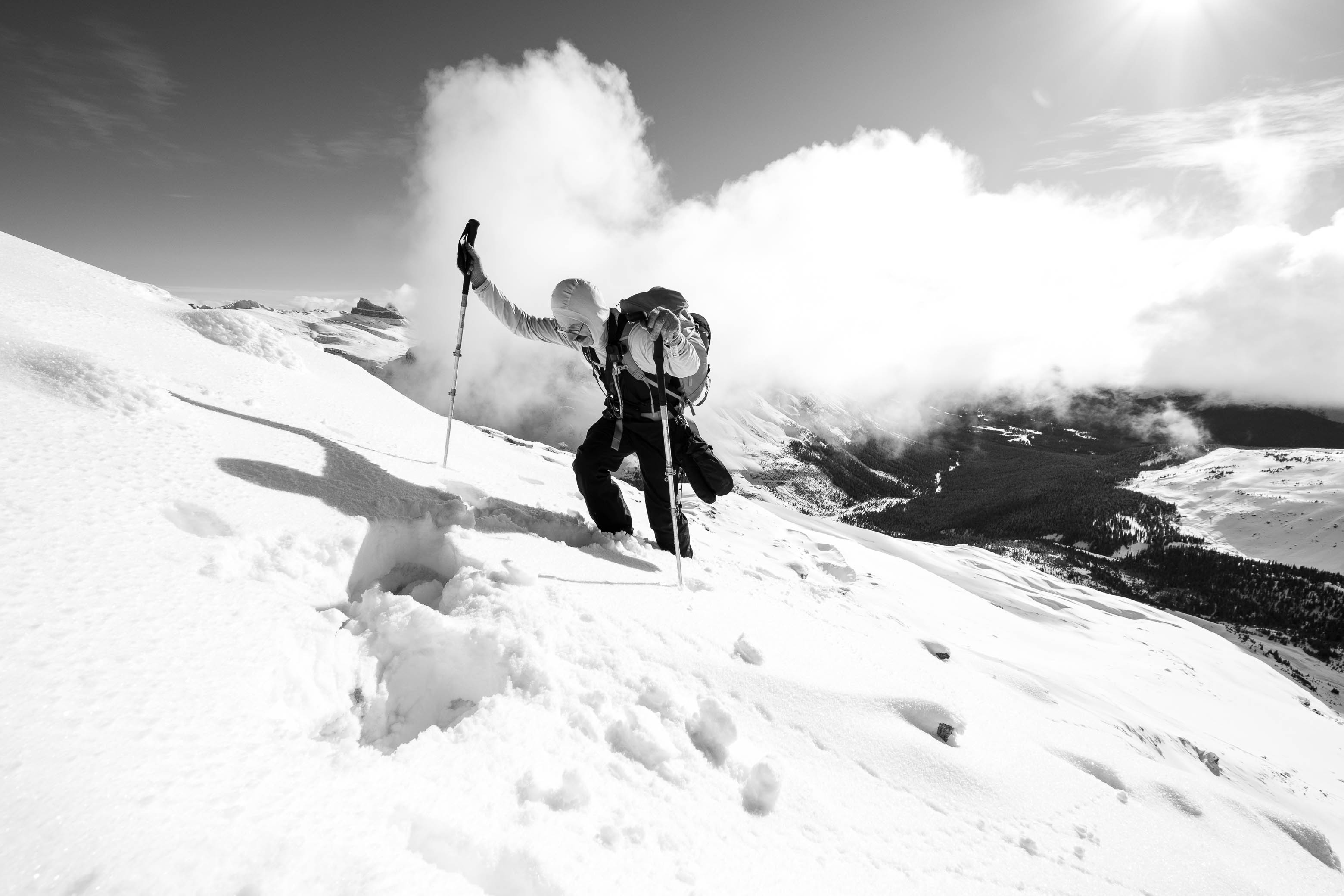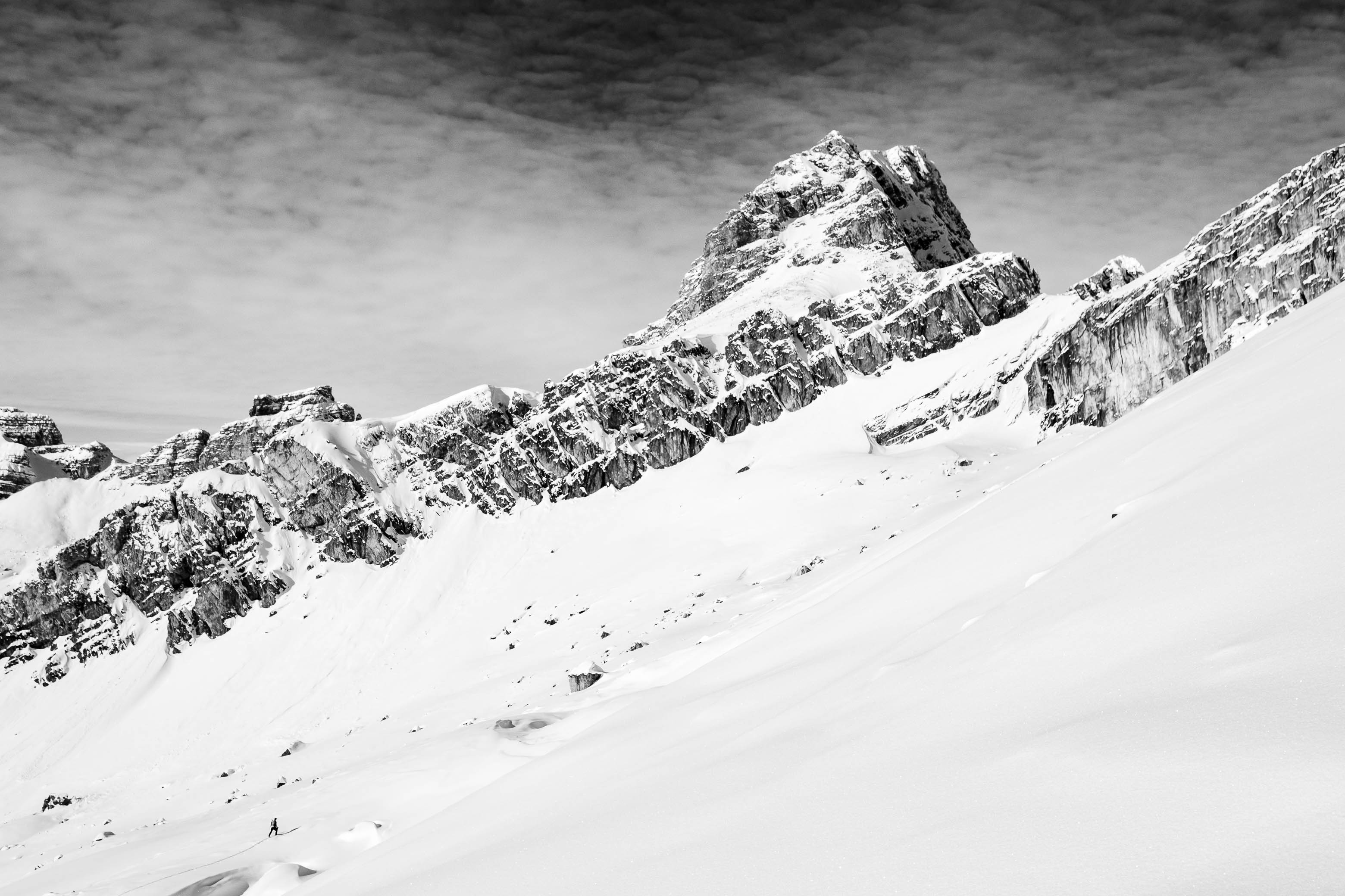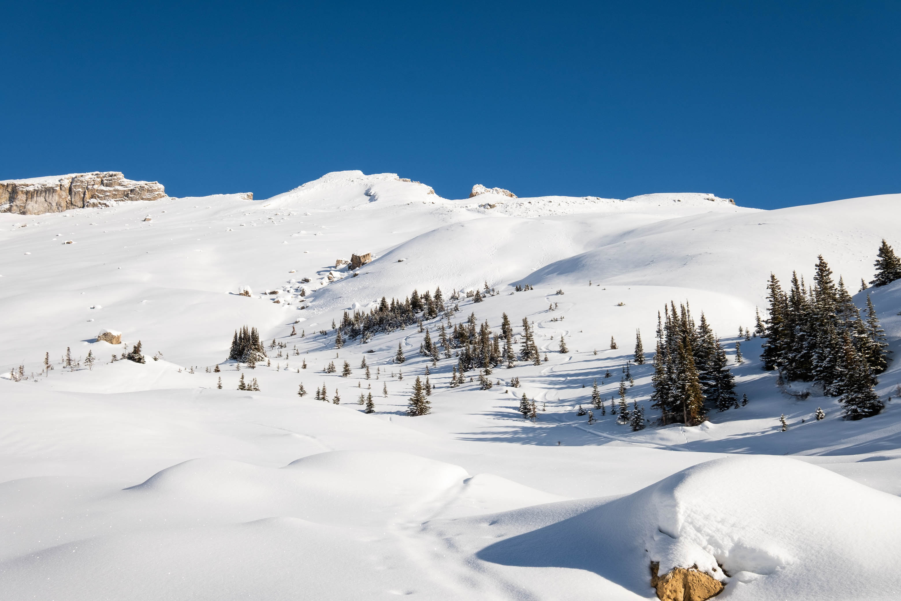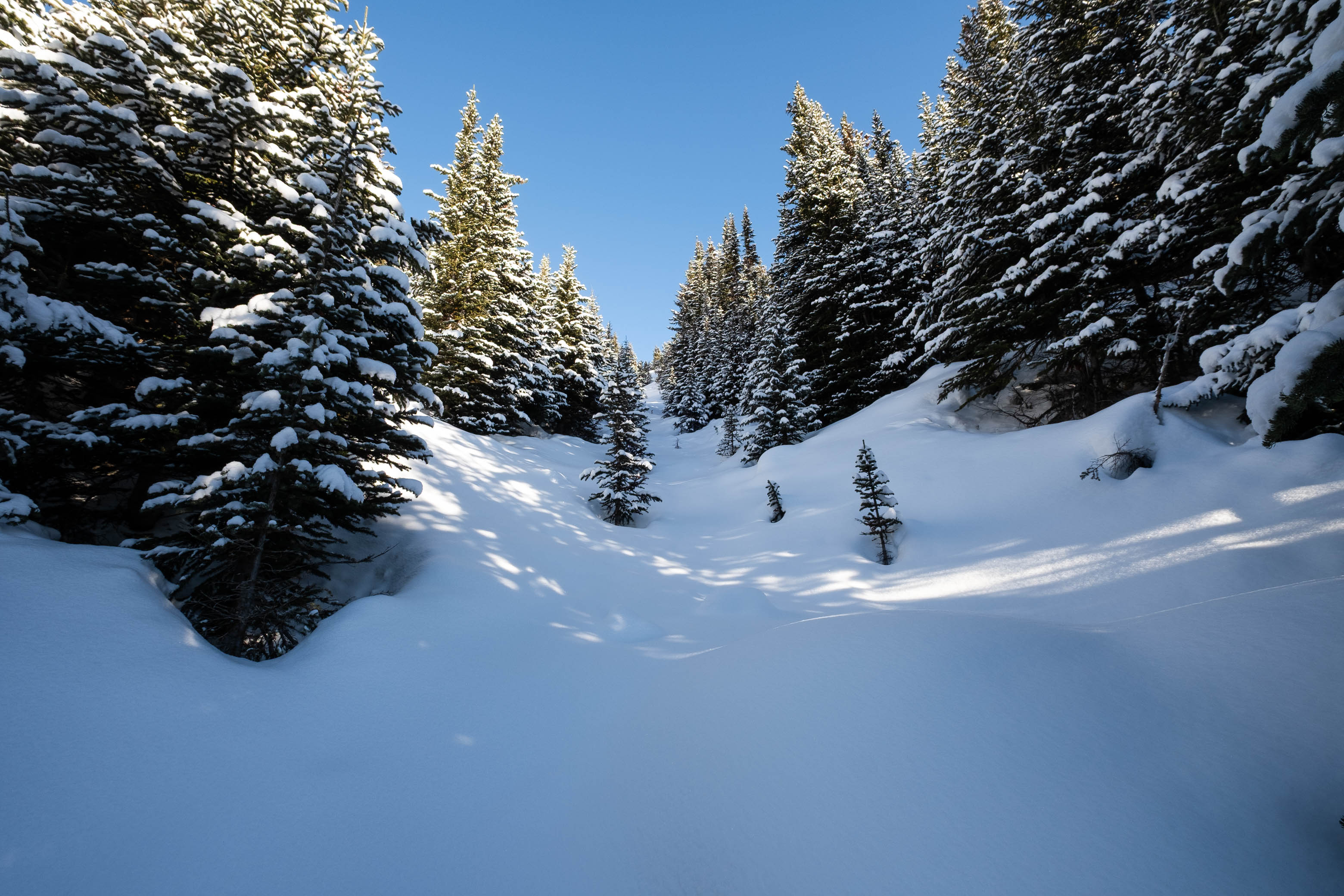 Luckily we had a fresh skin track paving the way for us (probably no more than a day or two old) and made short work of the initial "steep" section, before the slope flattened out and we continued around the base of Dolomite Shoulder's steep SE slopes. Depending on where you round the shoulder you might (like us) find yourself at the edge of a steeply walled drainage, but don't trouble yourself with crossing it! Instead, backtrack along the edge of the drainage towards Dolomite Shoulder, where it becomes much less "aggressive" and easier to cross.