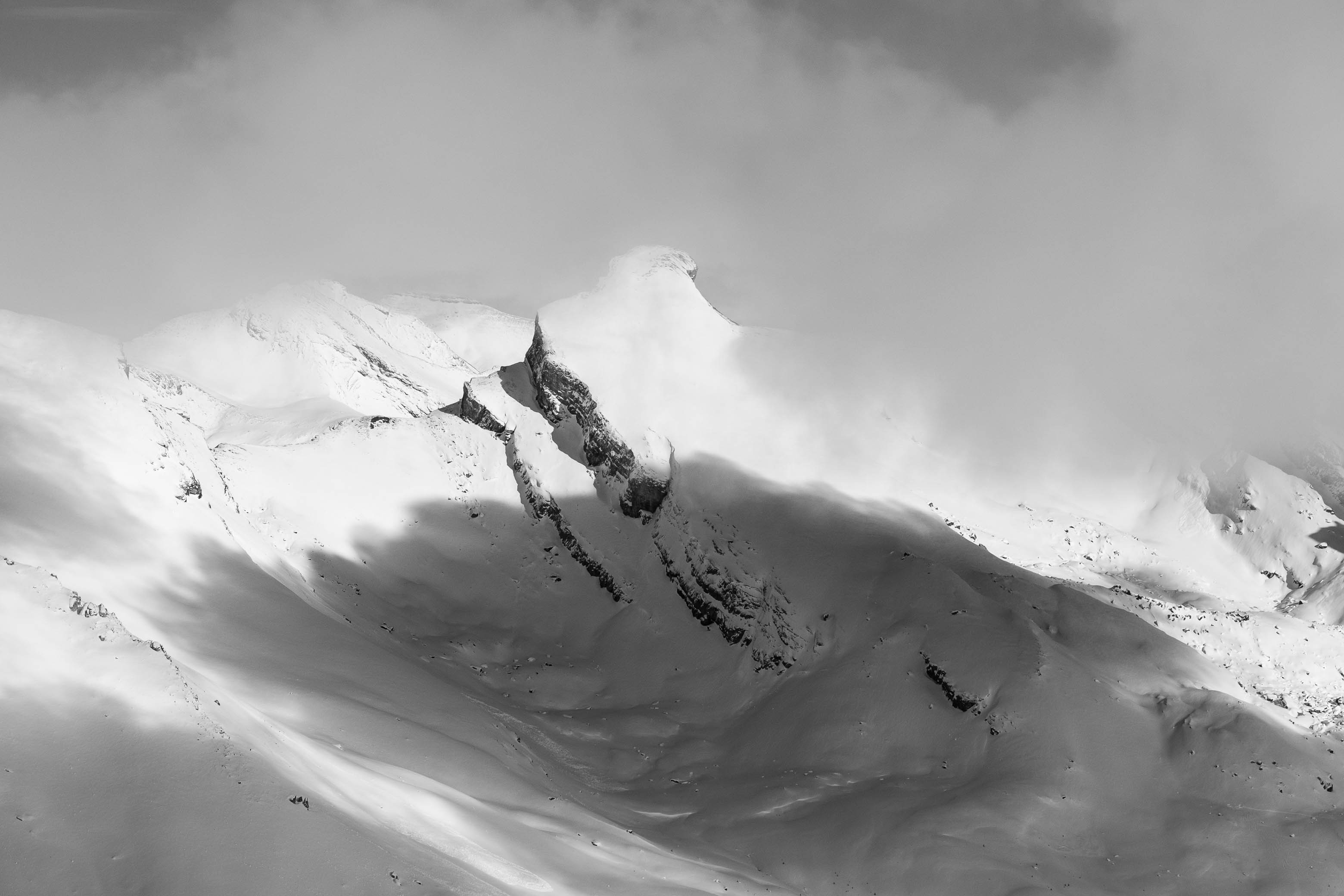 The final few meters to the summit were the worst, with my leg unexpectedly "disappearing" into the mountain multiple times as the scree transitioned to larger "boulders" and I inadvertently stepped into the big, hidden gaps that were lurking under a thin layer of snow. But in a few short moments this would all be forgotten, and we topped out on the summit to absolutely stunning views in all directions, with an impressive geological display up the connecting ridge to OXO Peak (its impressive NE face dropping an airy 700 m directly to the valley bottom!), beautiful wintery views towards 11,000ers like Willingdon and Crown down the remote valleys to the north, and incredible cotton candy clouds appearing out of nowhere and putting on quite the show back to the south! All this and more with not a breath of wind!