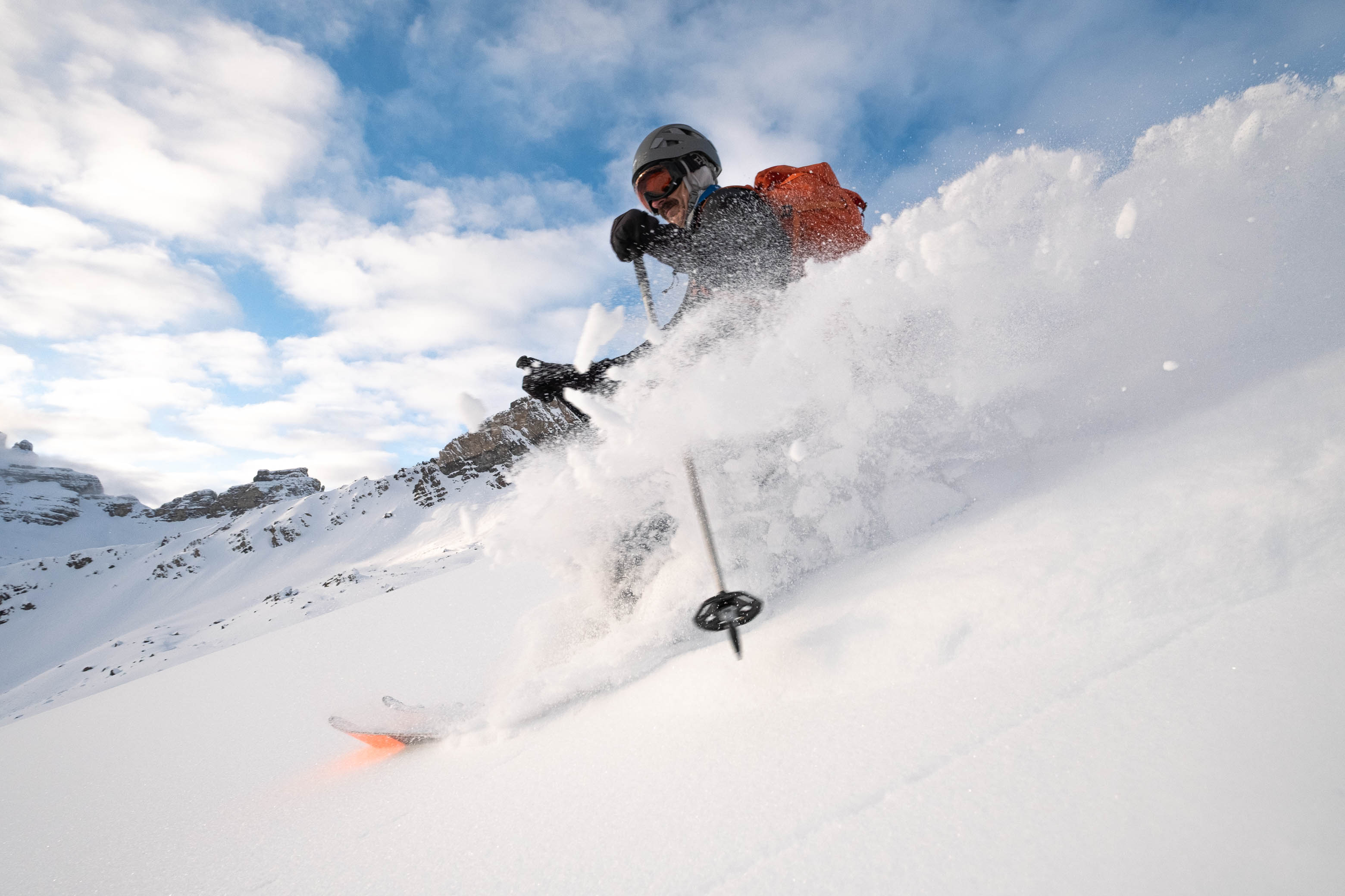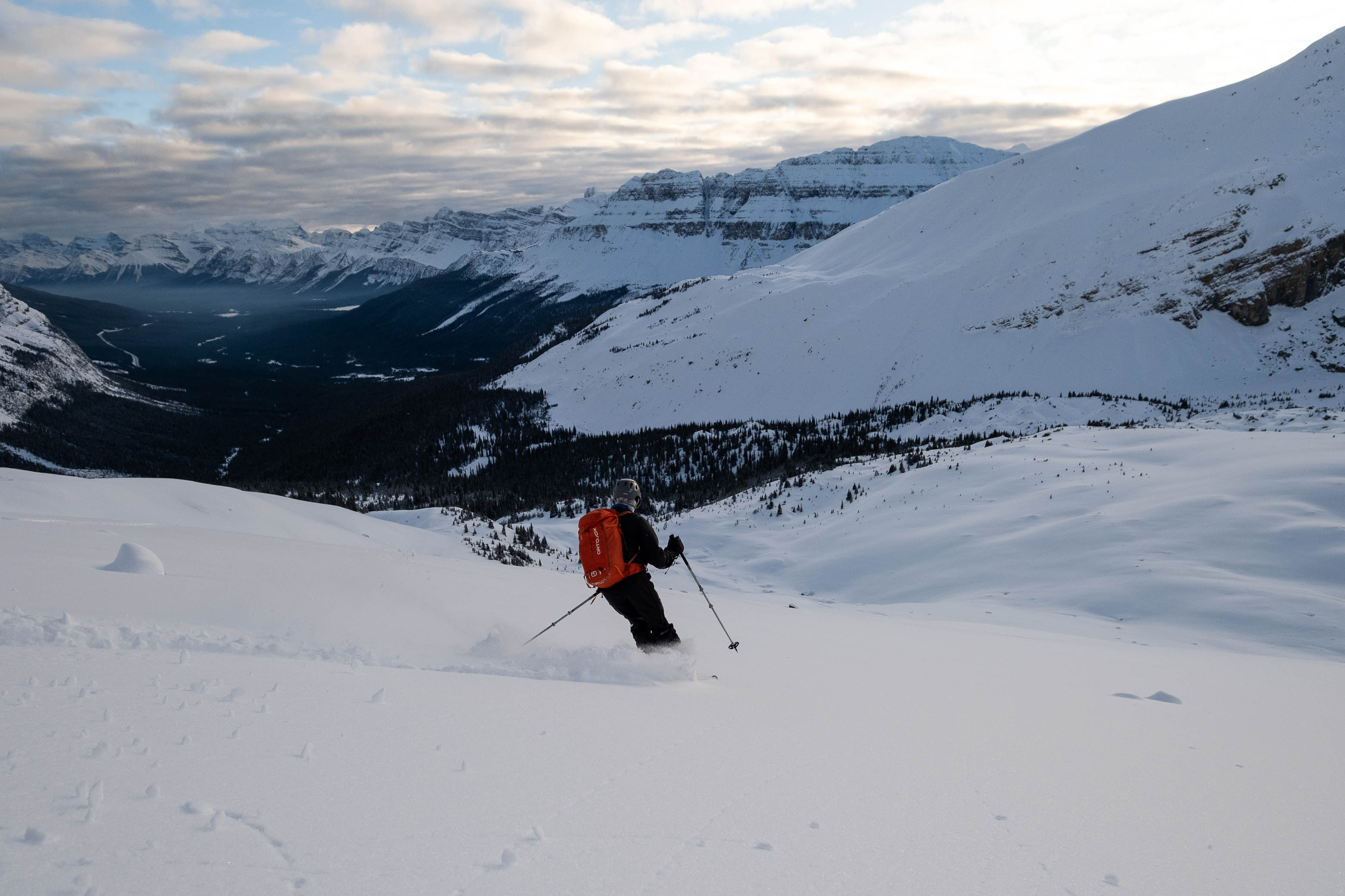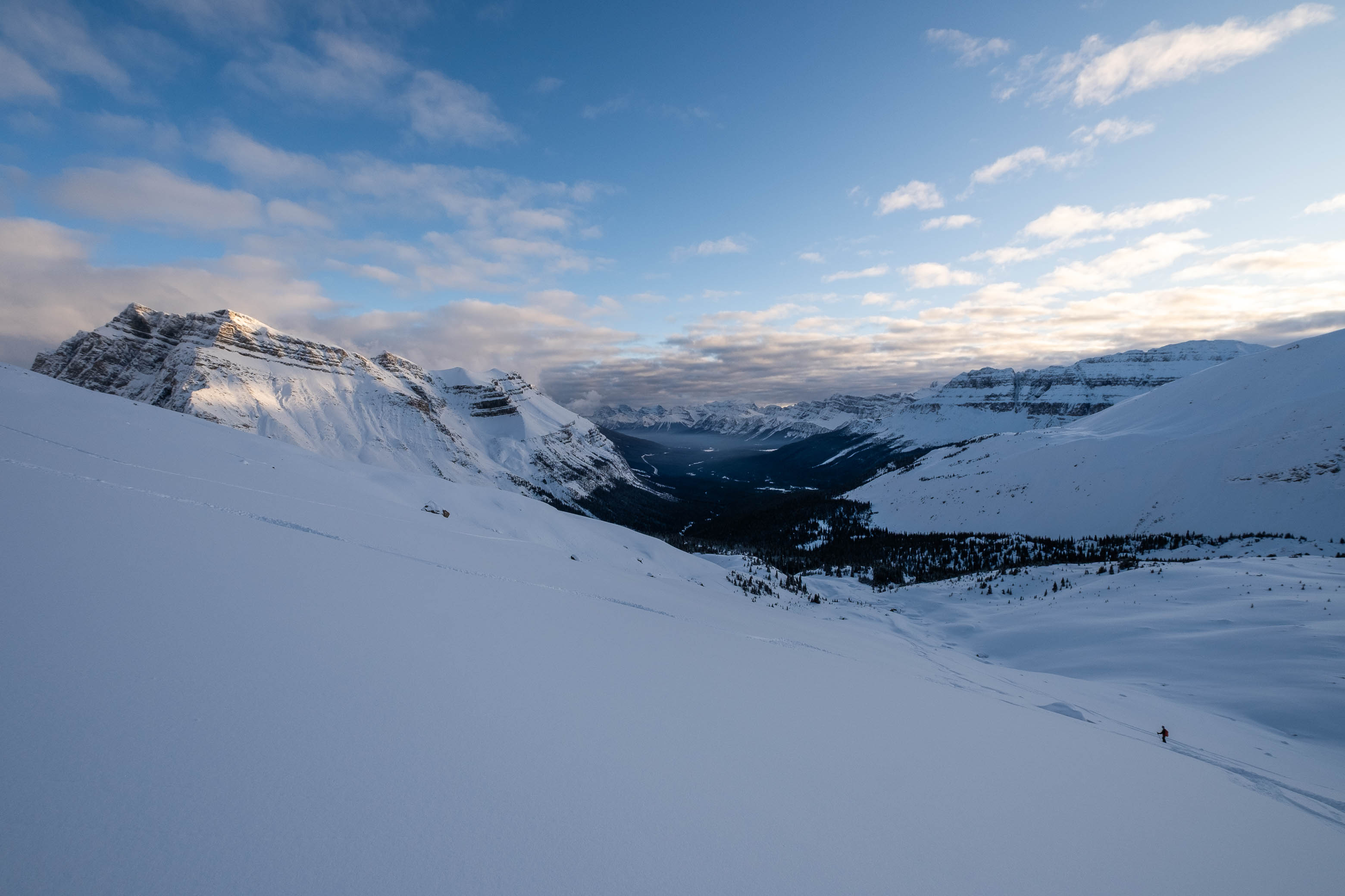 The descent back to our skis went quickly, and we were soon following the other group's short extension of our skin track, before transitioning for what was indeed an absolutely stellar run! 350 m of boot-top powder combined with the awe-inspiring winter scenery easily makes this one of my top 3 ski ascents/descents to date, and after cruising to the bottom of the ramp there was absolutely no question that we were heading back up for more!