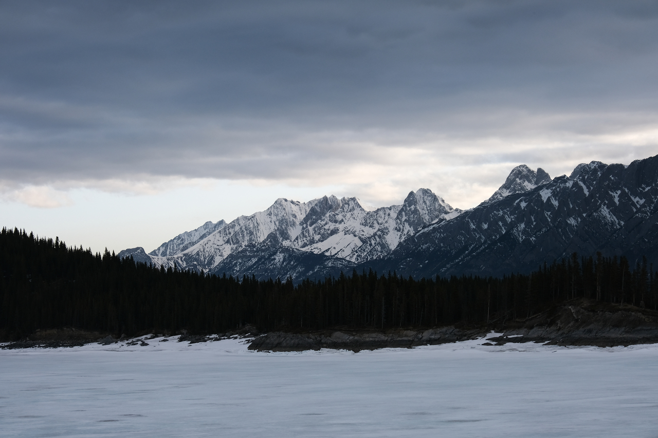 Rawson Lake Ridge, as seen from the parking lot after an uneventful trek down the Rawson Lake Trail. Boy, was it a weight off my shoulders to finally bag that one! It turns out that Rawson Lake Ridge makes for quite an enjoyable outing (rock or snow), and I didn't mind the return trip one bit. The ascent slopes are bloody steep, and could definitely slide in certain conditions, but use caution, and you'll be rewarded with some stellar summit views! We didn't want to drive back to Edmonton just yet (well...we actually never do), so what else can we do in the area...?