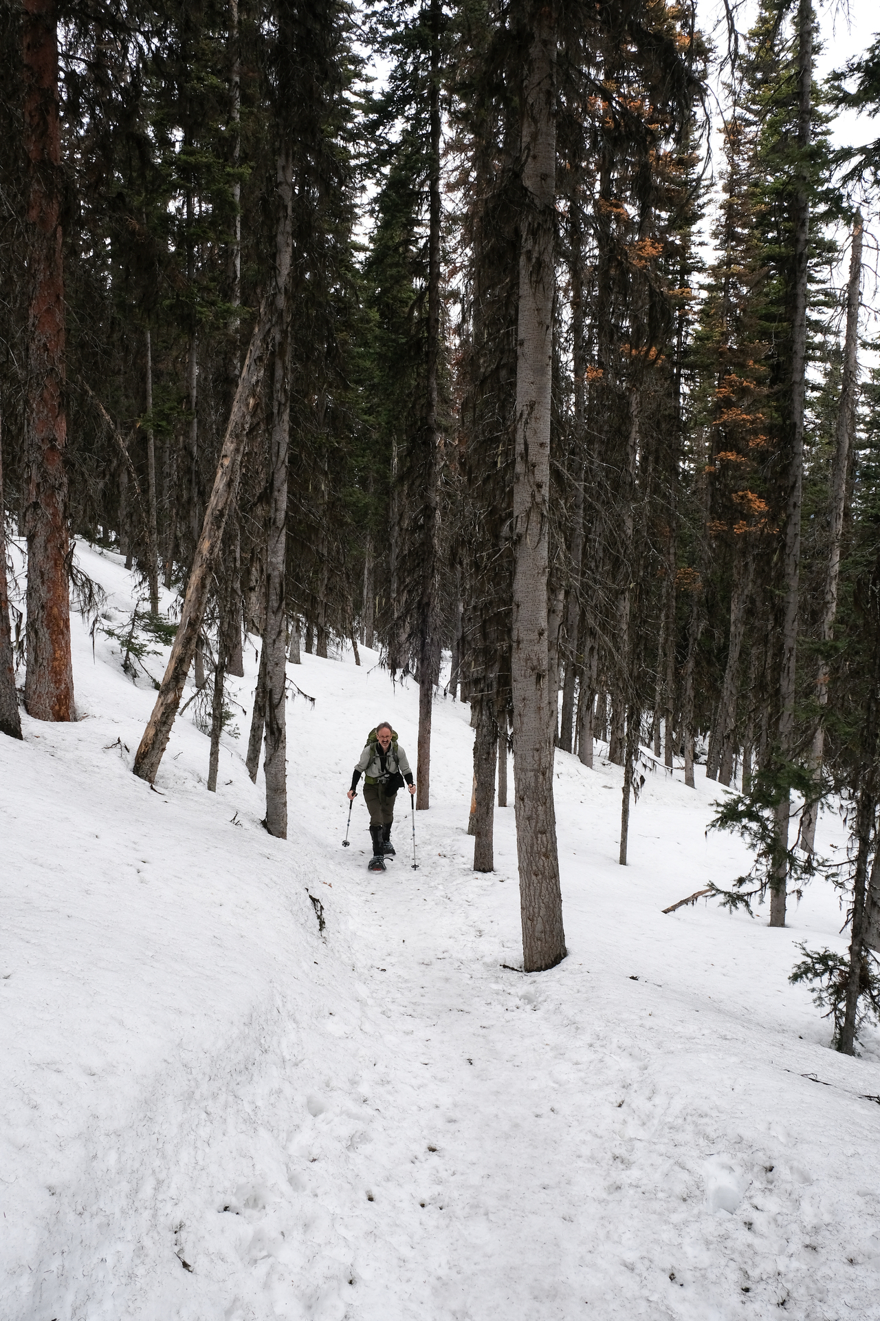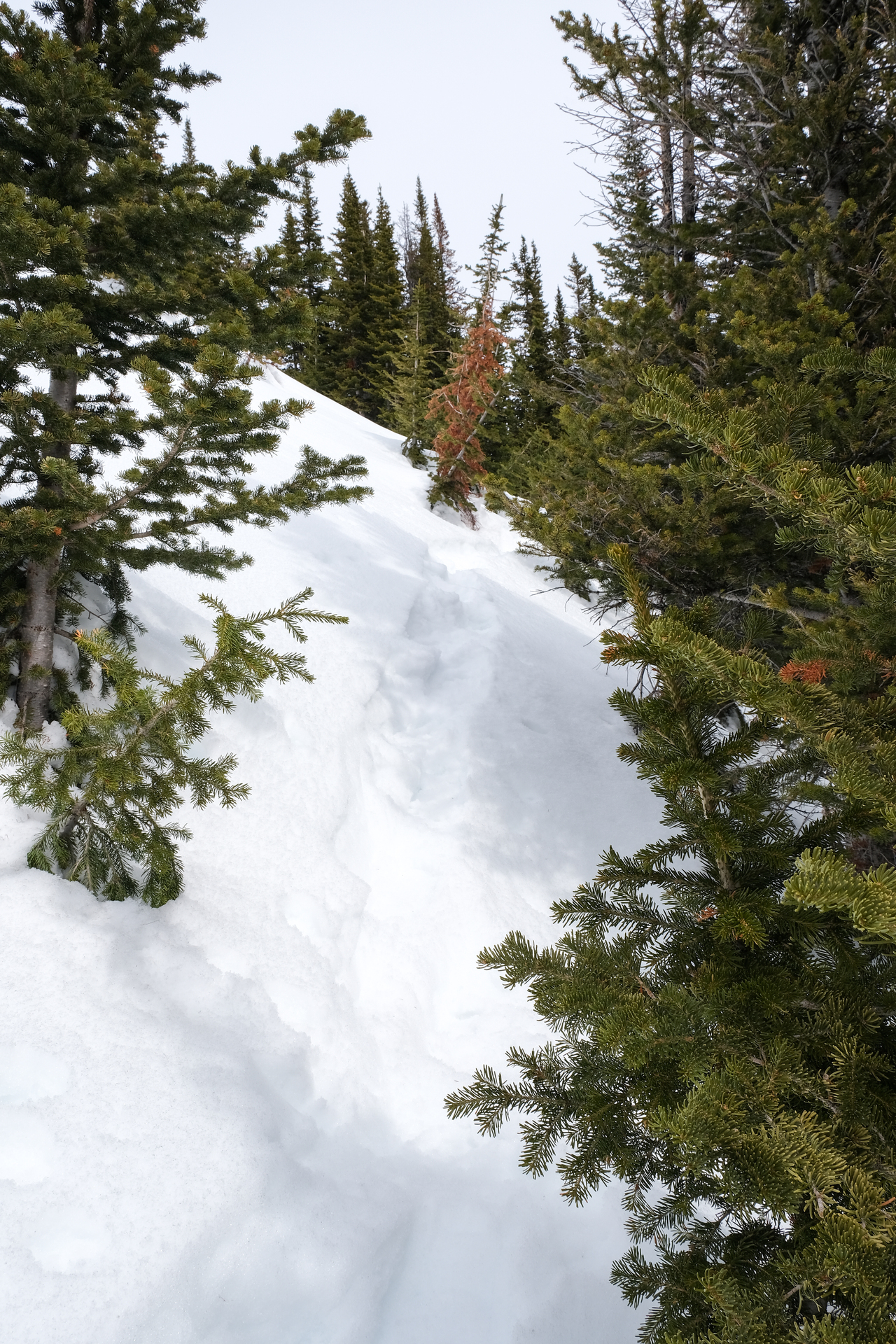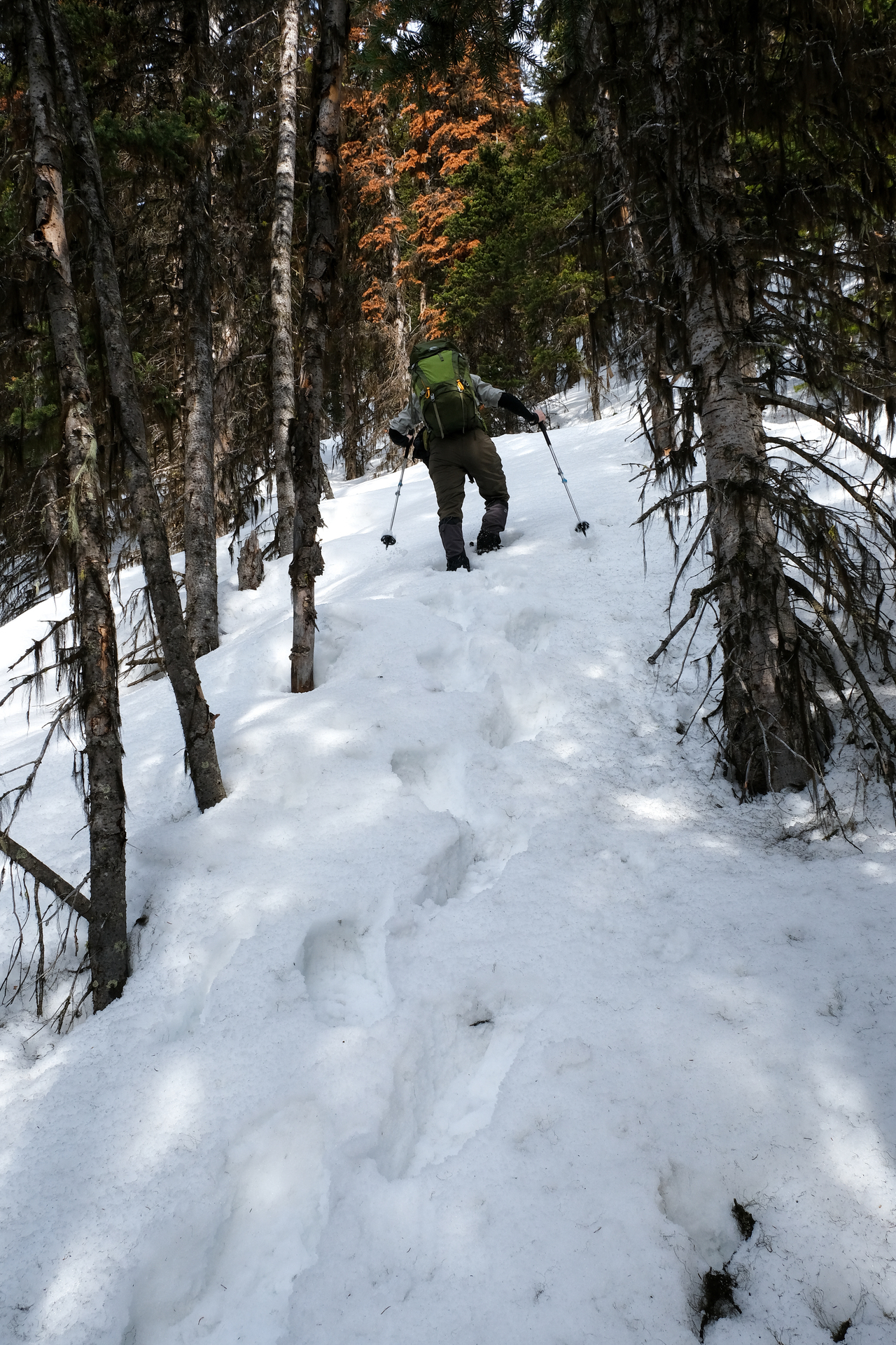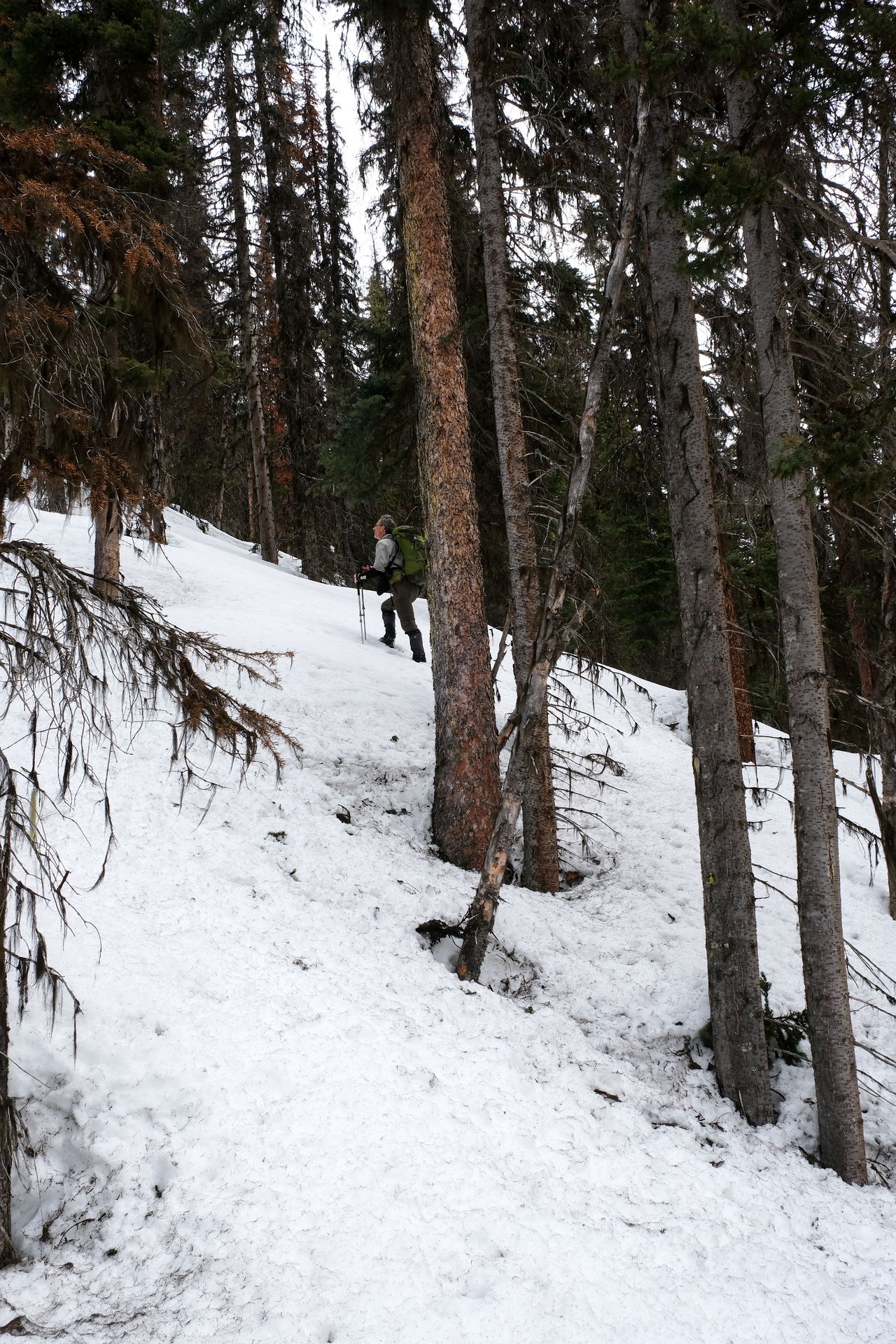 Did I mention that this route is STEEP?! Just prior to this picture, we had to cross over this slope. Luckily, a horizontal line of trees made this task a bit less risky!